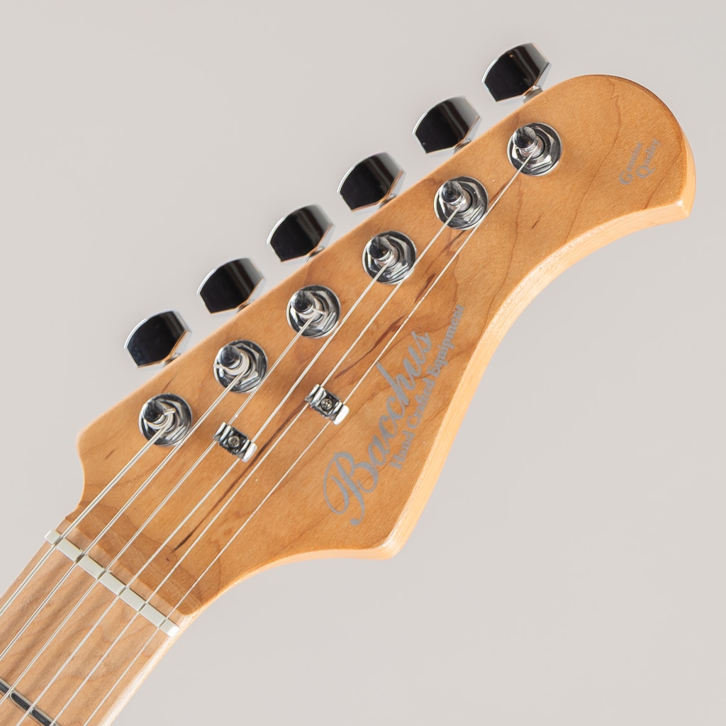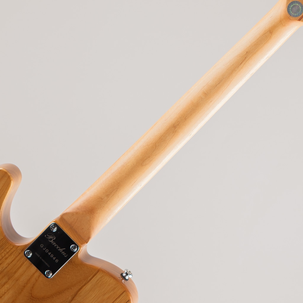 ネックにはBacchusの新機軸でもあるローステッドメイプルを採用。ローストする工程上でゆがみが生じてしまうような木材はその時点で淘汰されるため、ネックとして搭載されている個体は非常にゆがみやねじれに強く、比較的手に取りやすい価格帯ながら長い間ご愛用できる仕様となっております。