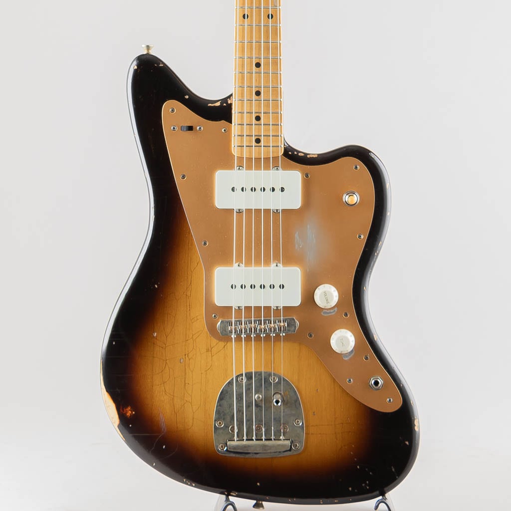 今回入荷しましたモデルは50sジャズマスターを基としたSurfmaster '57でございます。貫録のエイジド加工も流石ですが持った時に感じる超軽量ボディ、そしてその鳴りが驚きです。その出音は新品とは思えないほど枯れたクリアな響きを聞かせてくれ、それでいて芯の太さや抜群の立ち上がりの良さを感じさせてくれます。これまでの現行品ジャズマスターではまず聴く事の無い、非常にこなれた鳴りは圧巻です。本当のヴィンテージギターを再現するスペシャリスト達が生み出す至高の1本。是非ご検討くださいませ。