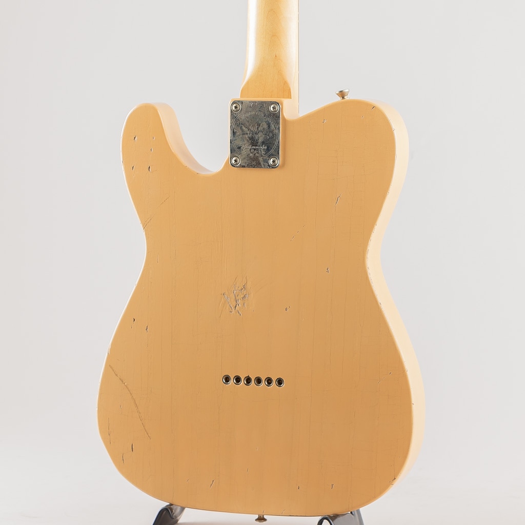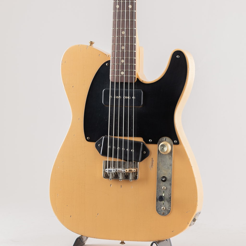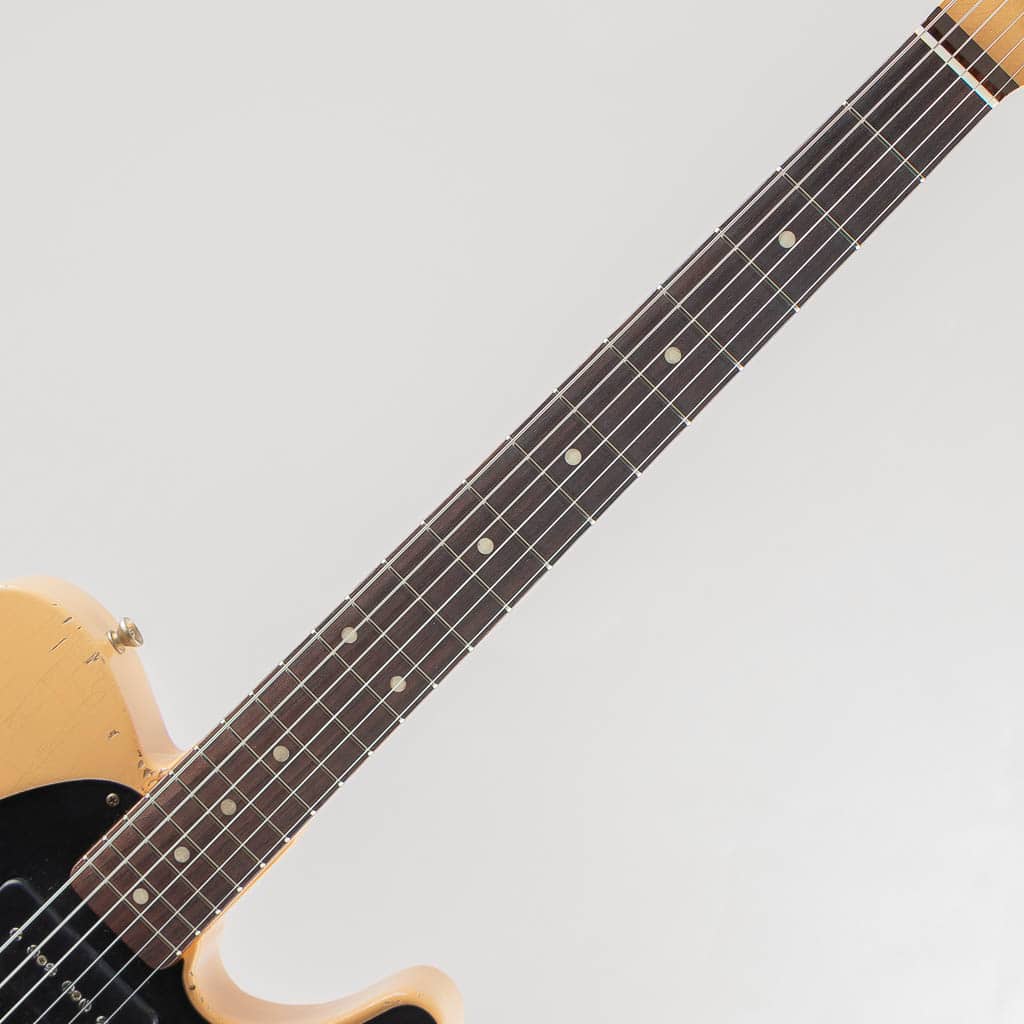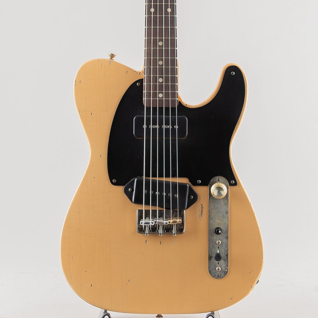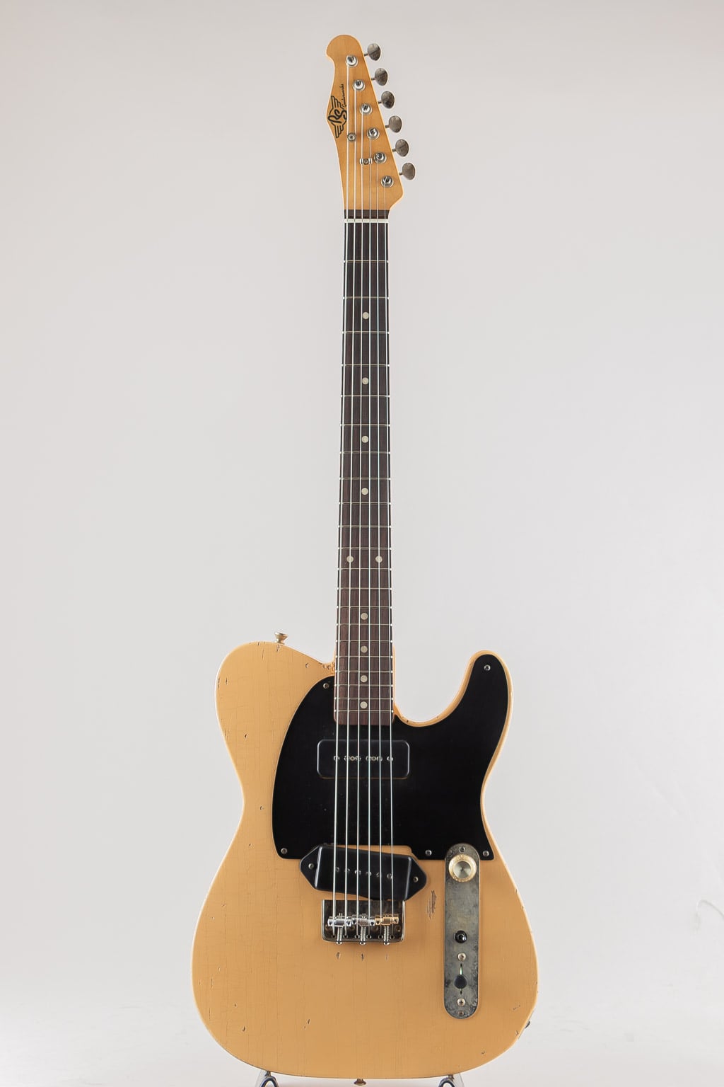 今回入荷しました1本は同社の真骨頂とも言える遊び心満載のモデルWorkhorseの2ピックアップ仕様となる"Workhorse Special"でございます。リアルヴィンテージを彷彿とさせるヘヴィエイジドボディにリバースヘッド、ややスラントしたP-90ピックアップを搭載した非常にインパクトのあるモデル。約2.4kgの超軽量ボディは取り回しが良く、鳴らせばカリっとしたアタックを持ちつつ乾いたクリスピーなトーンがクセになります。圧巻のエイジド加工も流石ですがやはりその鳴りが驚きです。出音は新品とは思えないほど枯れたクリアな響きを聞かせてくれます。1ボリュームとセレクターのシンプルなコントロールですがトーンはトグルSWにて固定のON/OFFコントロールが可能。まるで半止めワウの様な絶妙なサウンドを出力します。またブリッジサドルはスチール、アルミ、ブラスとそれぞれ異なる素材を使用する等細かな所までこだわりが感じられます。