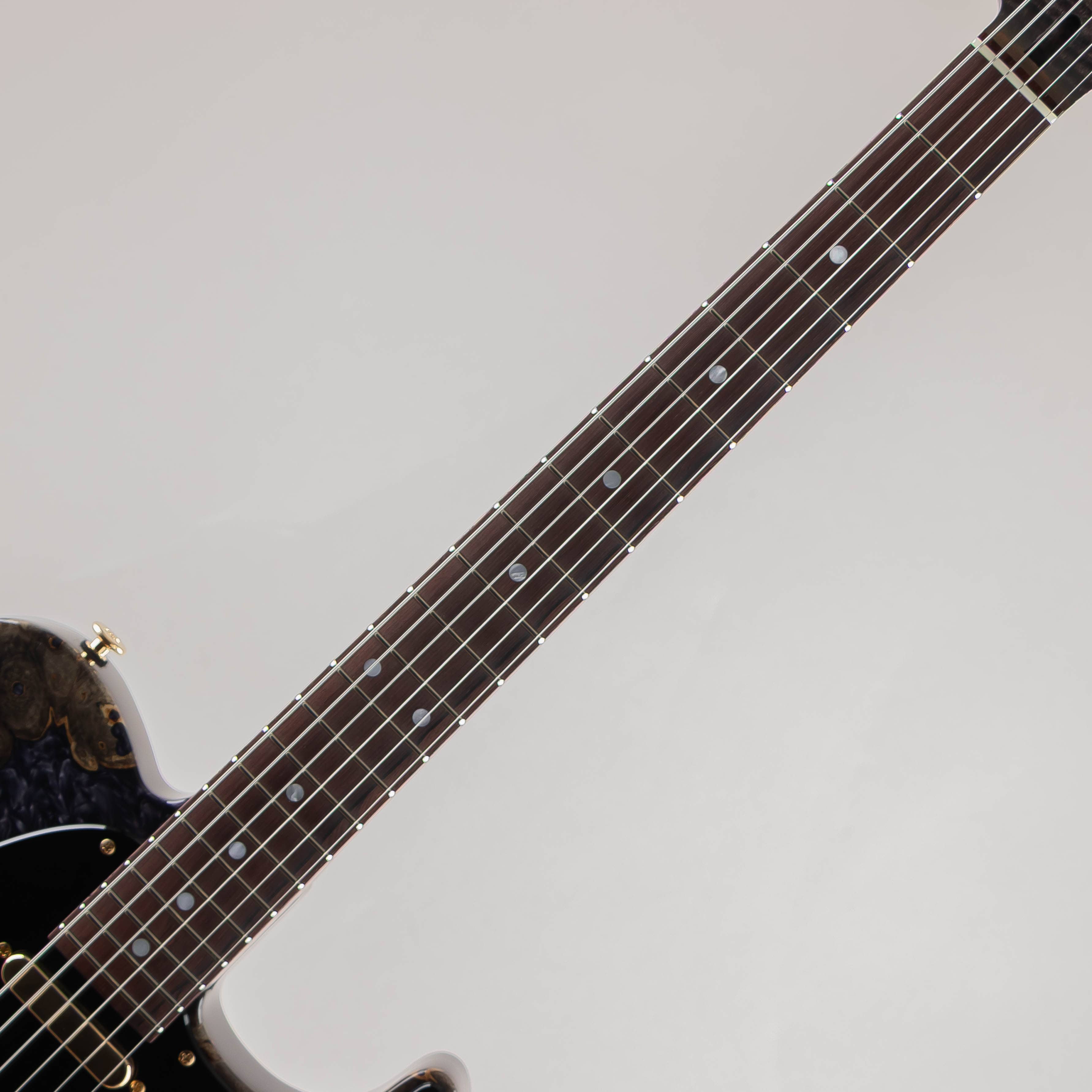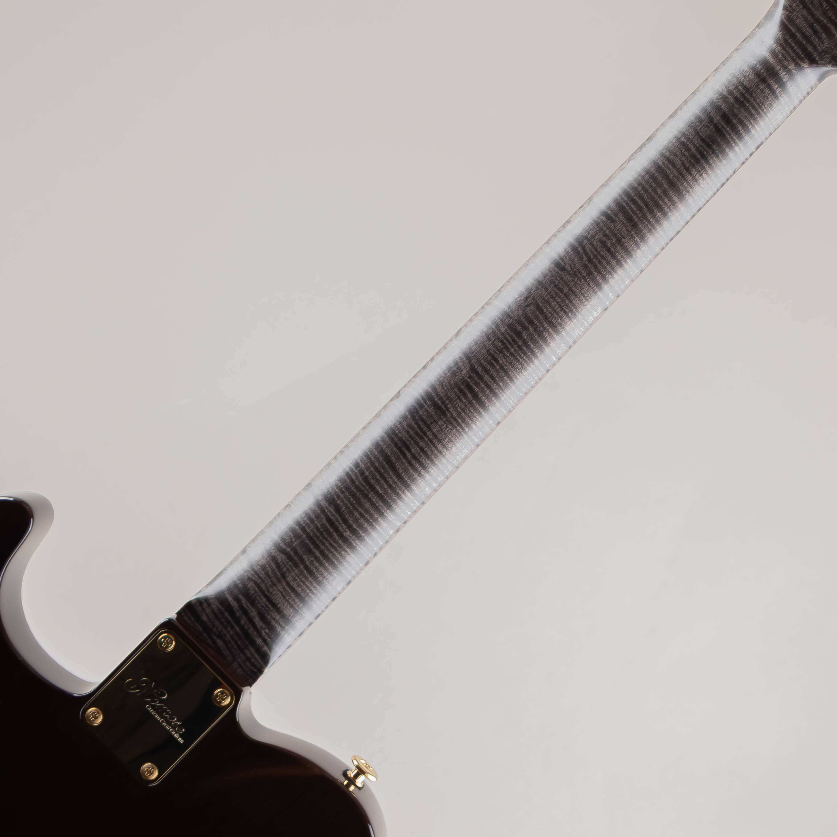 近年希少性が増しているマダガスカルローズウッドを指板に使用、ネックにはヘッドストックの先端まではっきりと杢目の出たグレードの高いフレイムメイプルとなっており、手触りも非常に滑らかに仕上げられ演奏性の高さに加えルックスも高級感溢れる仕上がりとなっております。