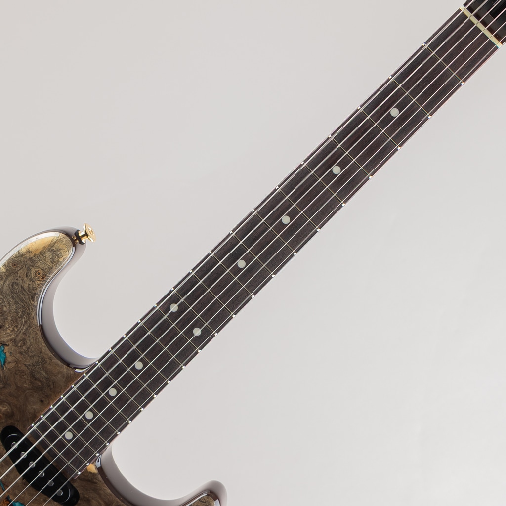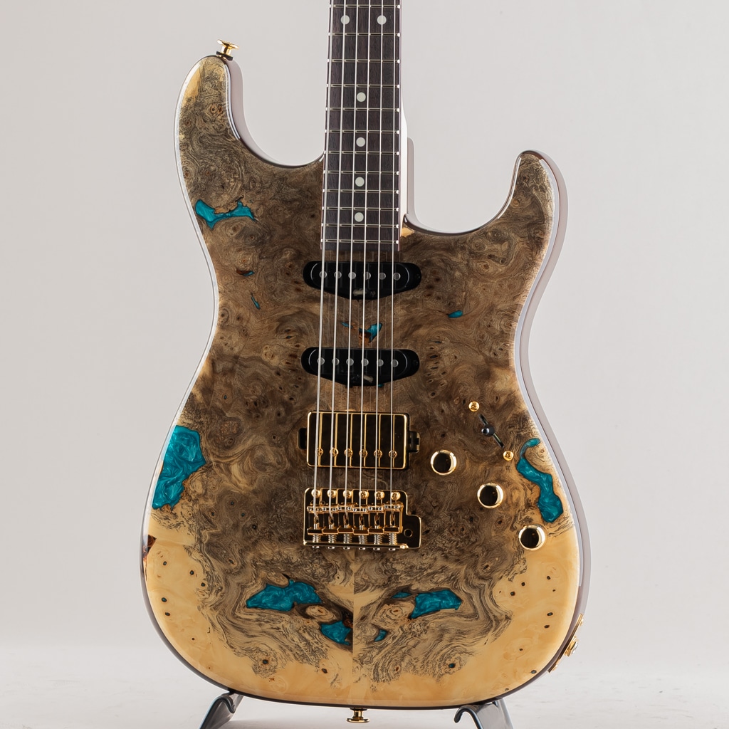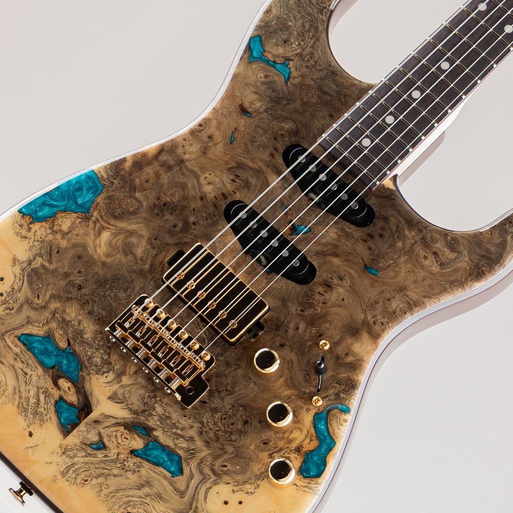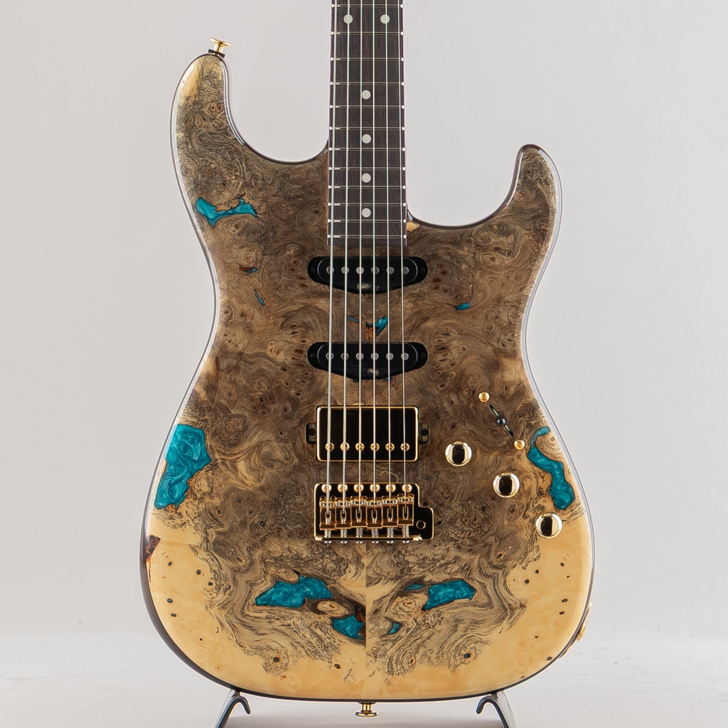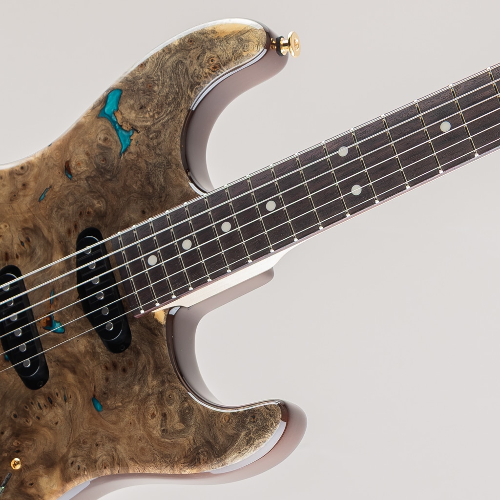 今回入荷しました1本は極上のバックアイバール&レジンを使用した弊店オーダーモデル。ピックアップにはmomoseオリジナルVS-1とBEANOを搭載したSSHレイアウトのダイレクトマウント仕様。様々な音楽ジャンルに対応する歯切れの良さとPAFを彷彿とさせる枯れたヴィンテージトーンを出力します。飛鳥工場秘蔵の貴重な木材を余すことなく使用した極上の1本。この機会に是非ご検討くださいませ。