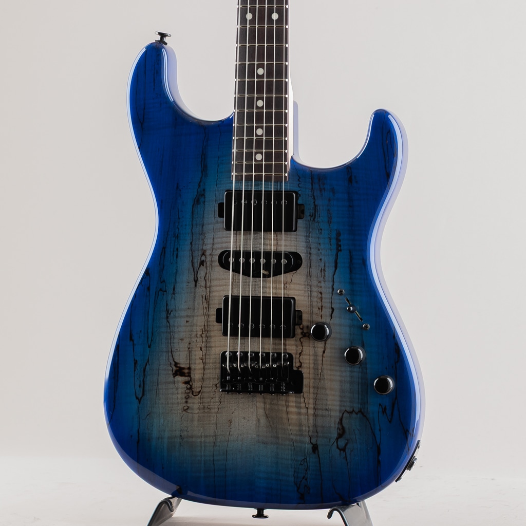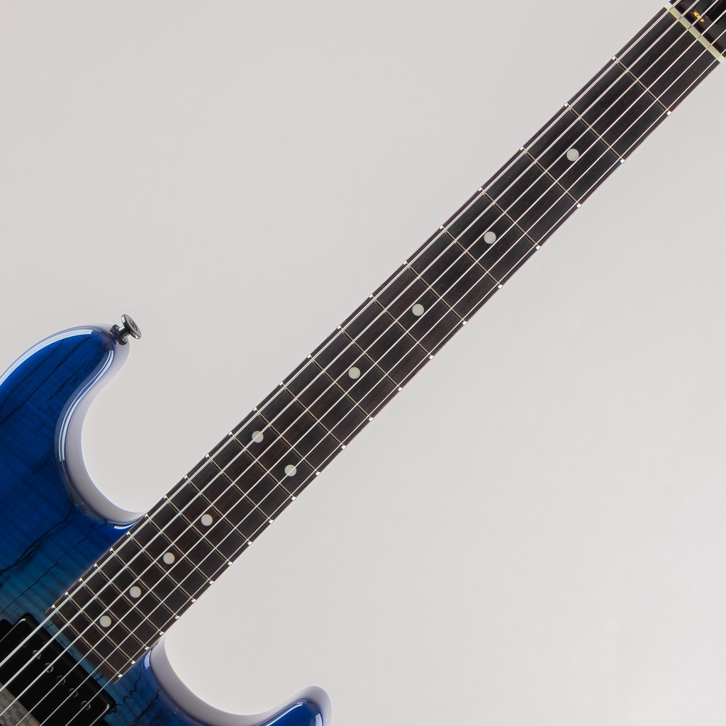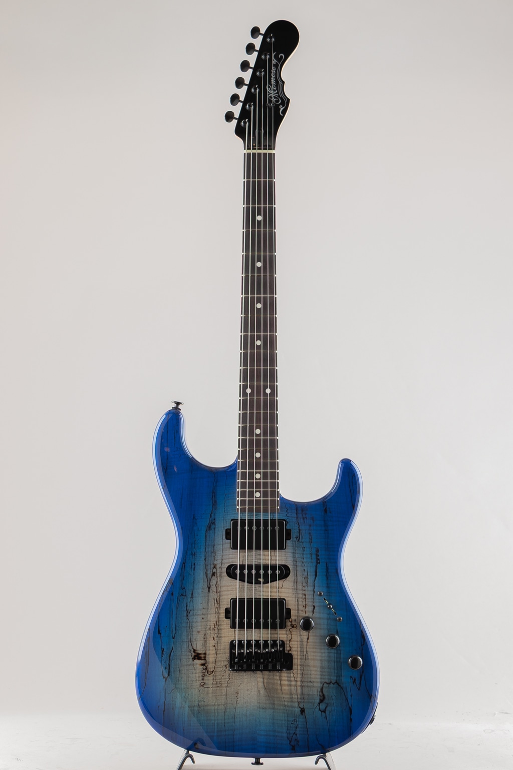 今回入荷しました1本はフレイム杢の美しいスポルテッドトチトップに鮮やかなブルーバーストフィニッシュを採用した弊店オーダーモデル。ピックアップにはmomoseオリジナルVS-1とBEANOを搭載したHSHレイアウトのダイレクトマウント仕様。様々な音楽ジャンルに対応する歯切れの良さとPAFを彷彿とさせる枯れたヴィンテージトーンを出力します。飛鳥工場秘蔵の貴重な木材を余すことなく使用した極上の1本。この機会に是非ご検討くださいませ。