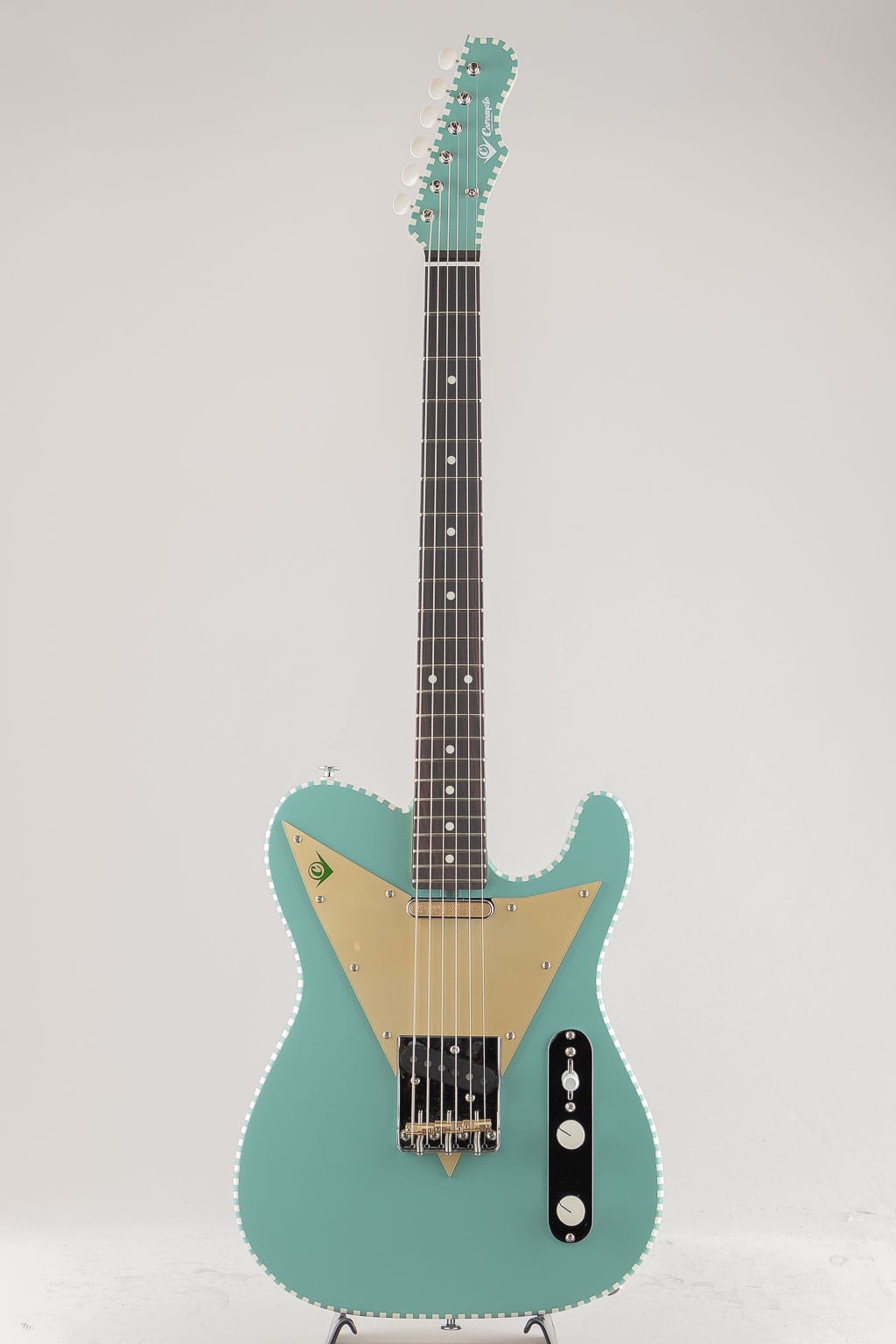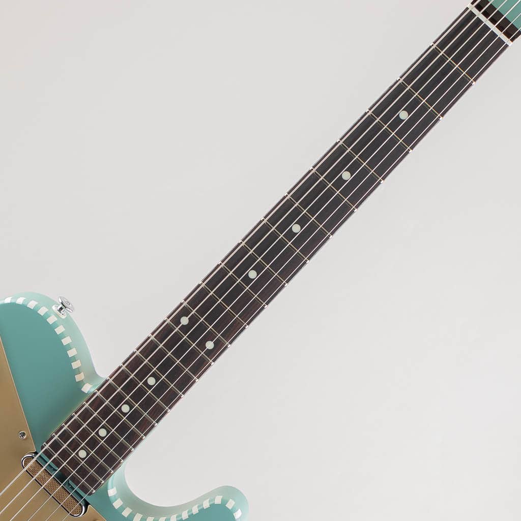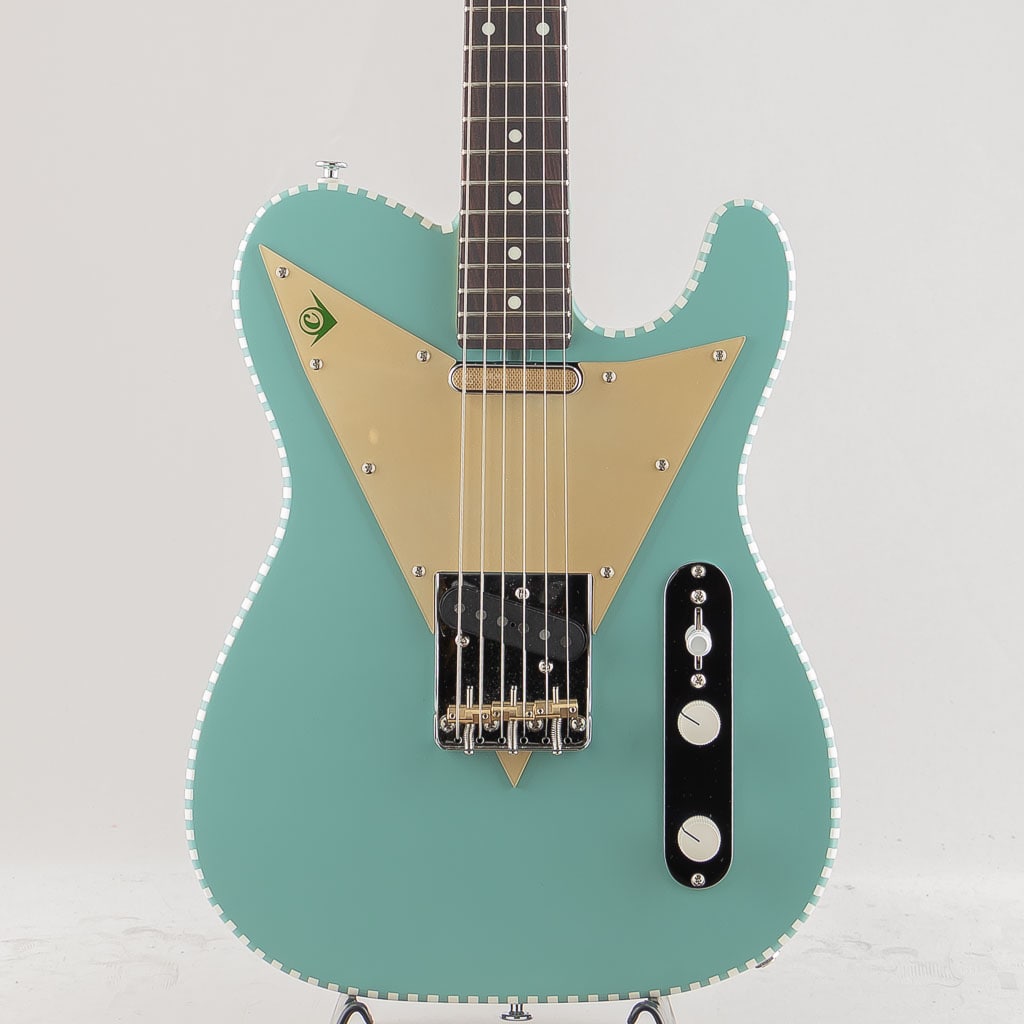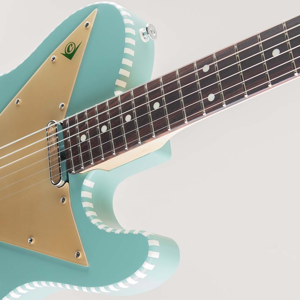 テレキャスターシェイプに独自のチェッカードステッチやピックガードが目を惹く個性的なデザイン。V3はピックアップにGold Foil Teleと国産Alnico Vピックアップを搭載することでよりリーズナブルな価格を実現。マホガニーボディと相まって太くマイルドなミッドレンジを生み出しております。また塗装にはつや消しのサテンアンティークフィニッシュを採用。使い込むほどに味となる外観と、木材本体の豊かな鳴りが活かされた唯一無二の魅力満載のモデルです。国産ならではの完成度と独自性が見事にマッチした新鋭ブランド。是非その手でご体感くださいませ。