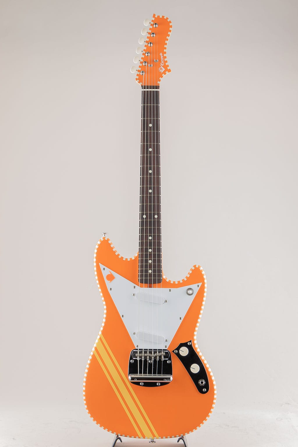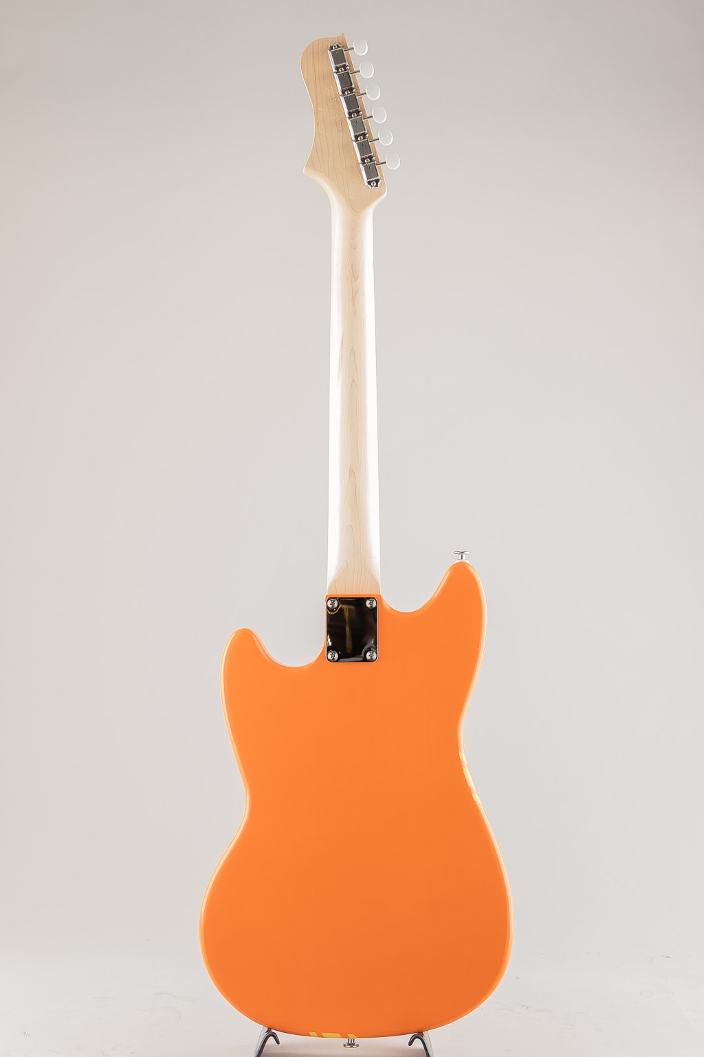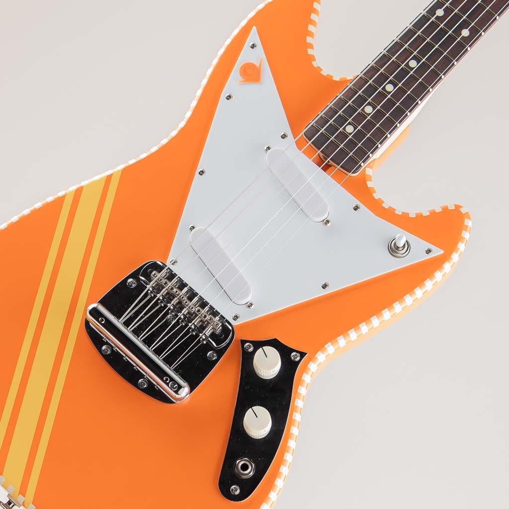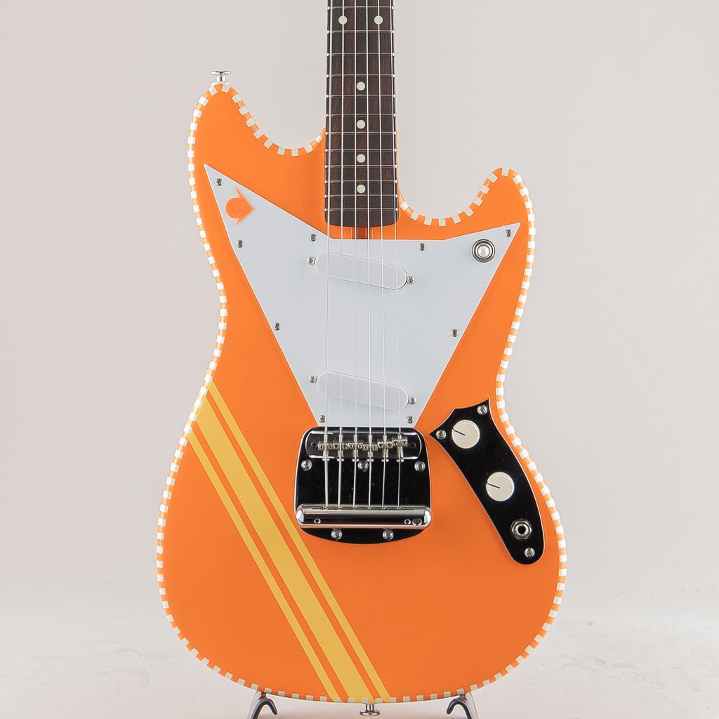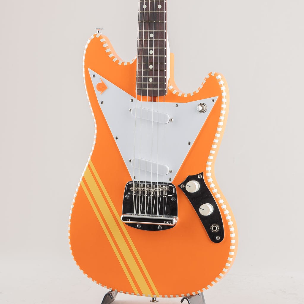 同社の他モデル同様に独自のピックガードやチェッカードステッチを採用した目を惹く個性的なデザイン。ピックアップは本モデルに合わせて開発されたオリジナルのAlnicoVシングルコイルピックアップを搭載。オリジナルムスタングよりも出力が高く、ファットな中音域が心地よいバランスを生み出しております。塗装はニトロセルロースラッカーを使用したアンティーク仕上げ。使い込むほどに味となる外観と、木材本体の豊かな鳴りが活かされた唯一無二の魅力満載のモデルです。国産ならではの完成度と独自性が見事にマッチした新鋭ブランド。是非その手でご体感くださいませ。