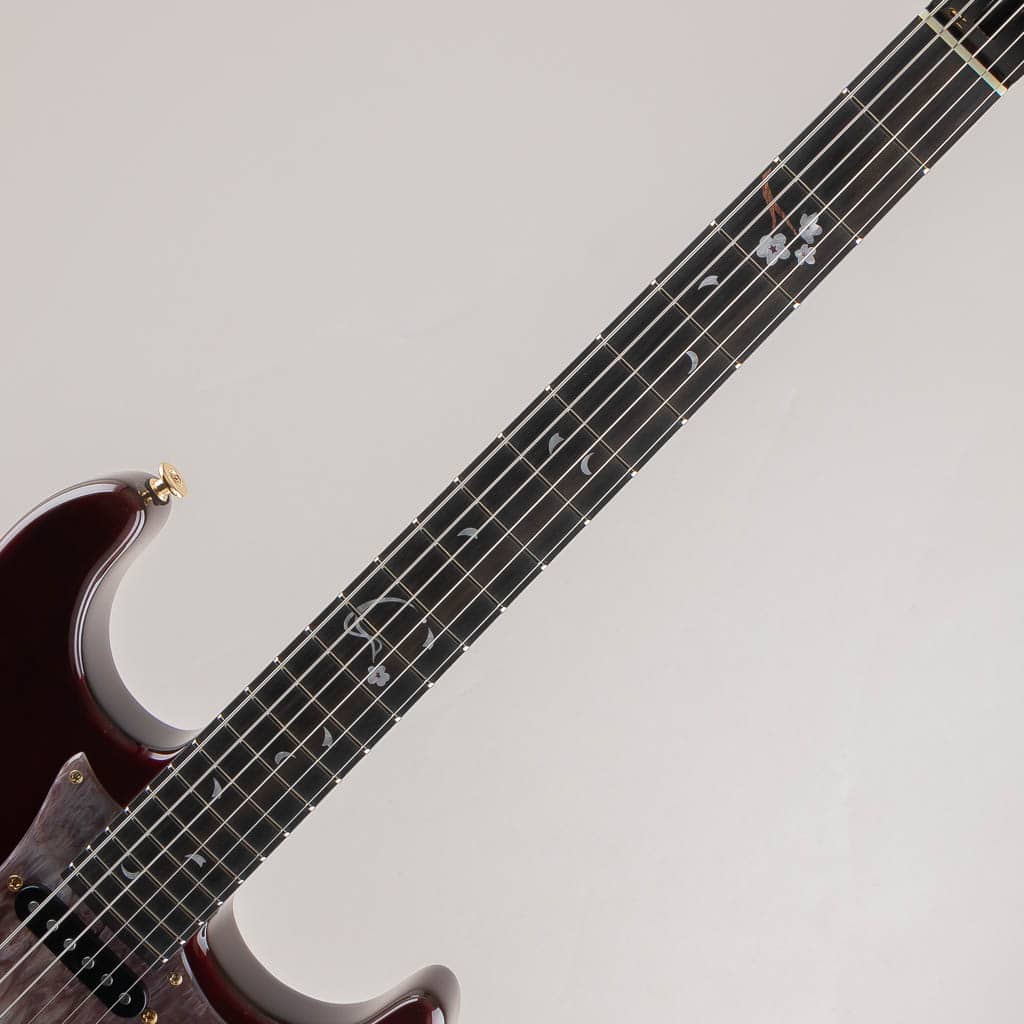 高級感のある色味のエボニー指板に舞い散るサクラをイメージしたインレイが施され、サクラ材ならではの赤みと杢目をいかしたグラデーション、ヘッドロゴにも散りばめられた桜の花びらなど特別感溢れる仕上がりとなっております。