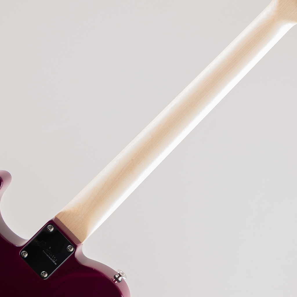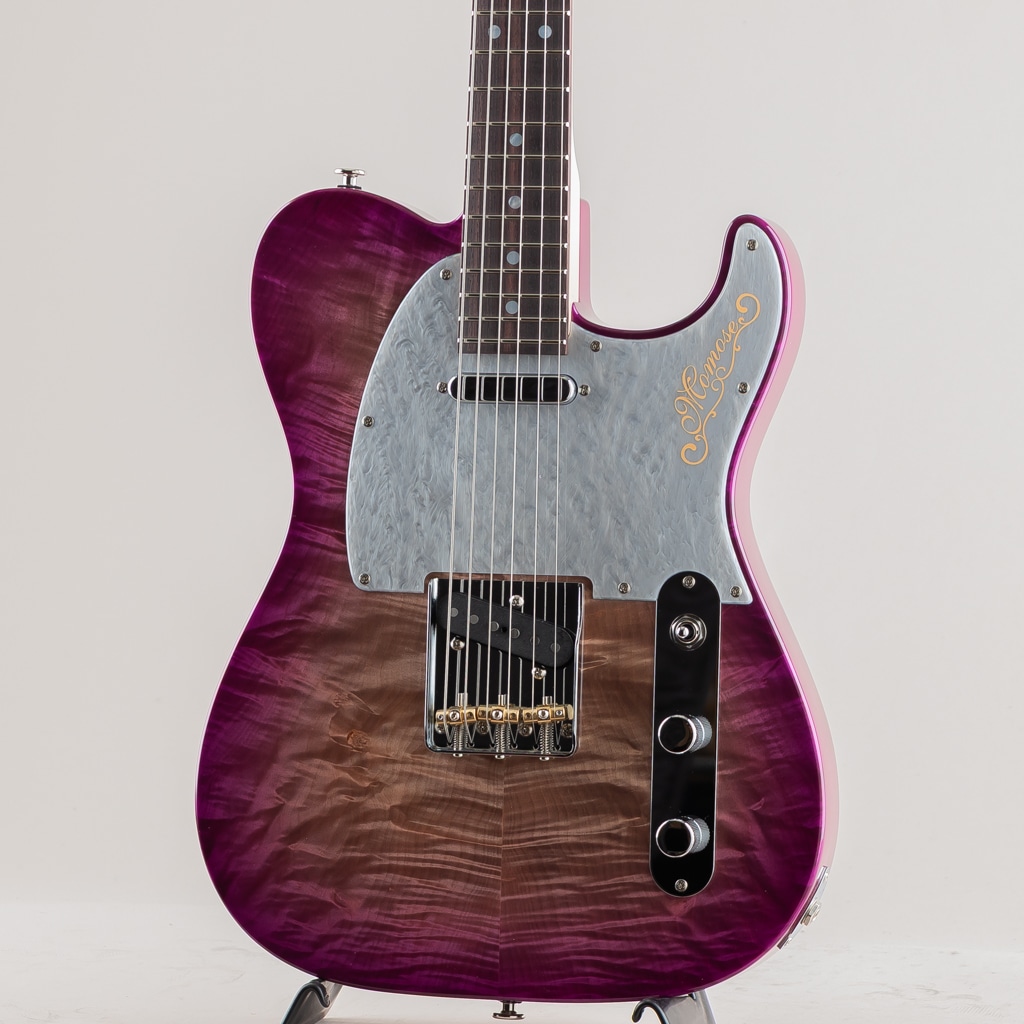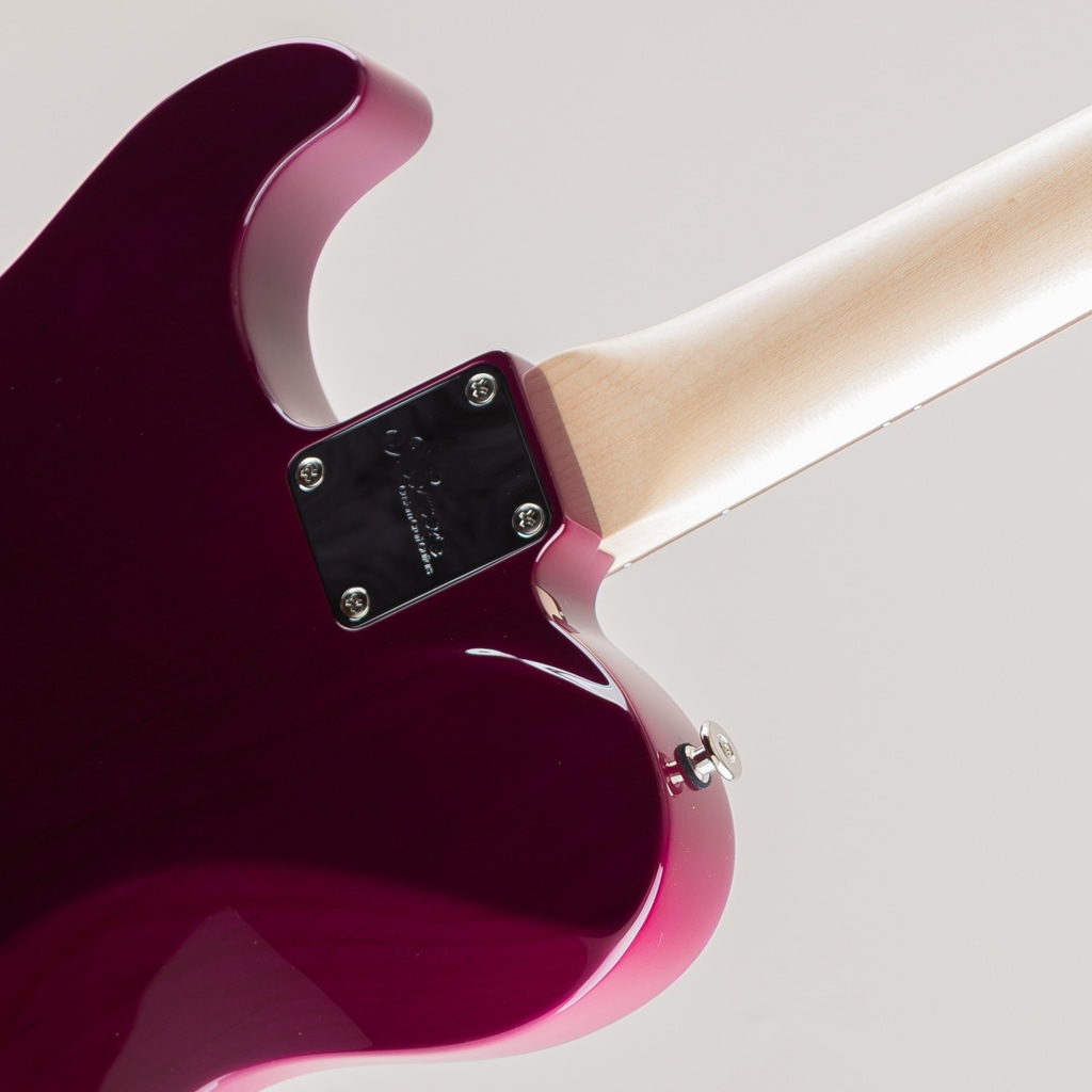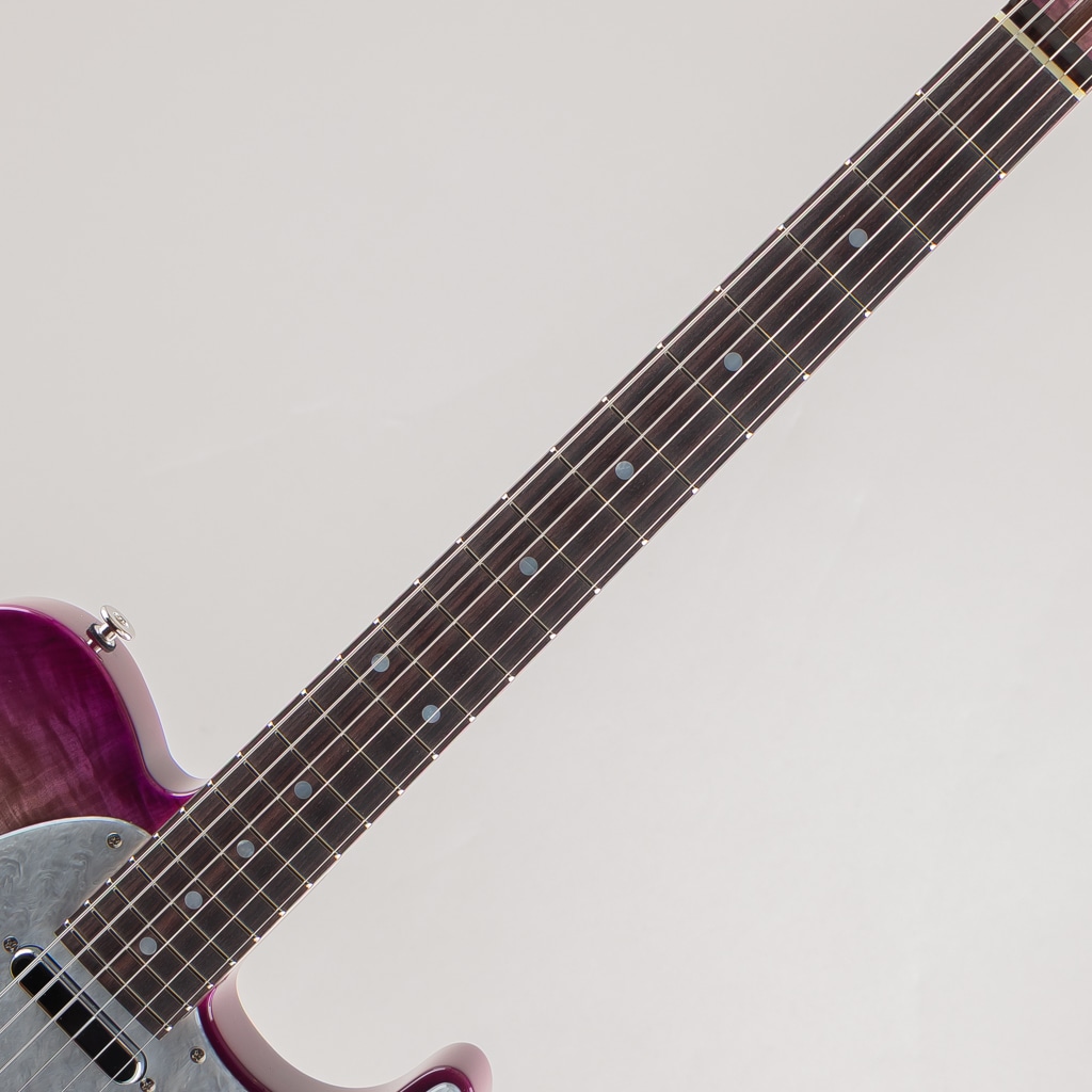 栃の杢目を活かす木地着色と色合いを乗せる中間着色を絶妙に使い分け仕上げたPurple-Burstが美しい栃の杢目とシルバーマーブルのピックガードの組み合わせにより一見派手目な印象ですが、妖艶でアダルトなルックスに仕上がった当店オーダーの一点ものとなっております。