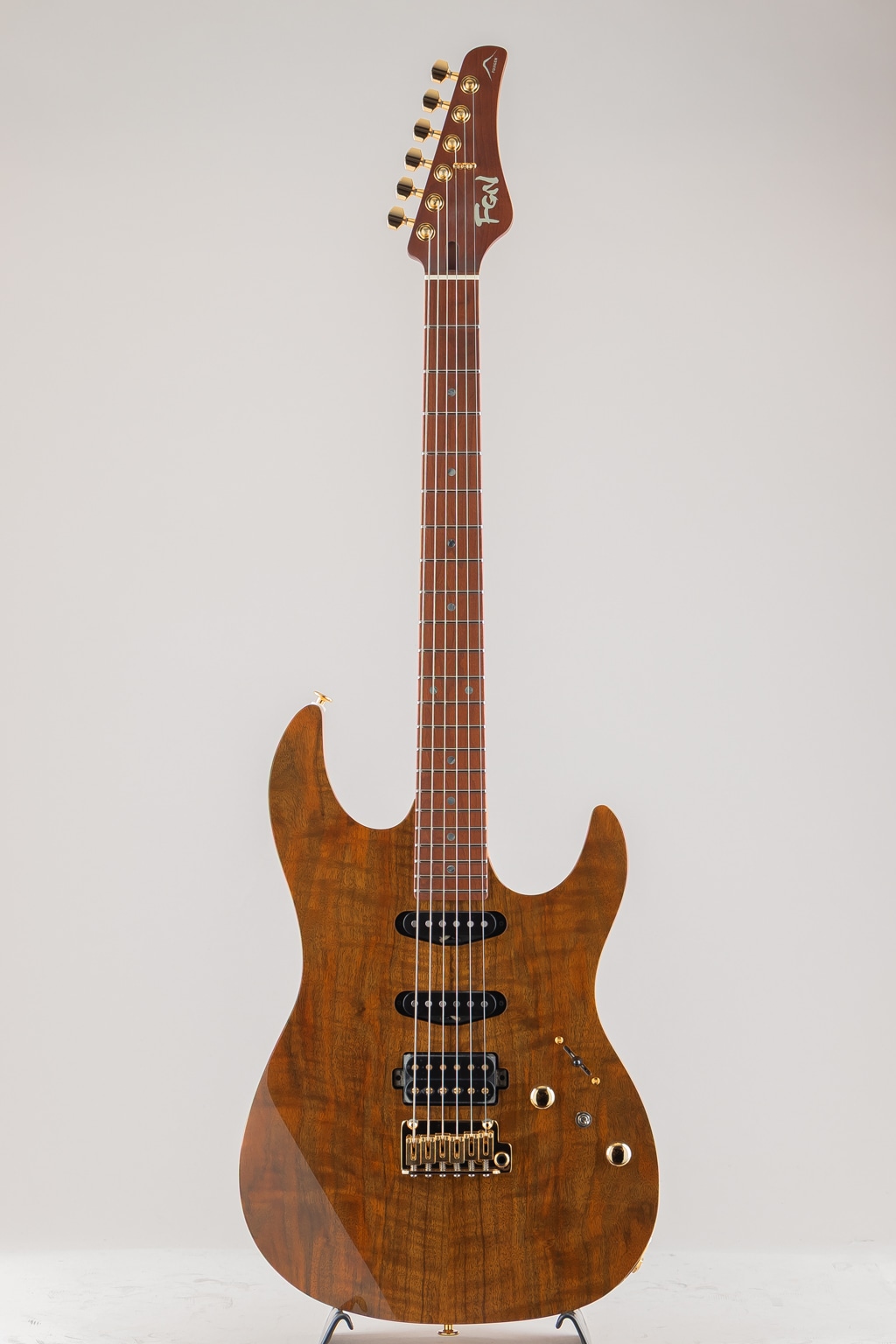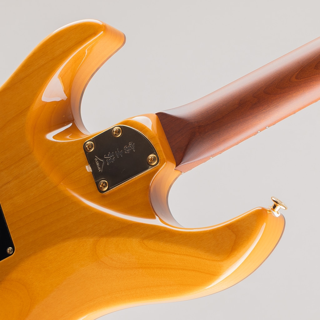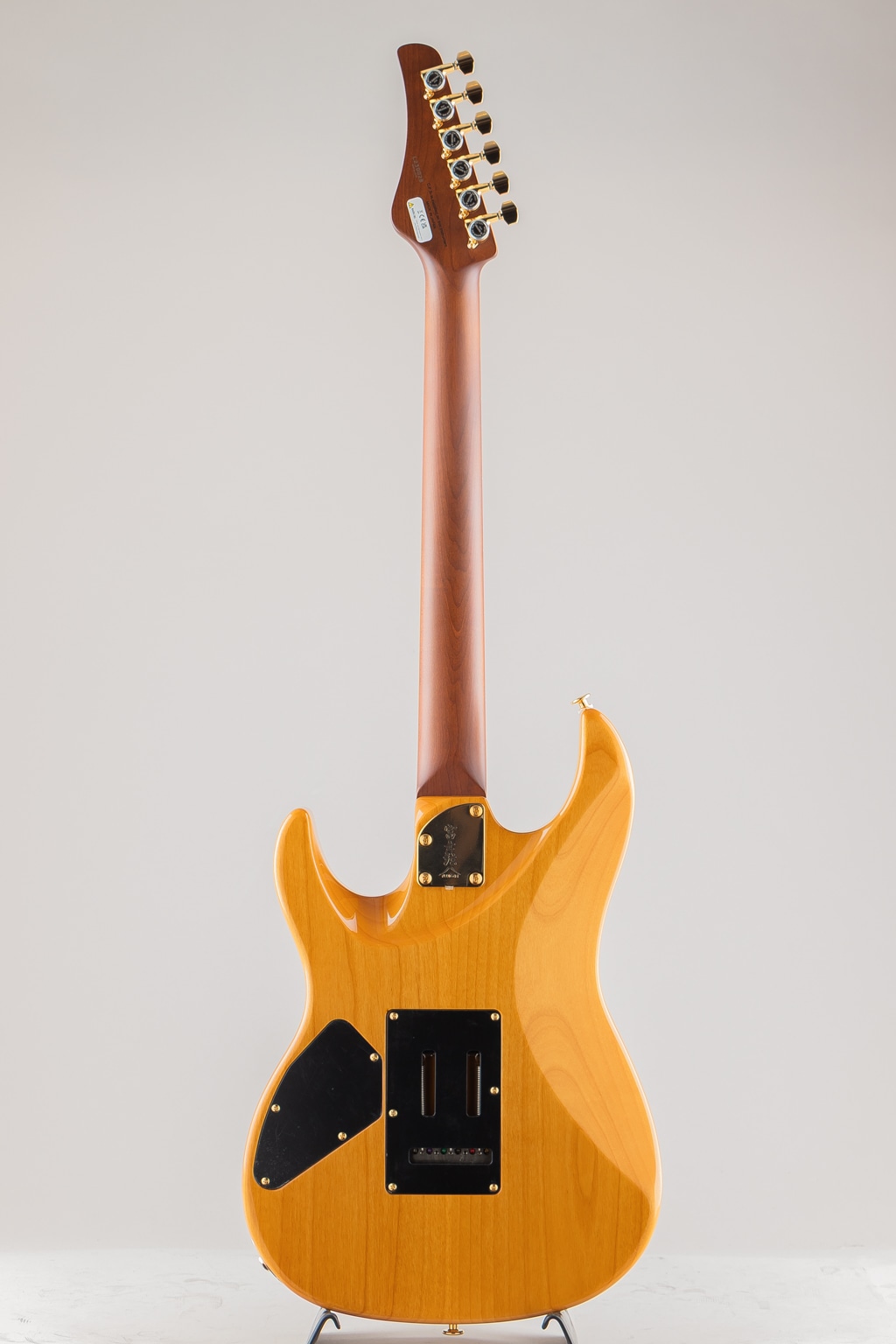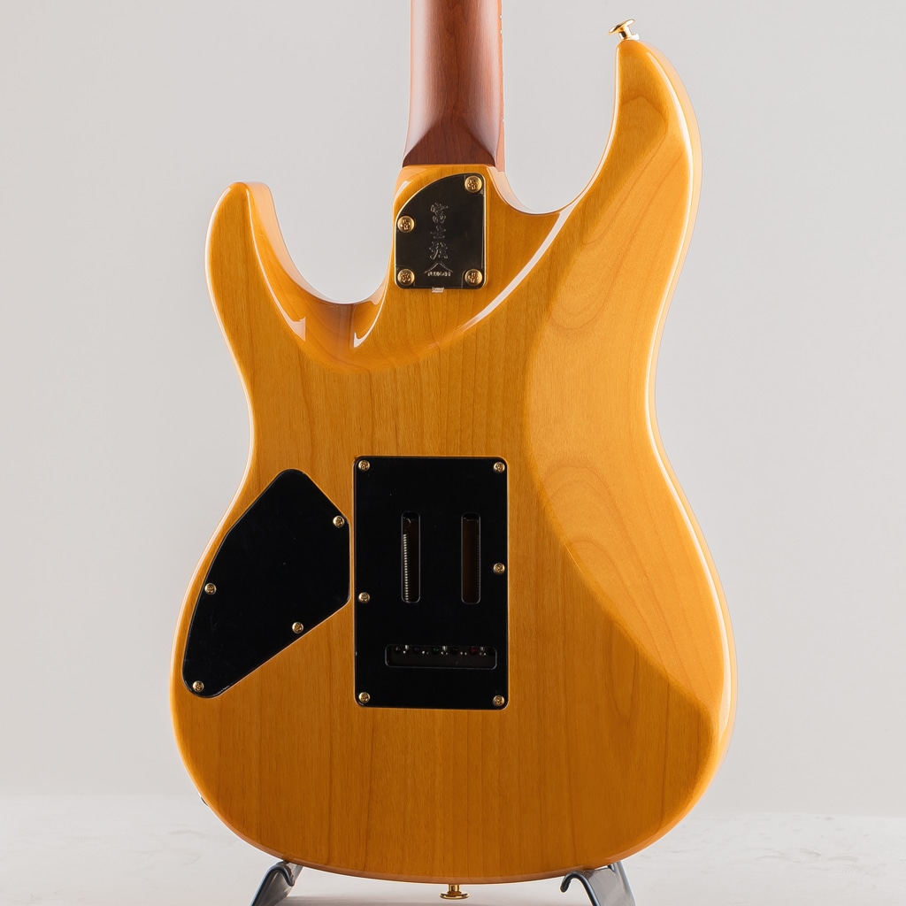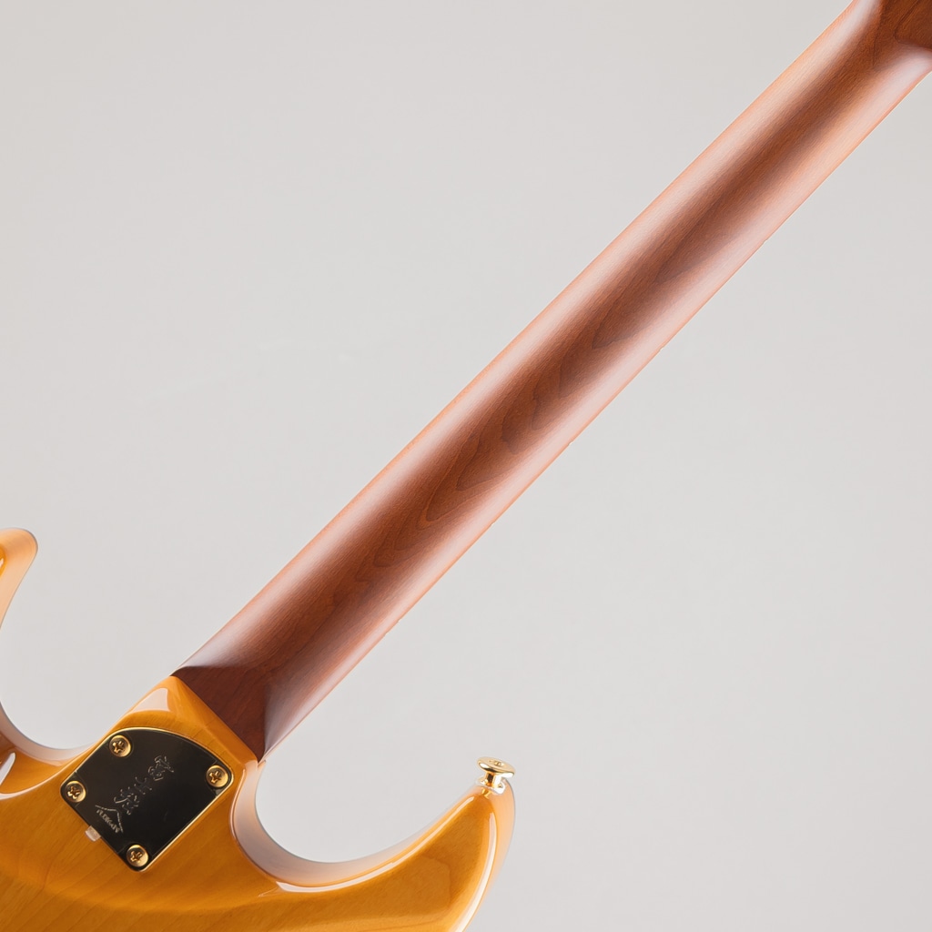 ピックアップはFGNオリジナルをSSHマウント。ブライトでキレのあるシングルコイルに加え、ホットなリアハムバッカーのみに作動するキルスイッチを搭載したトリッキーなコントロールが可能です。その他にも体にフィットしやすい形状のEXPERT OSオリジナルのコンター加工・エルボーカット、アーミング時の狂いを軽減するマグナムロックチューナーといった拘りが随所にみられます。