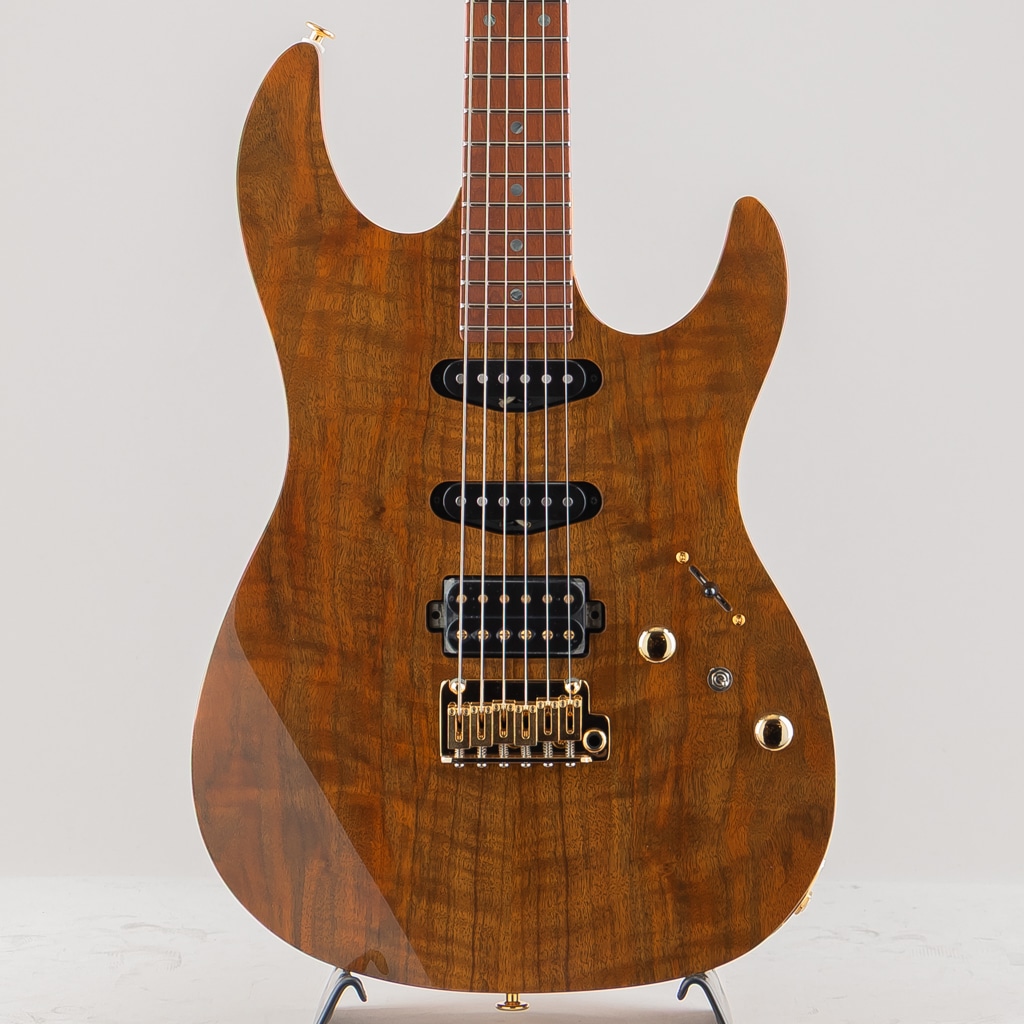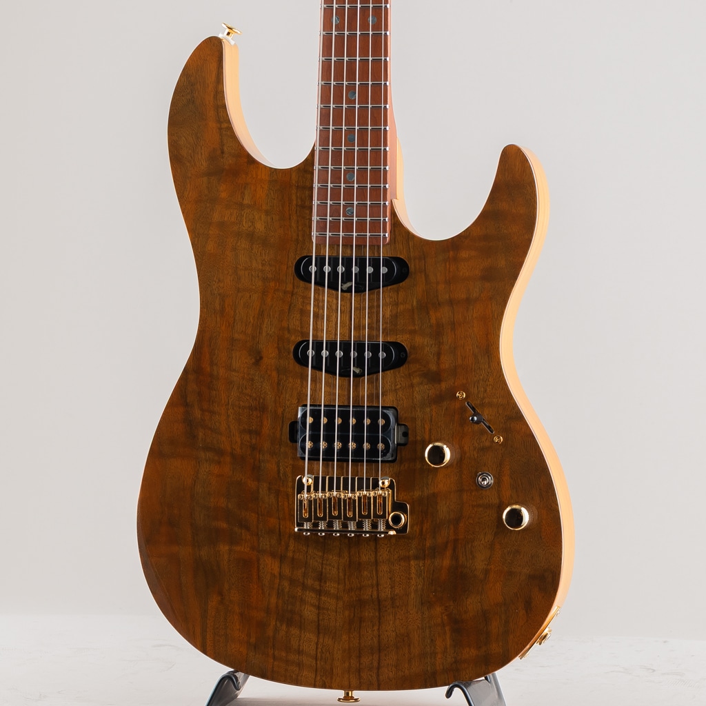EOS2-DU-EW2-RMはトップに希少なエキゾチックウッドのクラロウォルナットを使用したアルダーボディ。ネックにはローステッドメイプルを採用。演奏性を考慮したネックはコンパウンドラジアス指板やサークルフレッティングシステムによりハイポジションまでの操作性と抜けの良いピッチにも優れたサウンドを生み出します。更にフレットにはステンレスジャンボフレットを標準搭載しております。