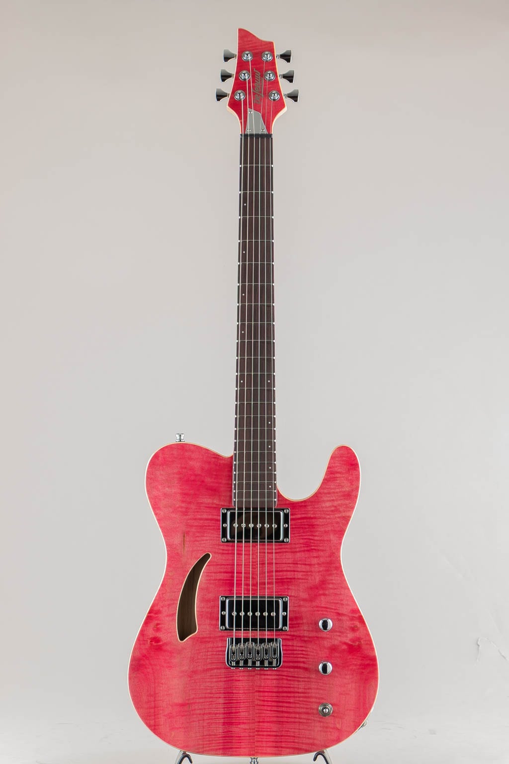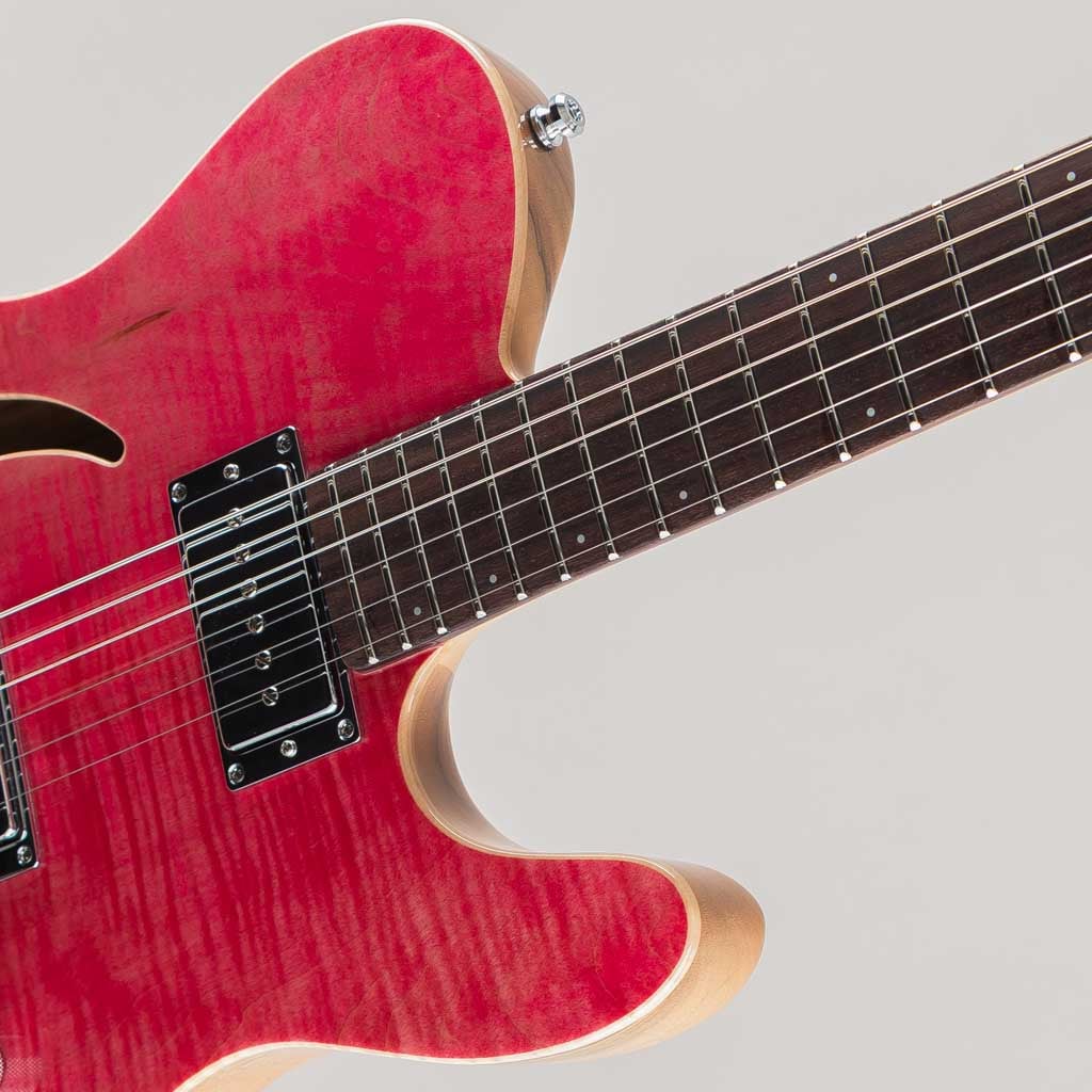 今回入荷しました1本はTLライクなボディシェイプにセミホロウ構造を採用したTC AIRでございます。鮮やかなプレミアムグレードのフレイムメイプルトップのウォルナットボディ。ネックはメイプル/ウォルナットの7ピース&スルーネック構造。NCルーターを一切使用せずハンドメイドで製作されており、ネックヒールやカービングのいたる部分にその技術が見受けられます。ピックアップにはイタリアのハンドワウンドブランドDreamsongs社のオリジナルP-90を搭載。
