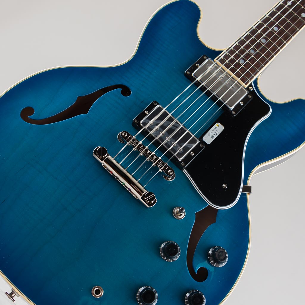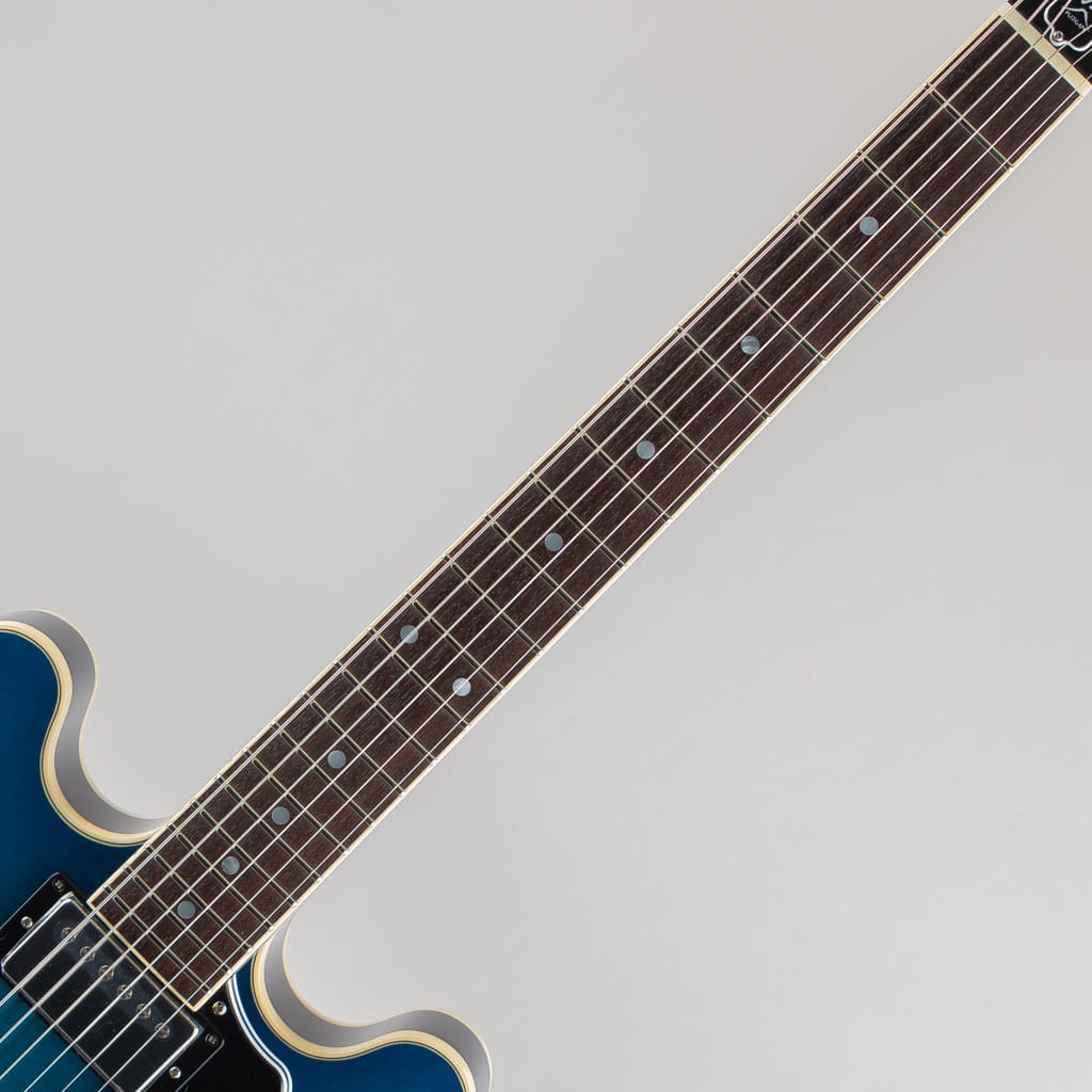 今回入荷しましたモデルは同社のセミアコースティックギター”MSA-HP”でございます。ES-335など一般的なセミアコモデルより一回り小さな15インチボディを採用。日本人にあったサイズ感が定評でプレイアビティにも優れたモデルです。またボディ材のマホガニーはくり抜き加工することでセンターブロックとリムが一体型となった"スクープド・リム&インナーブロック"となっており、ヘッドからボディエンドまで弦振動を余すところなく伝え豊かな鳴りを実現します。