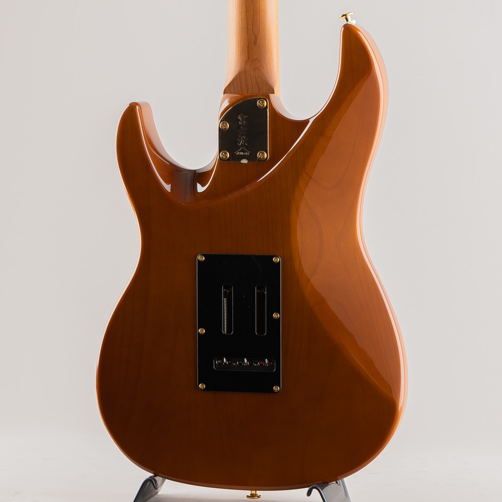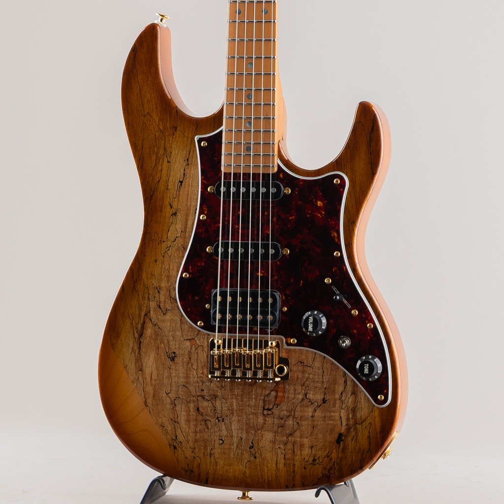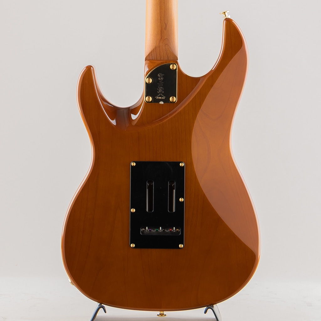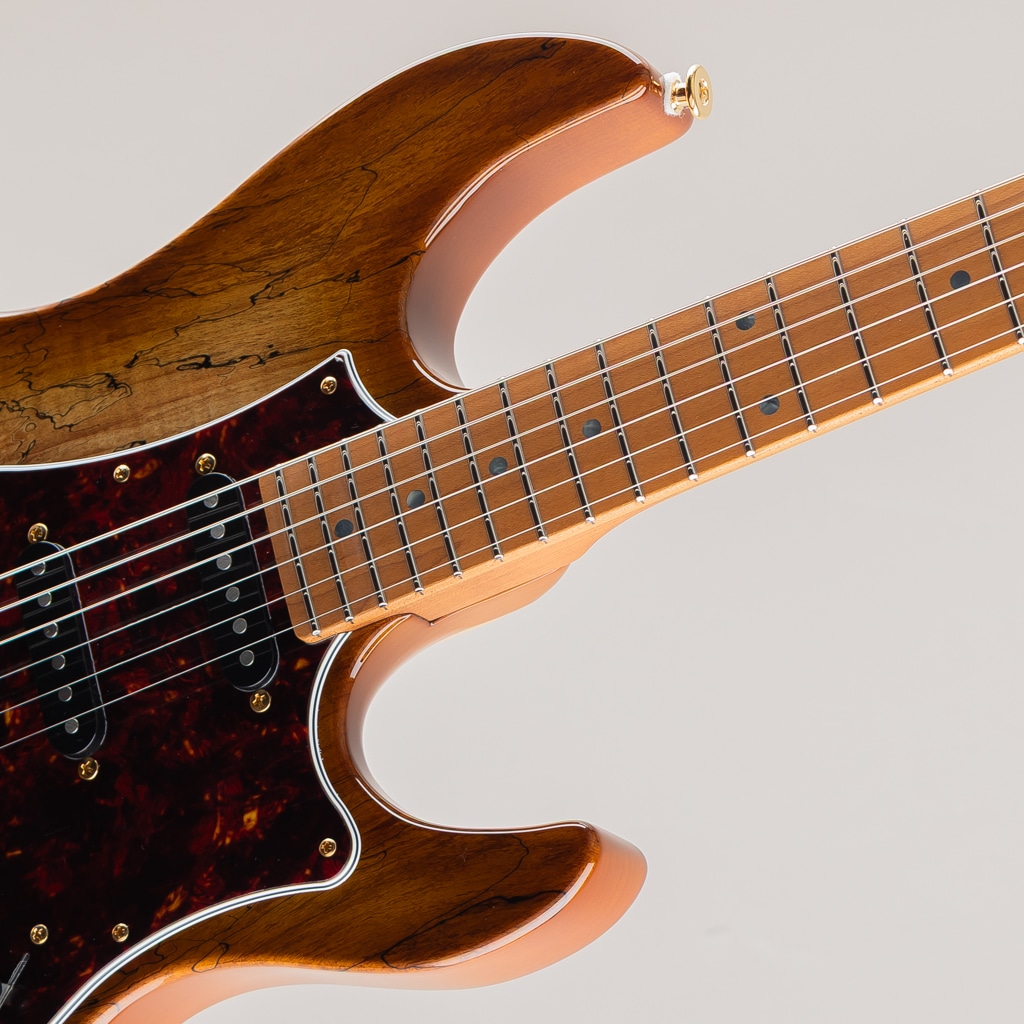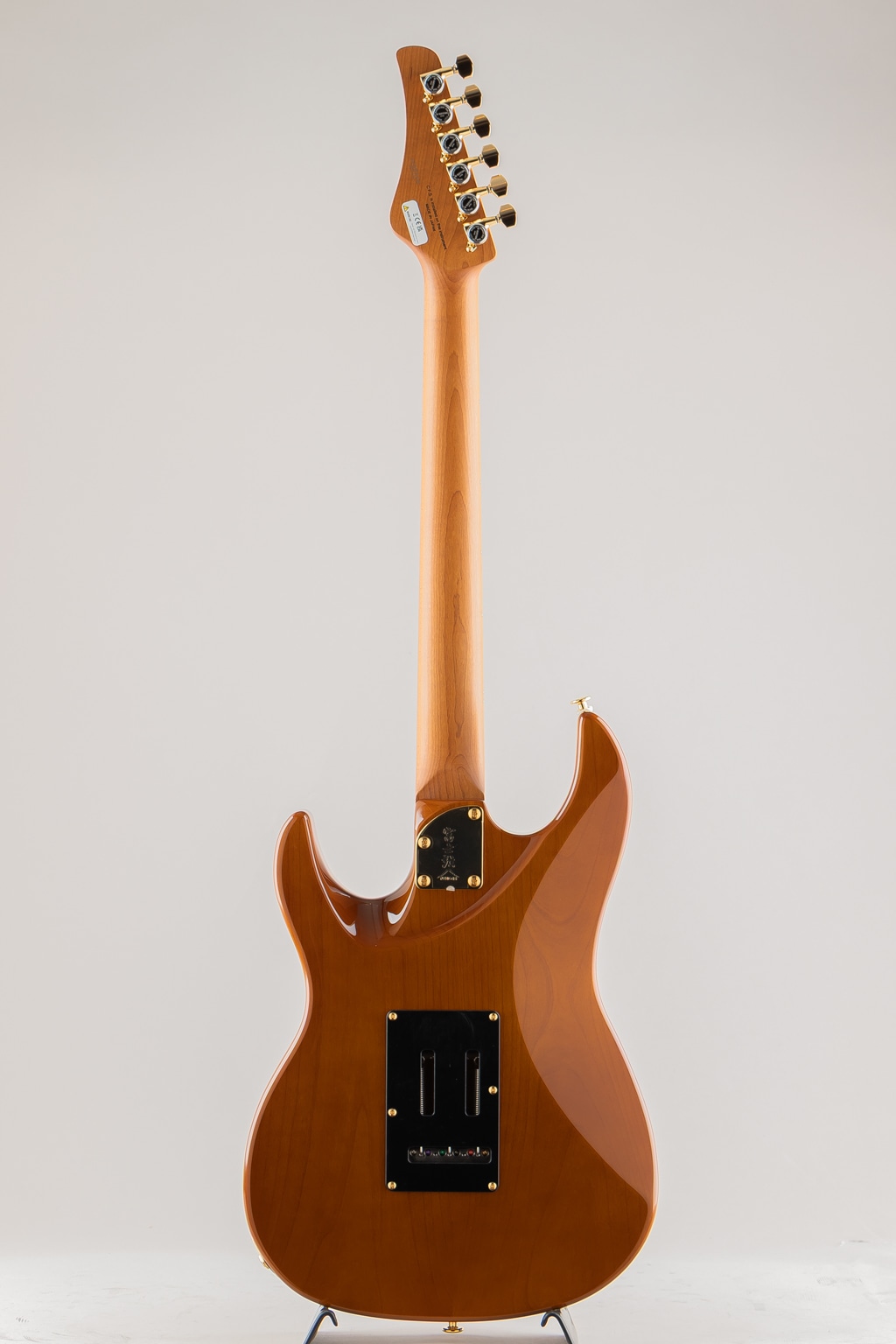 EOS2-EW-1-RMはトップに希少なエキゾチックウッドのスポルテッドメイプルを使用したアルダーボディ。何ともジャパンメイドらしいほうじ茶バーストカラーが鮮やかに彩ります。ネックには初となるローステッドメイプルを採用。演奏性を考慮したネックはコンパウンドラジアス指板やサークルフレッティングシステムによりハイポジションまでの操作性と抜けの良いピッチにも優れたサウンドを生み出します。更に今回フレットにはステンレスジャンボフレットを標準搭載しております。
