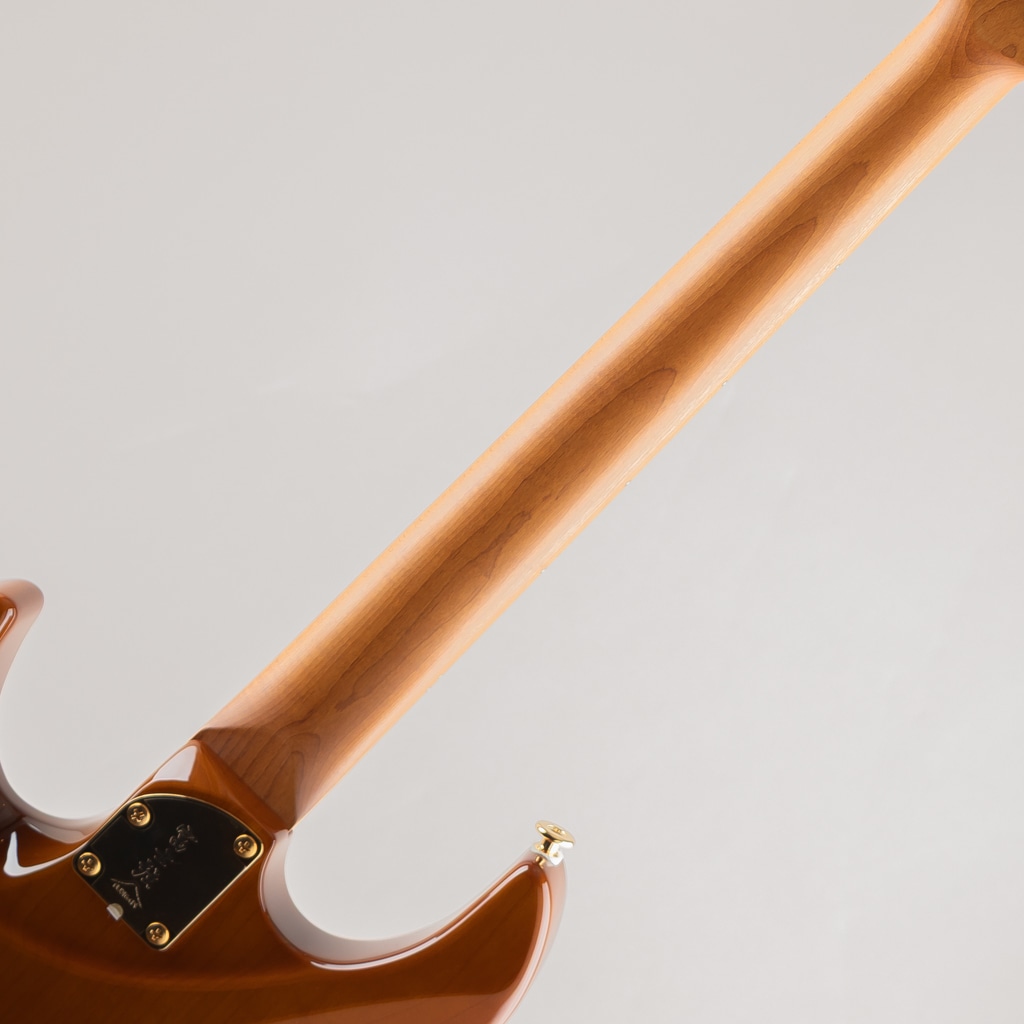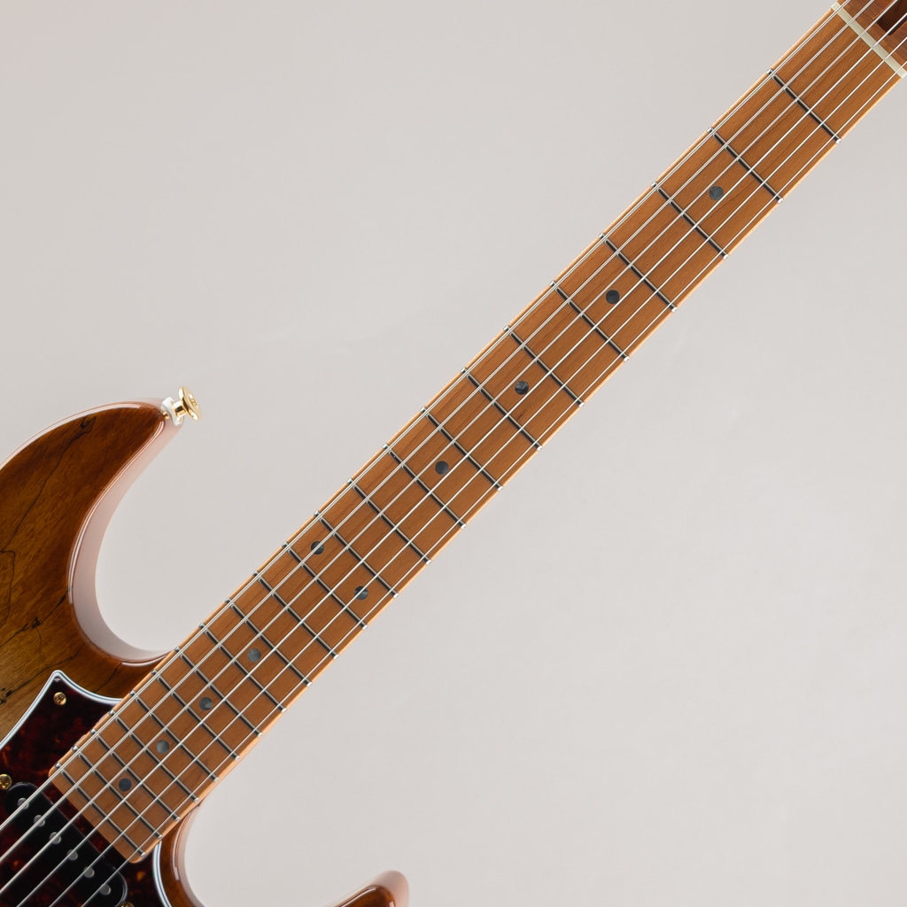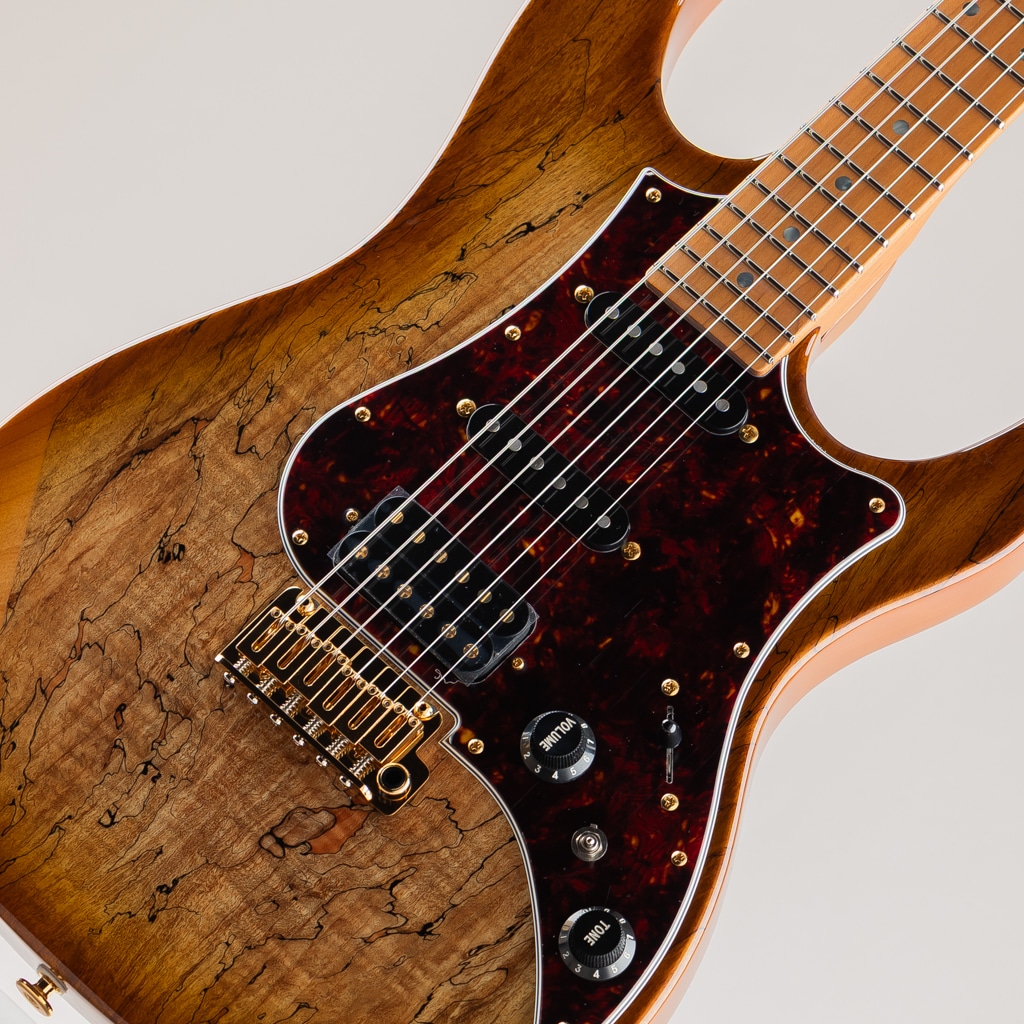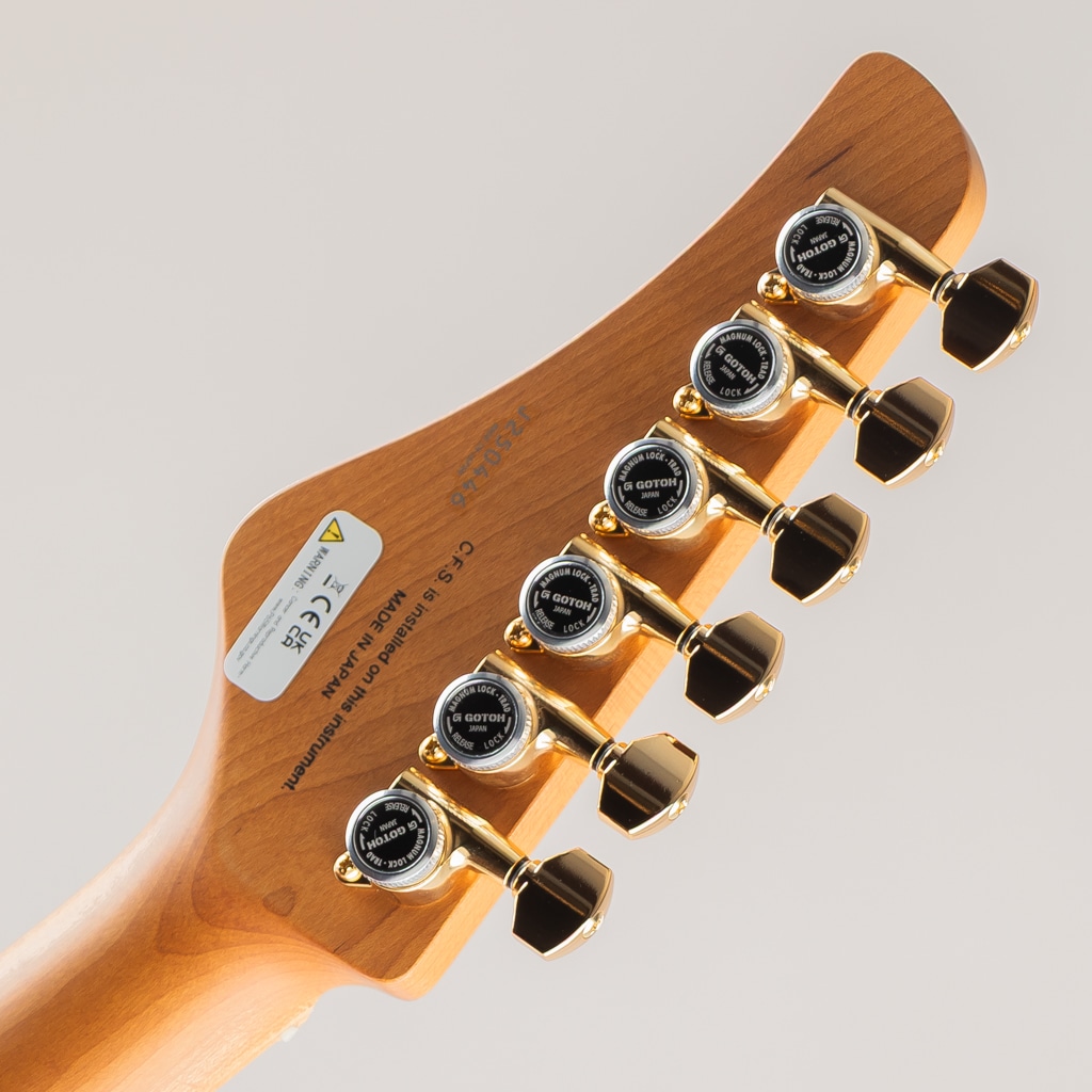 ピックアップはFGNオリジナルをSSHマウント。ブライトでキレのあるシングルコイルに加え、ホットなリアハムバッカーのみに作動するキルスイッチを搭載したトリッキーなコントロールが可能です。その他にも体にフィットしやすい形状のEXPERT OSオリジナルのコンター加工・エルボーカット、アーミング時の狂いを軽減するマグナムロックチューナーといった拘りが随所にみられます。