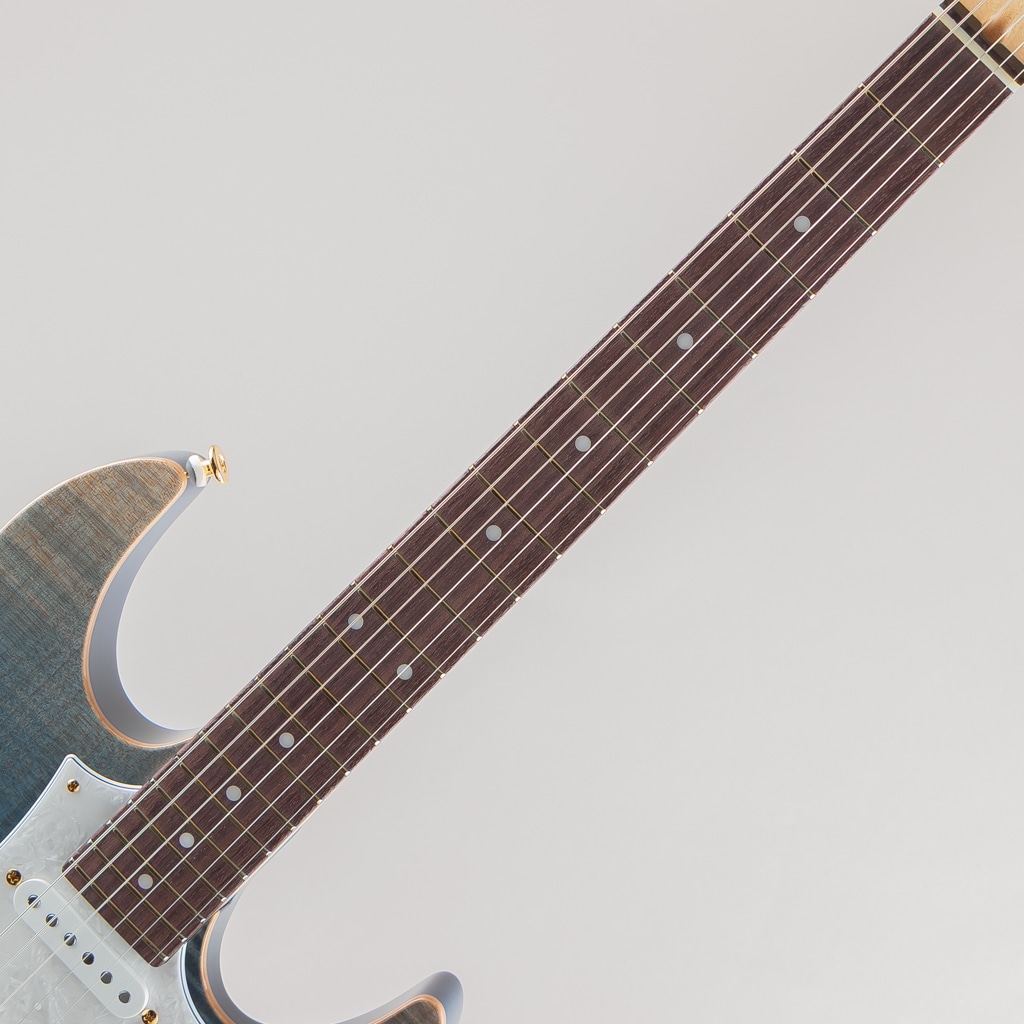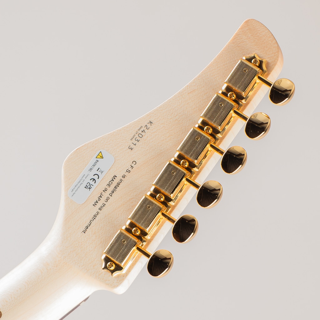 ネック材のメイプル材には反りなどの狂いが少ない選りすぐられた”柾目”を採用。自社独自の乾燥設備・乾燥工程で狂いだしを行い強度を上げ、ギターネックの素材として最適な状態にした後に加工されています。サイドポジションには蓄光のルミンレイを搭載し、ステージ上での視認性が考慮されております。併せてストリングリテイナーは3弦にもテンションを加えれる様に新開発しており、クリアで心地良いトーンを実現。