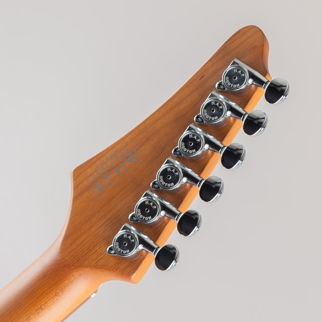 AZとしては他になかったMahoganyボディ、ローステッドメイプルネック。ATZスペシャルインレイが施された鮮やかなローズウッド指板にはメンテナンス製に優れ音の立ち上がりが早いステンレスフレットを採用。