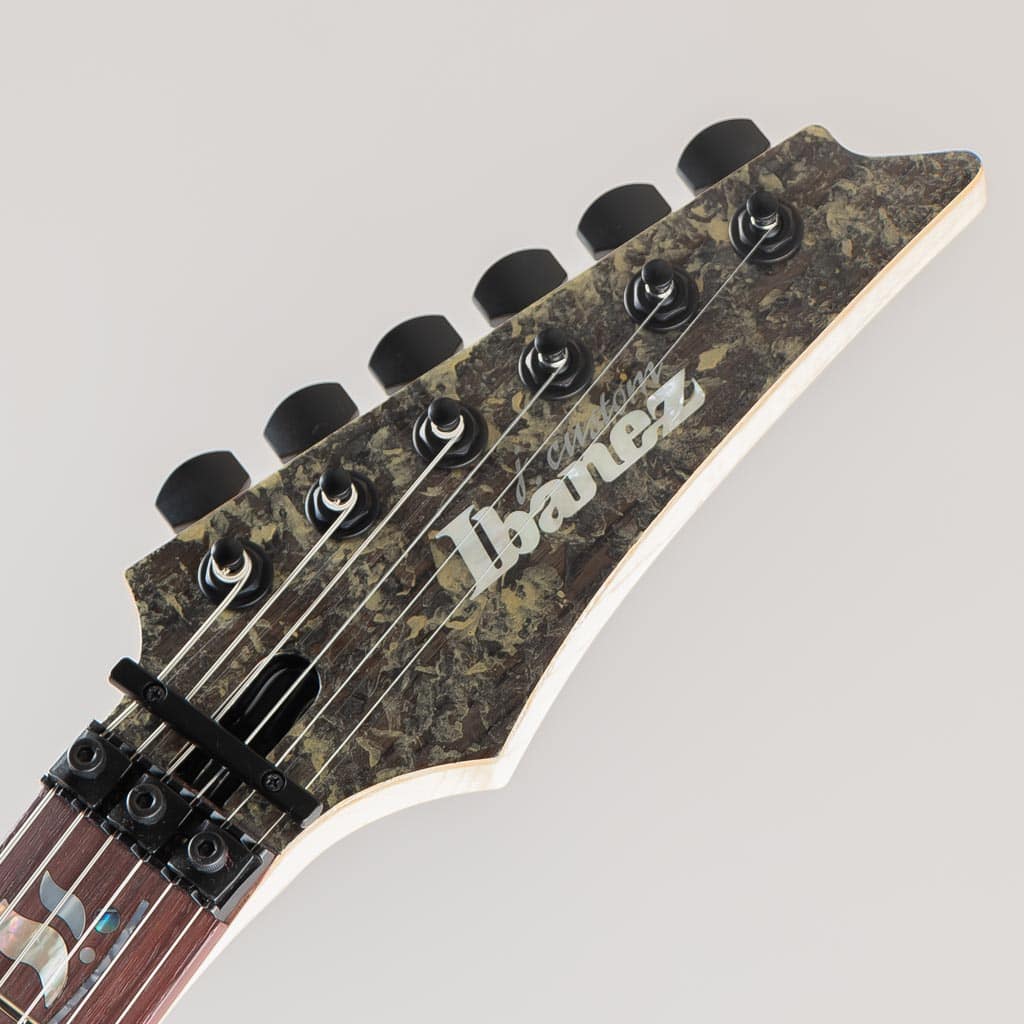 グリップはライブパフォーマンスを重要視し、演奏性の向上を追求した決定版とも言えるスリムネックRG j.custom Super Wizard neck。ブリッジにはユニットを極力低く又ファイン・チューナーを後方に配置し設計することで演奏時に手が当たりチューニングが狂う可能性を抑えたオリジナル・トレモロLo-Pro Edgeを搭載。