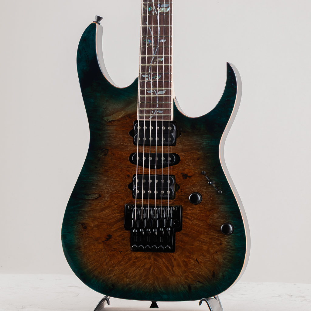 厳選された良質な材を使用し国産ブランドならではの確かな技術と仕上がりを活かし完成されるIbanezの最上級シリーズであるj.custom。今回入荷しました1本はボディトップにエキゾチックメイプルを使用した限定モデルRG8570Bでございます。