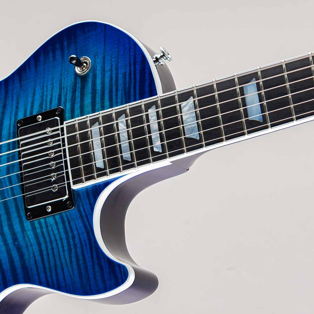 ウェイトリリーフ加工されたマホガニー&メイプルトップのボディ。マホガニーネック&エボニー指板のウッドマテリアル。コンター加工が施されたボディヒール、コンパウンドラディアス指板を採用することで、レスポールの弱点でもあるハイポジションへの容易なアクセスを実現。加えて、ローアクションでの弦高設定も可能でございます。非対称のネックグリップは手に馴染みやすく、テクニカルなフレーズからコードプレイまで快適な演奏性を確保。また、ペグにはGrover製のロックペグを採用している点もグッドポイント。
