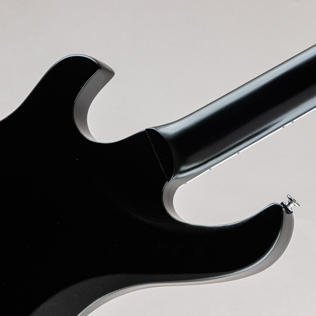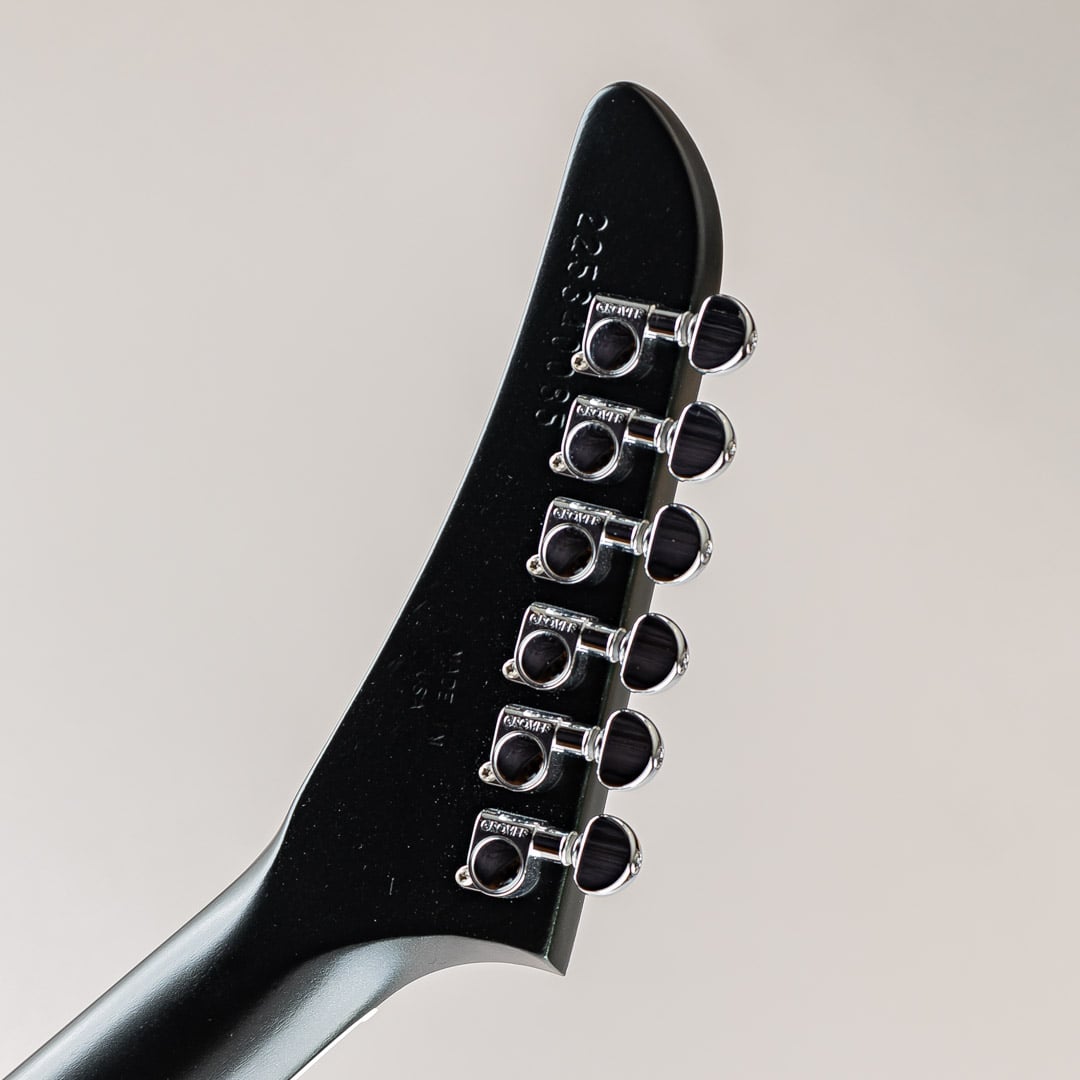 特徴的なダブルカッタウェイを取り入れたボディスタイル。バック面やネックジョイント部分にはコンター加工が施されておりますので、体に吸い付くようなフィット感、そして優れたボディバランスは快適な弾き心地を実現しております。オリジナルのヘッドはノンリバファイアーバード風のデザインでございましたが、エクスプローラータイプへと変更されております。ウッドマテリアルはマホガニーボディ/マホガニーネック/エボニー指板にて構成。25.5インチのロングスケールネック/スリムテーパーネックシェイプ/コンパウンドラディアス/24F等といったモダンなスペックが余すことなく採用されております。
