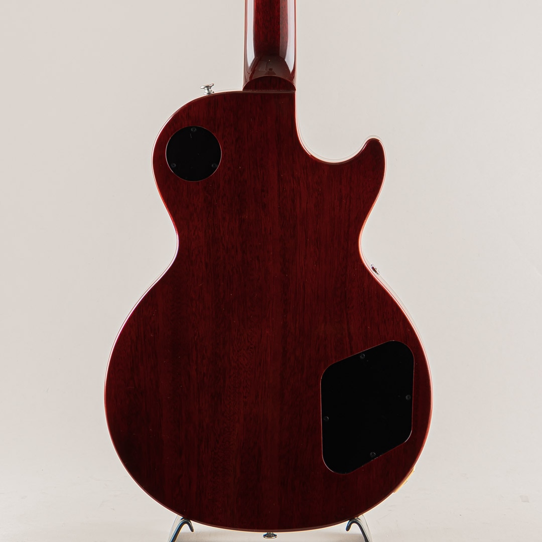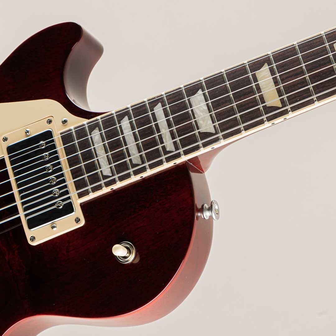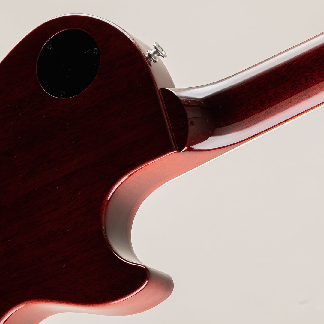 ボディバインディングを施さず、メイプルトップの厚みを薄くすることで、身近にレスポールサウンドを楽しむことができる人気モデルでございます。本モデルのスペックはマホガニーボディ/メイプルトップ/マホガニーネック/ローズ指板のウッドマテリアル。ボディにはウルトラ・モダーン・ウェイトリリーフ加工が施されたことにより、レスポールスタンダードに比べ軽量な取り回しを実現。そこに加えネック厚が薄いスリム・テーパーシェイプ、オクターブ調整がしやすいナッシュビルチューンブリッジを搭載することで、高い演奏性が確保されております。その他の面では、ネックバインディングが新たに採用されておりますので、ポジションマークの視認性が向上しただけではなく、ルックス面においても締まりのある雰囲気を演出しております。