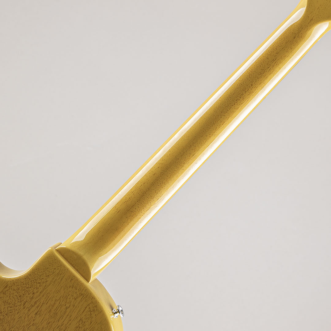 フラットトップのマホガニーボディ、マホガニー/ローズ指板のウッドマテリアルにて構成。その他のスペック面としてはクルーソンペグ、ブラックトップハットノブ、ラップアラウンドブリッジが採用されております。スタンダードモデルなどに採用されるフィギュアドメイプル、バインディング等を採用しないことにより、コストダウンが図られながらも無骨で味のあるデザイン性は、エントリークラスながら人気の根強いモデルでございます。