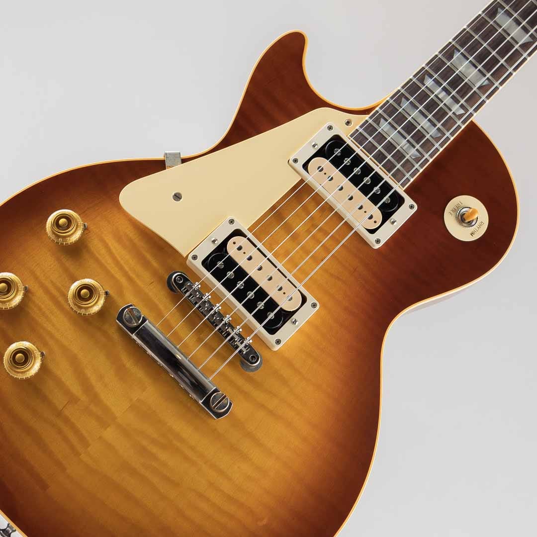 近年リファインされたより当時に近いヘッドトップの“Gibson”&“Les Paul”ロゴ、指板のディッシュインレイ素材の色味、サーキット内のポットやバンブルビーコンデンサーもビンテージライクな仕様を採用。オールニカワ接着やトゥルーヒストリックパーツ採用等の基本仕様も、勿論採用しております。
