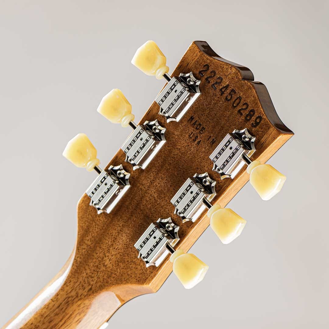 そして、なんといっても目玉はダブル・クラシック・ホワイトボビン仕様のBurstbucker1&2が搭載されている点。深いボトムがありながらも荒々しさを感じさせるレスポールらしいグッドサウンド。そして、カバーを取り付けていないことで、従来のモデルに比べ高音域が煌びやかになった印象。ルックス面が向上しただけでなく、サウンド面にも変化を感じられる仕様となっております。