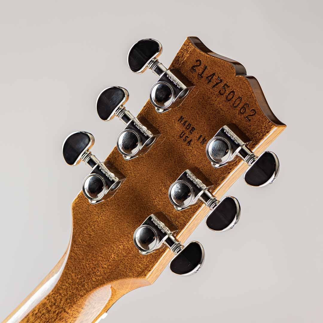 ウッドマテリアルは、ウェイトリリーフ加工が施されていないマホガニーバック/AAフィギュアド・メイプルトップ/マホガニーネック/ローズウッド指板にて構成。王道ウッドマテリアルからアウトプットされる、芳醇でありながらも力強さを感じられる鳴りはギブソンのフラッグシップモデルとして君臨し続けるのを納得させるクオリティ。ネックプロファイルは、60年代のGibsonビンテージをプロファイリングし形成されたSlimTaperシェイプで、なだらかな曲線を描いたグリップ感は、テクニカルなフレーズをプレイされる際においても、ストレスを感じにくい握り心地。その他ABR-1ブリッジ/Groverペグ等が搭載されております。