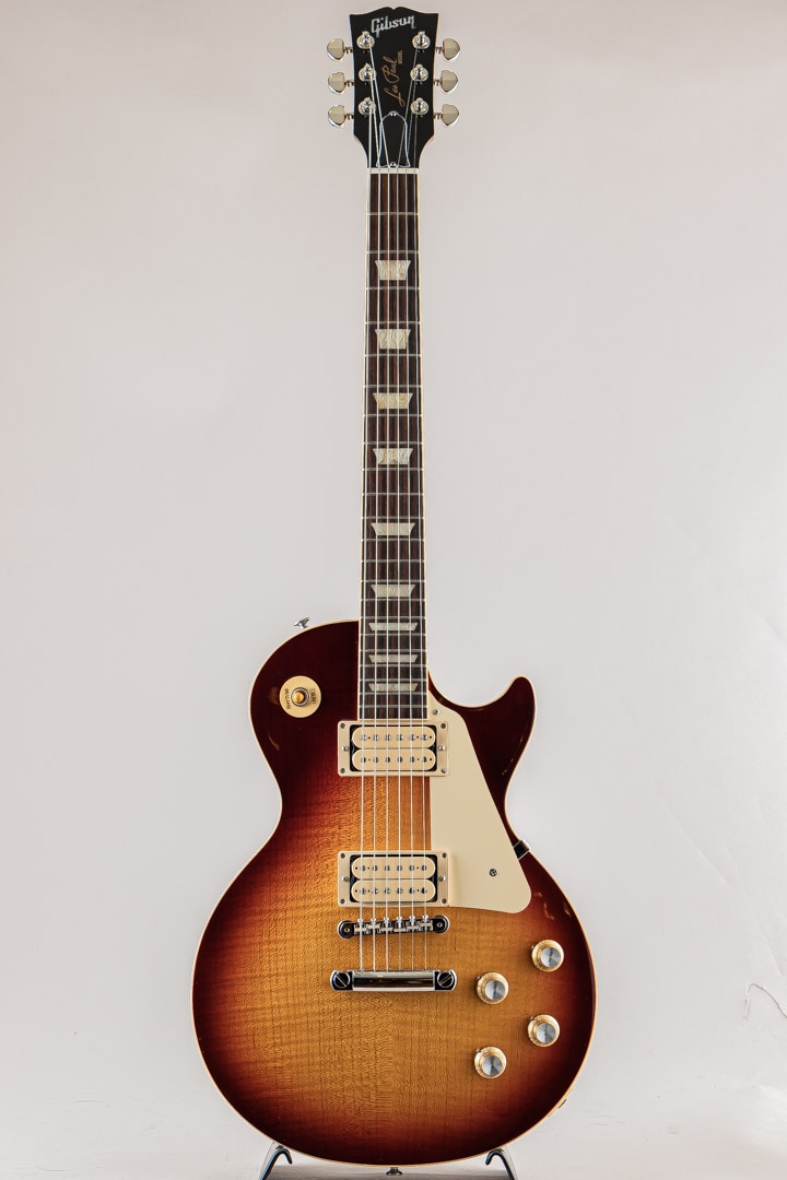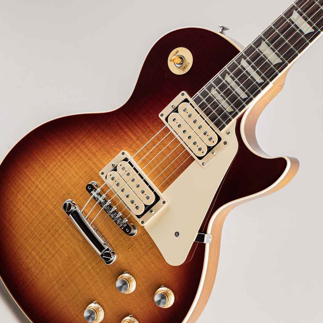 ウッドマテリアルは、ウェイトリリーフ加工が施されていないマホガニーバック/AAフィギュアド・メイプルトップ/マホガニーネック/ローズウッド指板にて構成。王道ウッドマテリアルからアウトプットされる、芳醇でありながらも力強さを感じられる鳴りはギブソンのフラッグシップモデルとして君臨し続けるのを納得させるクオリティ。ネックプロファイルは、60年代のGibsonビンテージをプロファイリングし形成されたSlimTaperシェイプで、なだらかな曲線を描いたグリップ感は、テクニカルなフレーズをプレイされる際においても、ストレスを感じにくい握り心地。その他ABR-1ブリッジ/Groverペグ等が搭載されております。