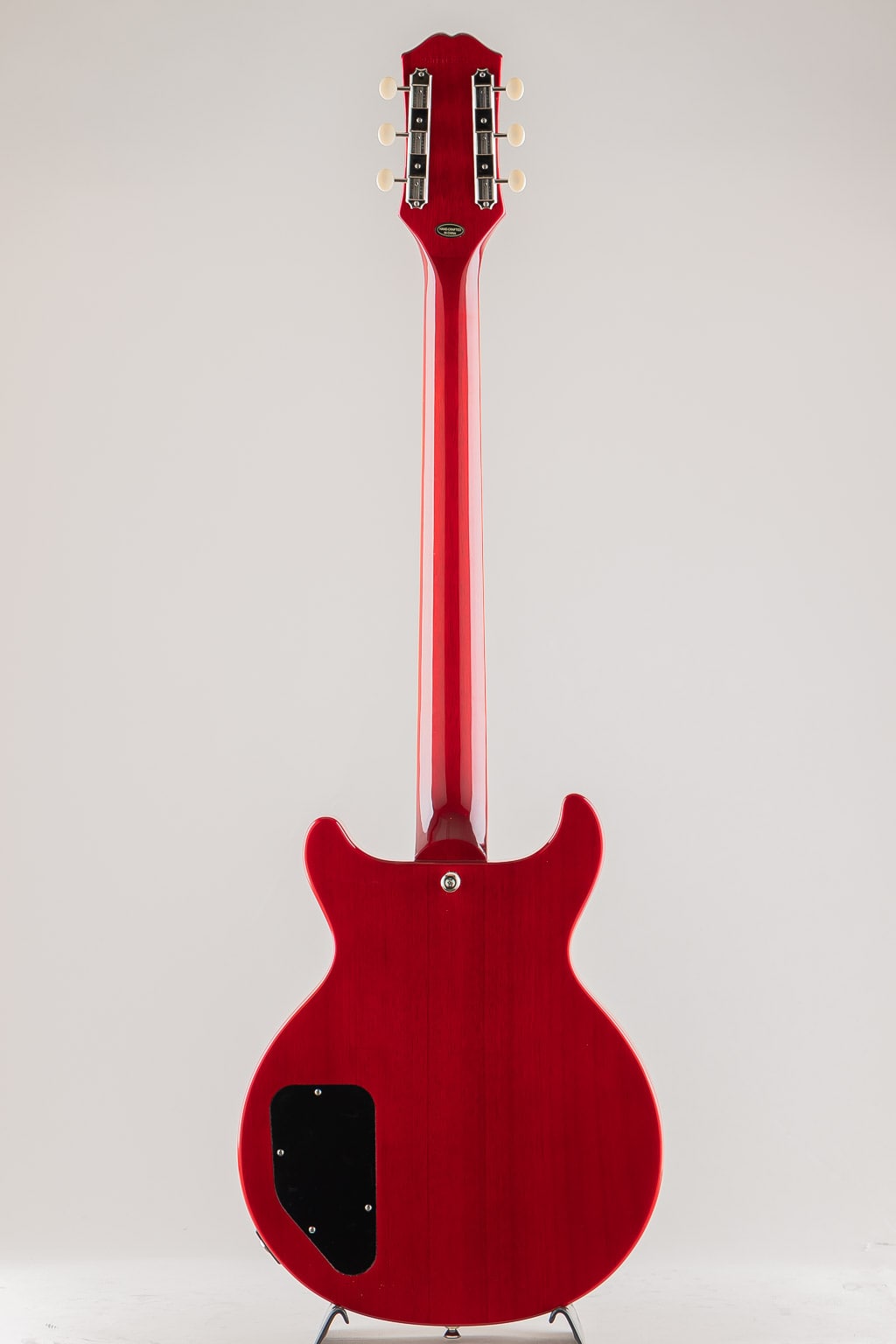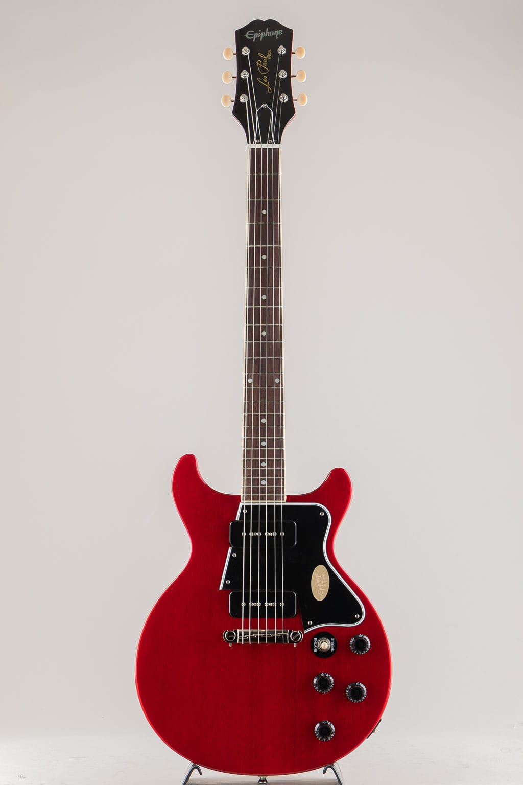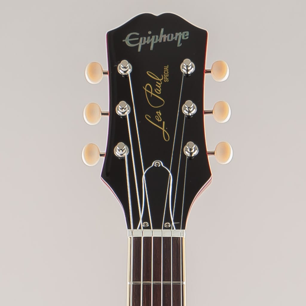 エピフォンは、60年代初期のモデルをギブソンからインスピレーションを得て再現した、レスポール・スペシャル・ダブルカットを誇りを持って発表します。スラブ・マホガニーのダブル・カッタウェイ・ボディを採用し、指板の全長に自由なアクセスを提供します。接着されたマホガニー・ネックは60年代のスリム・テーパー・プロファイルを特徴とし、22個のミディアム・ジャンボ・フレットとパーロイドのドット・ポジション・マーカーを備えたバインディング・ローズウッド指板が取り付けられています。1960年代のカラマズー・ヘッドストックには、アイボリー・ボタンとグラフ・テック・ナットを備えたエピフォンの3オン・ア・プレート・チューナーが装備され、安定したチューニングと紛れもないビンテージの魅力を提供します。エピフォンのロゴはマザー・オブ・パールで象嵌されています。弦の反対側は、サスティンと共鳴を向上させるためにボディに直接ボルト留めされたエピフォンのライトニング・バー補正ラップアラウンド・ブリッジで固定されています。 Les Paul Special Double Cutは、Epiphone P-90 PROシングルコイル・ソープバー・ピックアップを2基搭載し、甘くきらめくクリーントーンから、力強く激しいディストーショントーンまで、あらゆるサウンドを奏でます。各ピックアップは独立したボリュームとトーンコントロールに配線されており、より幅広いトーンバリエーションを実現しています。Epiphone Les Paul Special Double Cutは、あらゆる面で特別なモデルでありながら、これまで以上にお求めやすくなりました。プレミアムギグバッグも付属します。