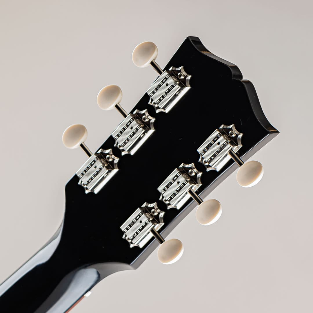 ウッドマテリアルは、マホガニーボディ / マホガニーネック / ローズウッド指板にて構成。ネックシェイプはスリムテーパーを採用しております。ダブルカッタウェイ構造とスリムテーパーネックも相まって、快適なプレイアビリティでございます。ブリッジにはラップアラウンド、ペグにはホワイトボタンのタイプを採用。レトロ風なルックスはステージ映えも狙えるのではないでしょうか。
