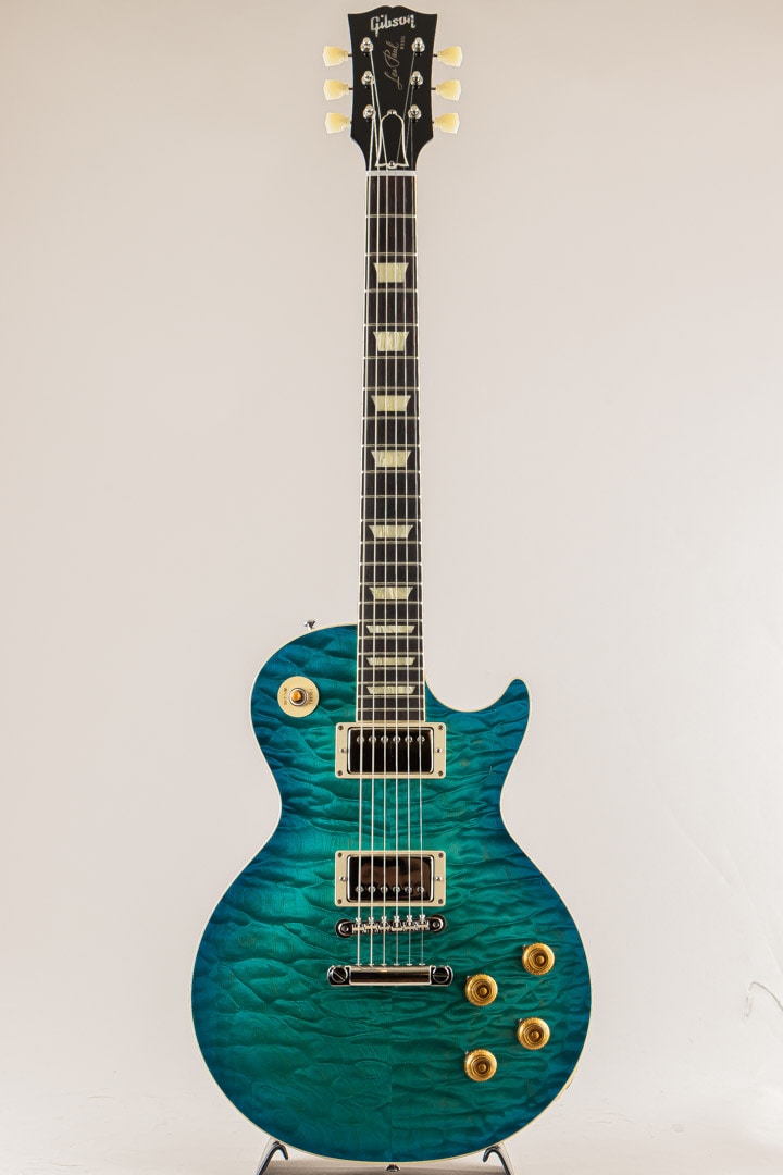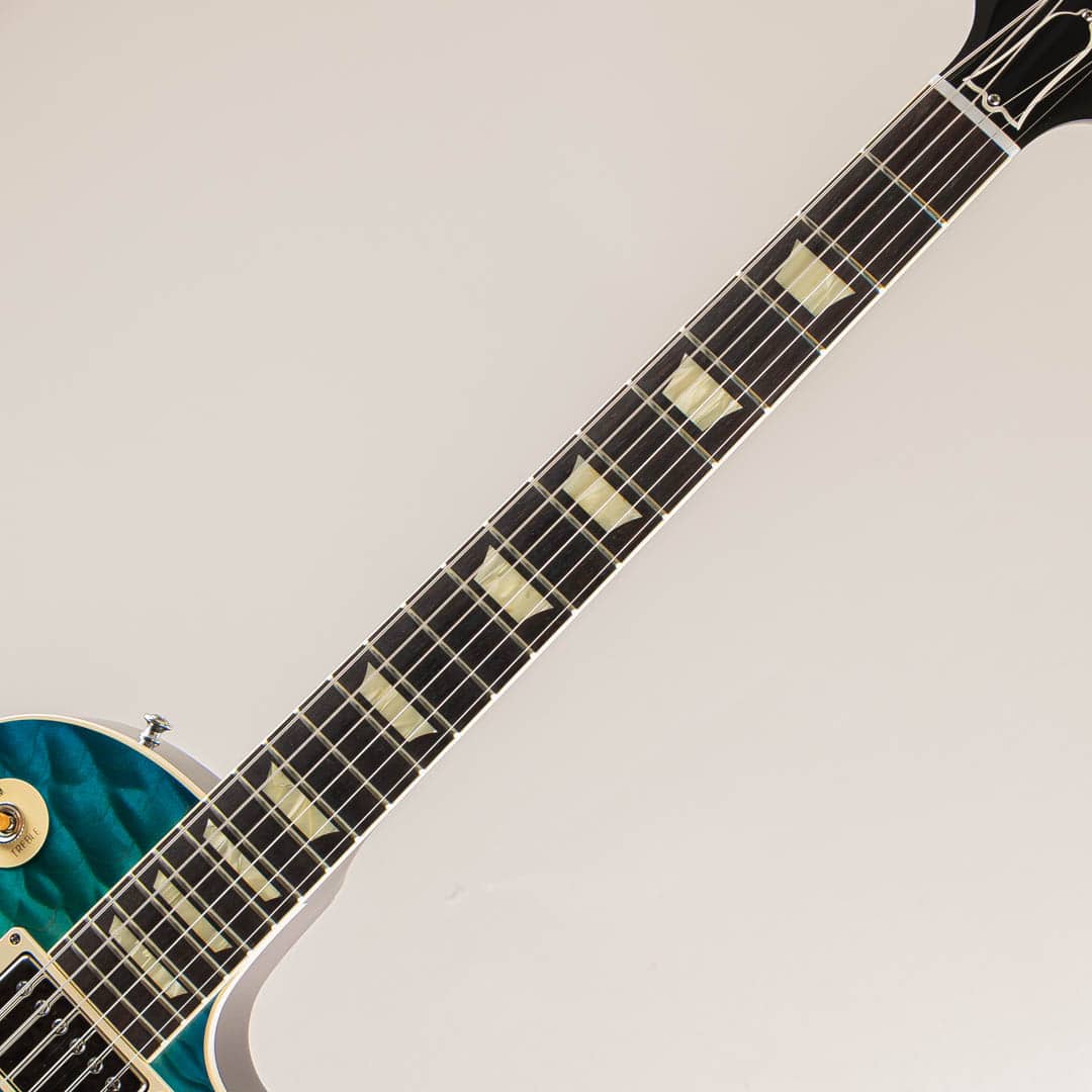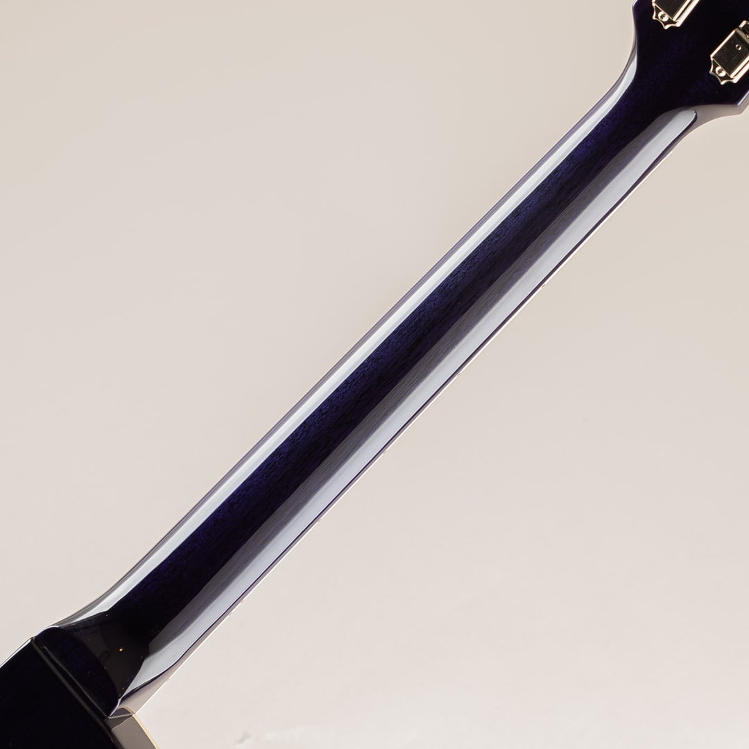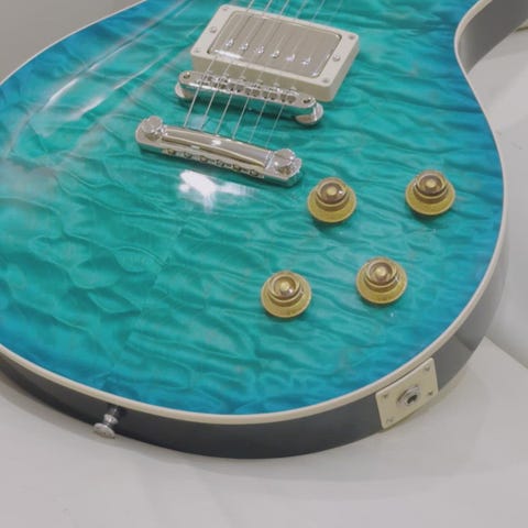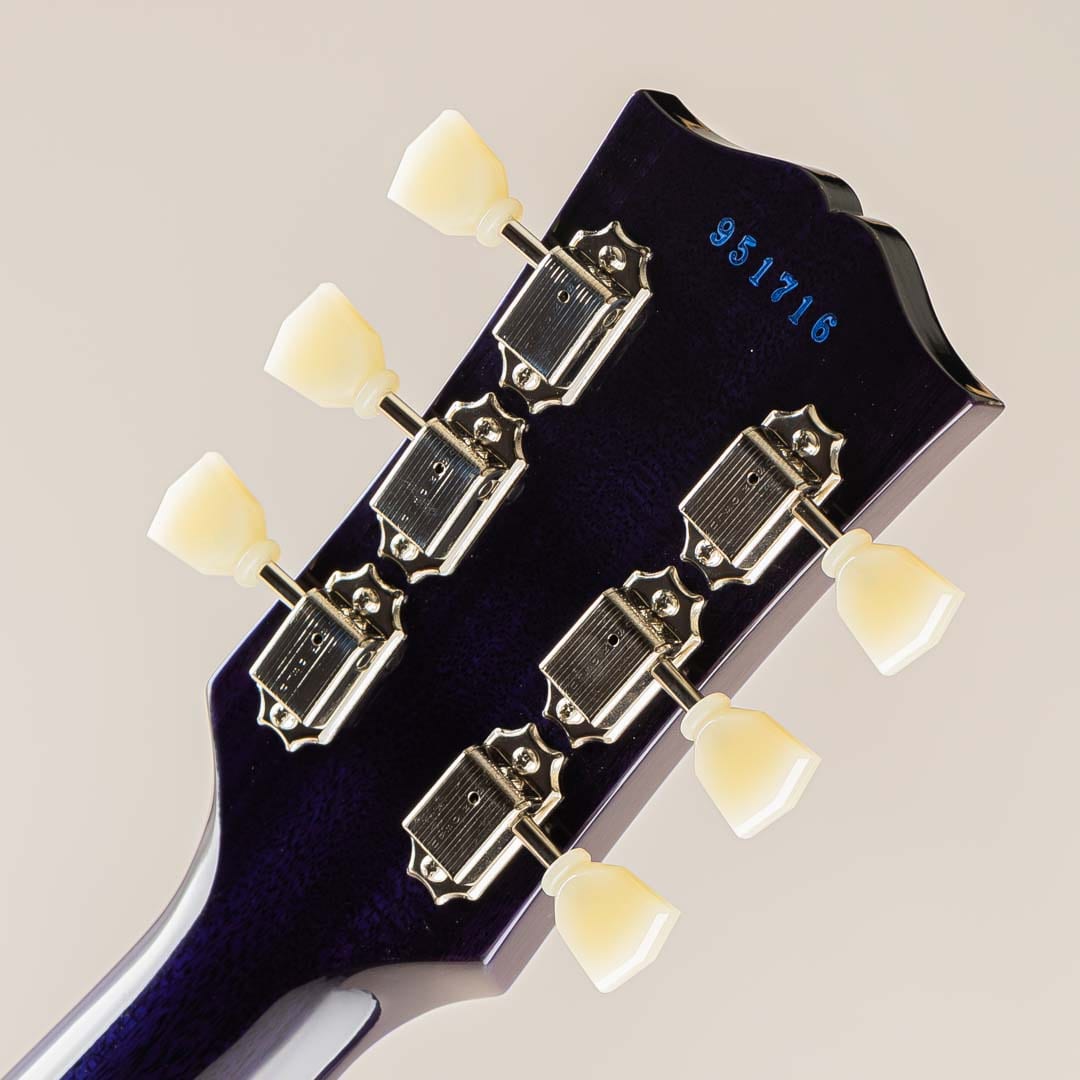 ウッドマテリアルは、7Aキルトメイプル / ソリッド・マホガニーバック / マホガニーネック / ローズウッド指板にて構成。カラーにはサファイアのような美しさのある"Trans Blue Burst"をチョイスしバックには"Trans Blue"を採用しております。浮き出てくるかのような迫力溢れる杢、角度を変えることで見られる波打つような動きは、南国の島国を思わせるような美しさ。壁に立てかけているだけでも満足感を得られる仕上がり。このモデルは杢目の美しさを際立たせるため、ピックガードは取り付けずにオーダーしておりますが、ピックガードはハードケース内に同梱しております。その他スペック面はベースモデルのR9に準じ、ロングテノンジョイント / オールニカワ接着 / 59ミディアムCシェイプ / クルーソンペグ / ABR-1ブリッジ等が採用されております。