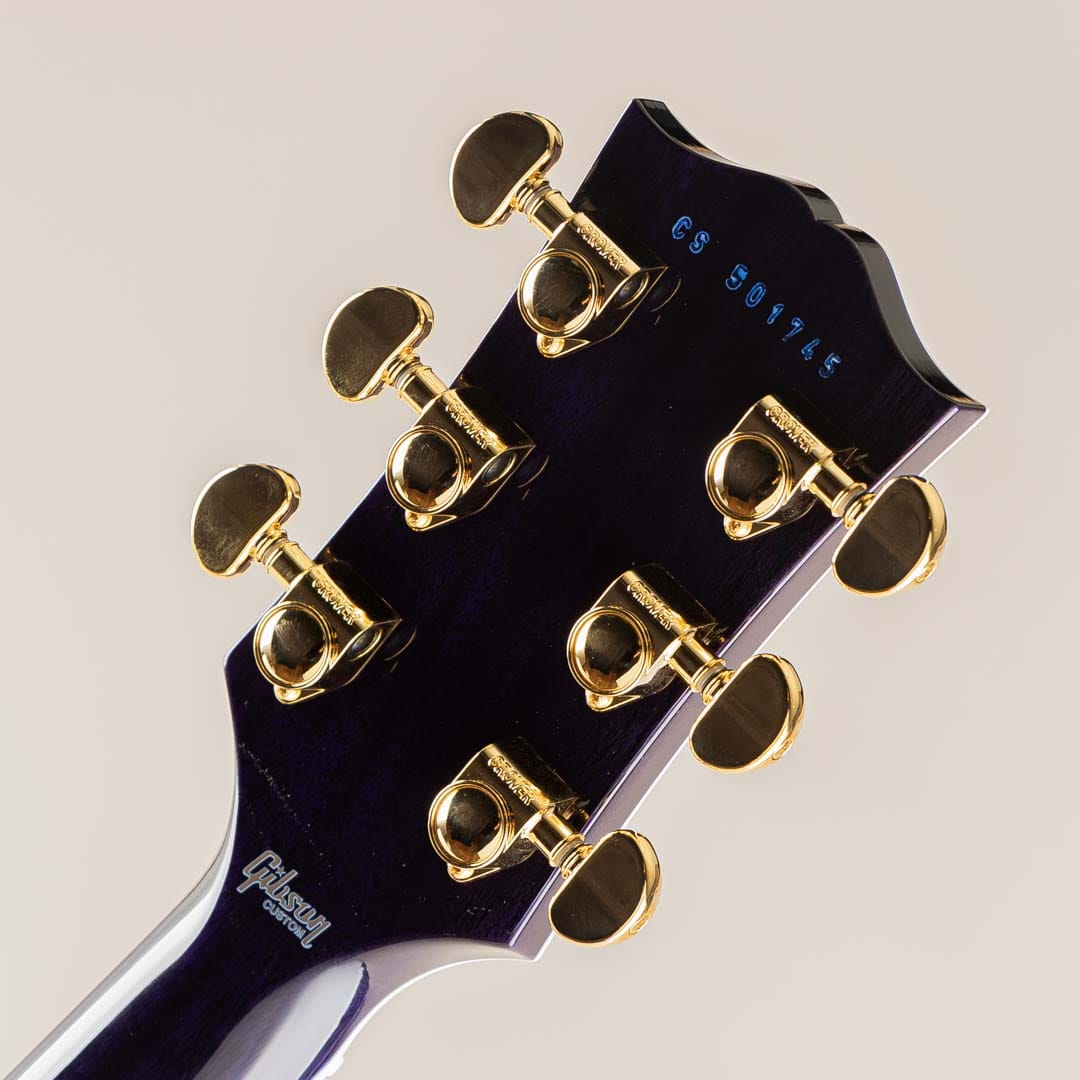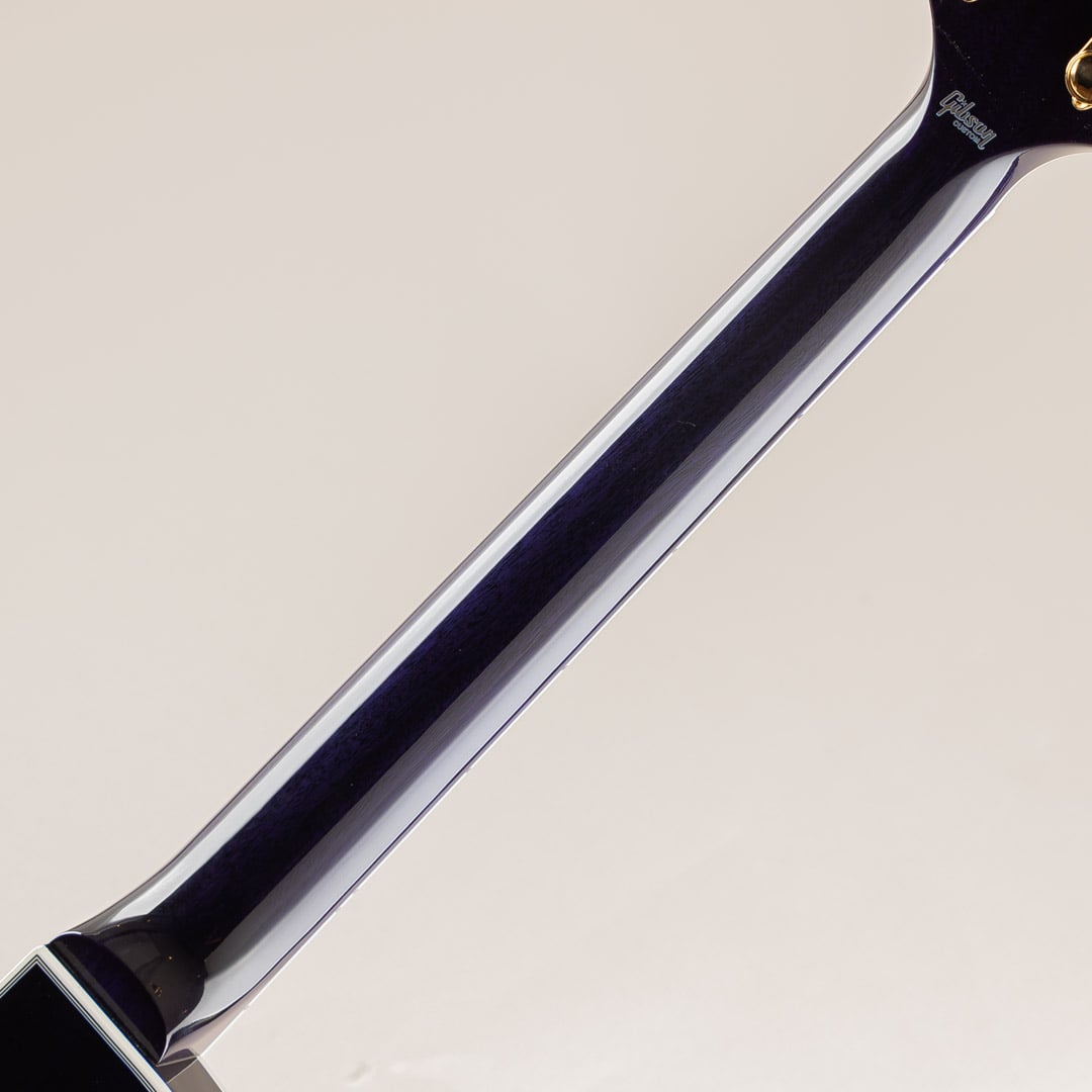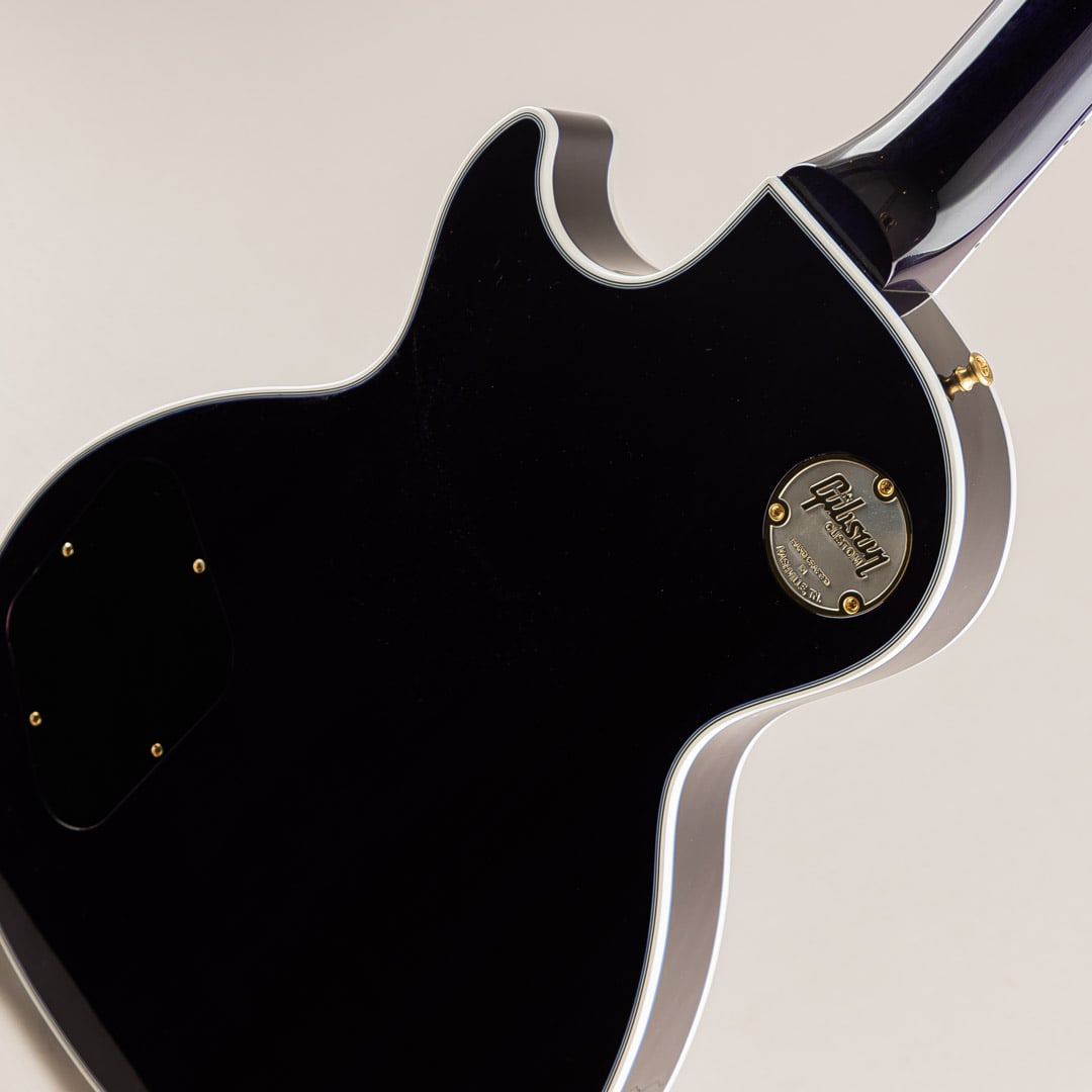 その他スペック面としては、特定の年代に囚われない実用的なスペックを搭載したレスポールカスタムに準じ、ボディバックには軽量化を測るための9ホール・ウェイト・リリーフを施されております。しかしながら、サウンドが軽くなるのか? ということはなく、レスポールらしい重厚感あふれる鳴りが感じられ、カスタム・ショップのクラフツマンたちの確かな技術力を感じさせる仕上がりでございます。その他、グリップ感の心地よいミディアムCシェイプネック / ナッシュビル・チューン・O・マチック / Groverペグが搭載されております。