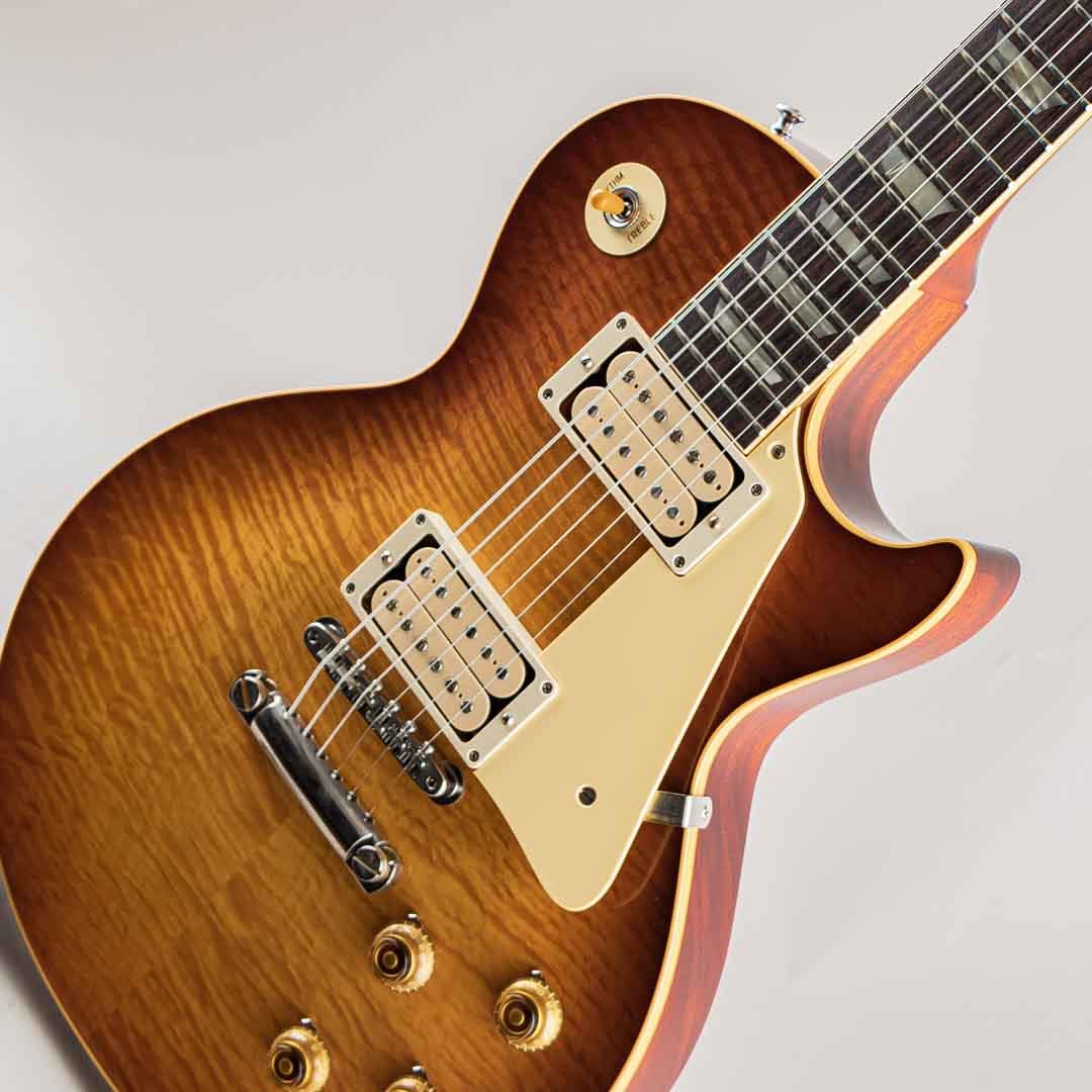 現地ファクトリー選定材採用モデル。1959 Les Paul Standard R-Top Slow Iced Tea Fade VOSが入荷。ダブルホワイトボビン採用の限定モデルでございます。