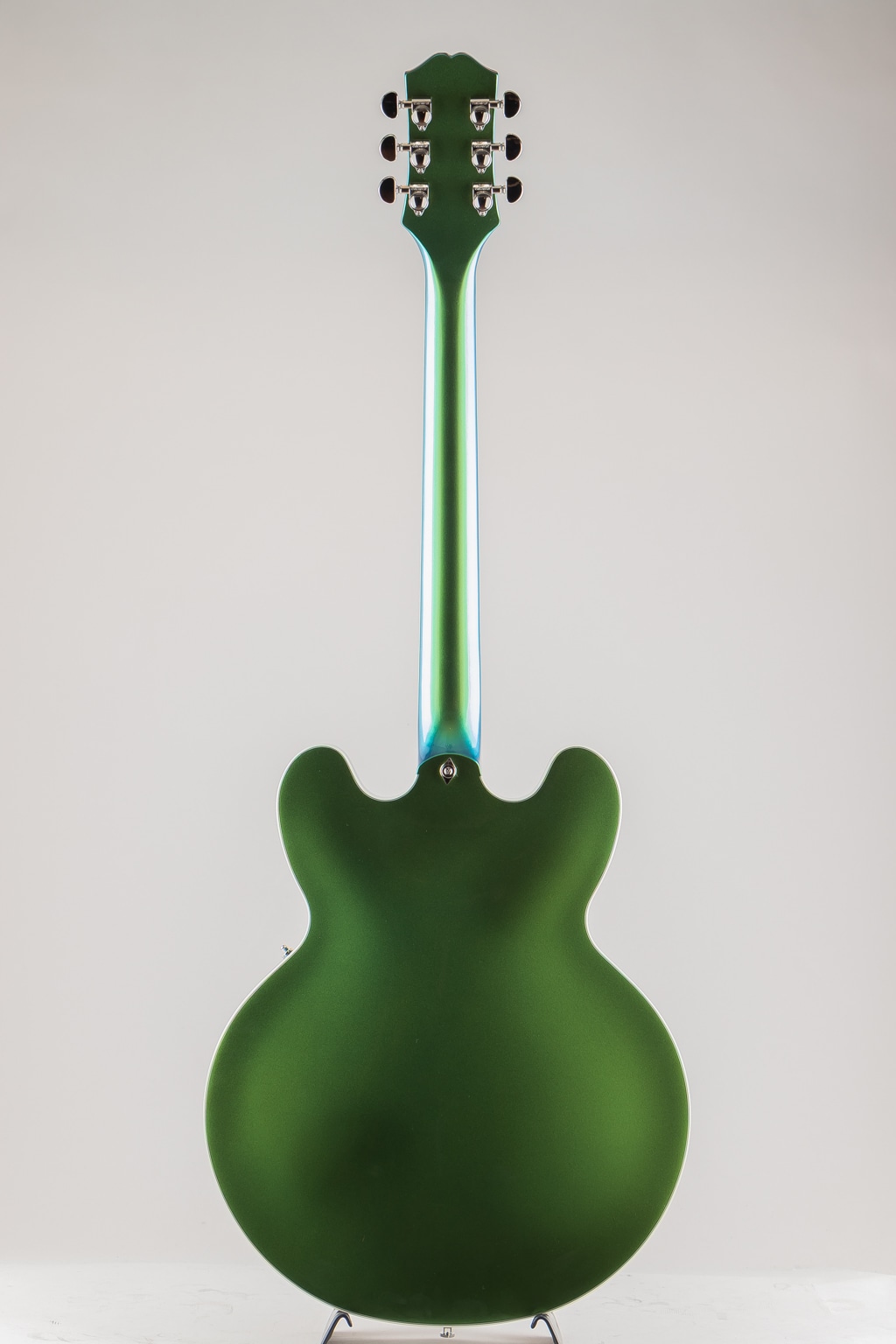 マホガニー・ネックは、素早い運指を可能にするモダンCプロファイルを採用。バインディングが施されたエボニー指板には、22本のステンレス・スチール・ミディアムジャンボ・フレット、エレガントなSuper 400スタイルのパーロイド・スプリットブロック・インレイ、そしてスムーズなコードワークとチョーキングを実現する10~14インチのコンパウンド・ラジアスが採用されています。5プライ・バインディング仕様のカラマズー・ヘッドストックには、ロッキングGrover RotomaticチューナーとGraph Techナットを備え、マザー・オブ・パールによるエピフォン・ロゴとカスタム・スプリットダイヤモンド・インレイが施されています。