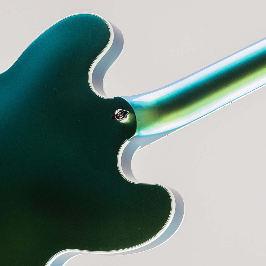 ギブソン ES-355は数十年にわたりプレイヤーに愛されてきました。エピフォンは、1958年に初めて登場した伝説的なセミアコースティック・デザインを現代的に解釈したFutura ES-355を発表します。このモデルは、ウェイトリリーフ加工が施されたソリッド・メイプル・センターブロックを採用しており、軽量で快適な取り回しを維持しながら、サステインの向上とフィードバックの抑制を実現しています。LockTone Tune-O-MaticブリッジとLockToneストップバー・テイルピースが安定したイントネーションとサステインを約束し、Posi-Lokストラップボタンは追加のハードウェアなしでストラップを安全に固定します。