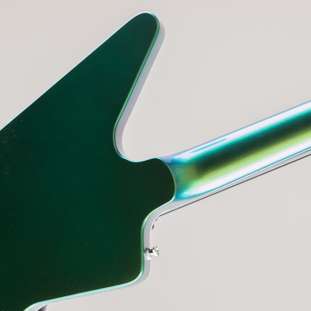 Futura Explorer Customには、Epiphoneの新しいProBucker Igniteハムバッカーピックアップが2基搭載されており、クリアさを保ちながら、必要に応じてアンプをパワフルにドライブさせることができます。プッシュ/プル式のボリュームとトーンコントロールにより、コイルタップとフェイズオプションが可能になり、さらに多彩な音色が得られます。Futura Explorer Customは、目を引く2種類のクロマシフトカラー、Firestorm ShiftとDragonfly Shiftで展開され、どちらもカメラ映えやステージ映えするようにデザインされています。モダンな美学を備えた楽器をお探しの方にも、多彩なサウンドオプションを備えた多用途な楽器をお探しの方にも、Futura Explorer Customは最適な選択肢です。今すぐ手に入れて、コンテンツ制作、レコーディング、ライブパフォーマンス、そして自己表現を次のレベルへと引き上げましょう。プレミアムギグバッグが付属しているので、インスピレーションが導くままにどこへでも持ち運べます。