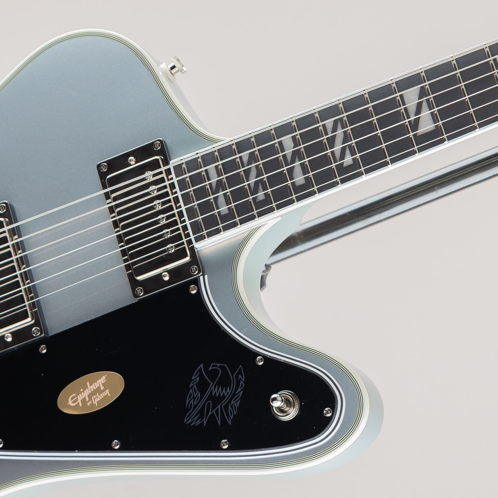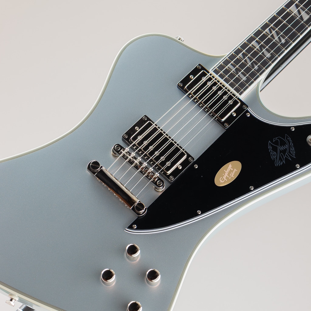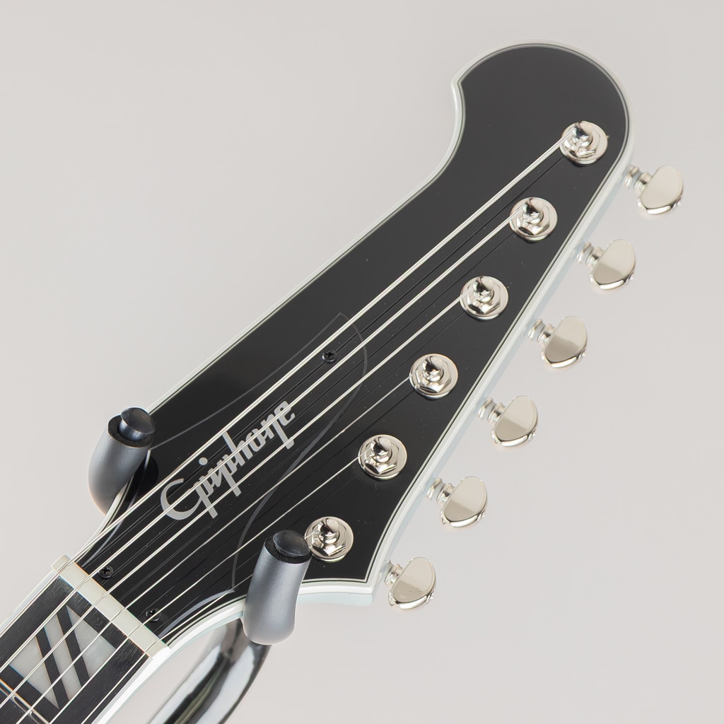 セットネック構造のマホガニー・ネックは、素早い運指を可能にするモダンCプロファイルを採用。バインディングが施されたエボニー指板には、22本のステンレス・スチール・ミディアムジャンボ・フレット、印象的なSuper 400スタイルのパーロイド・スプリットブロック・インレイ、そしてスムーズなコードワークとチョーキングを実現する10~14インチのコンパウンド・ラジアスが採用されています。バインディング仕様のリバース・ファイヤーバード・ヘッドストックには、ロッキングGrover Mini RotomaticチューナーとGraph Techナットを備え、エピフォン・ロゴが配されたファイヤーバード・トラスロッドカバーを装備しています。