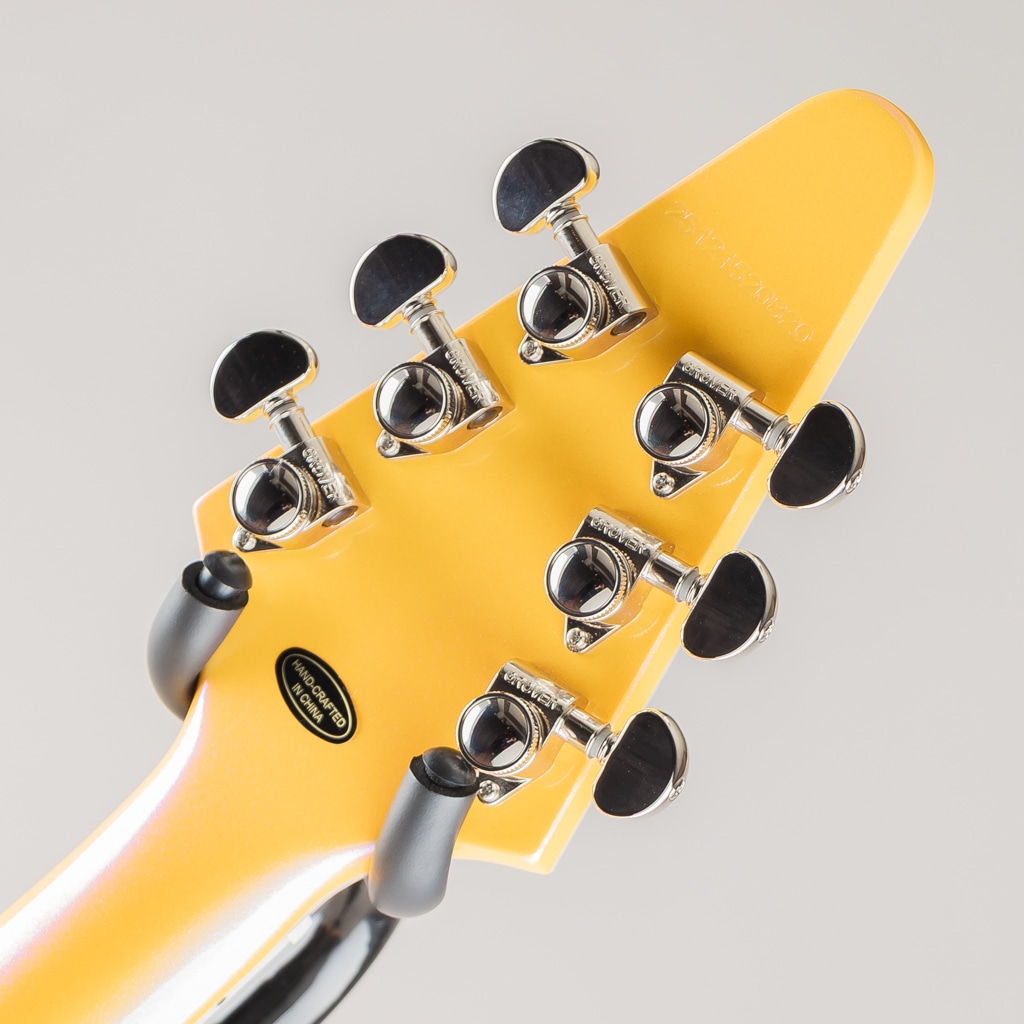 Futura Flying V Customのエレクトロニクスには、エピフォンの新しいProBucker Igniteハムバッカーを搭載し、明瞭さと解像度を保ちながらパワフルなトーンを放ちます。2つのプッシュ/プル・ボリューム・コントロールによりコイルタップが可能で、さらにプッシュ/プル・トーン・コントロールによりフェイズの切り替えができるため、音の柔軟性がさらに高められています。ステージや画面上で目を引く2種類の見事なクロマシフト・フィニッシュ(クイックシルバー・シフト、ソラリス・シフト)をラインナップ。モダンな美学、汎用性の高い電子回路、あるいはパフォーマンスに応える楽器を求めるプレイヤーに、Futura Flying V Customは応えます。プレミアム・ギグバッグが付属します。