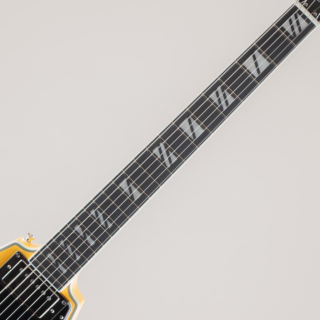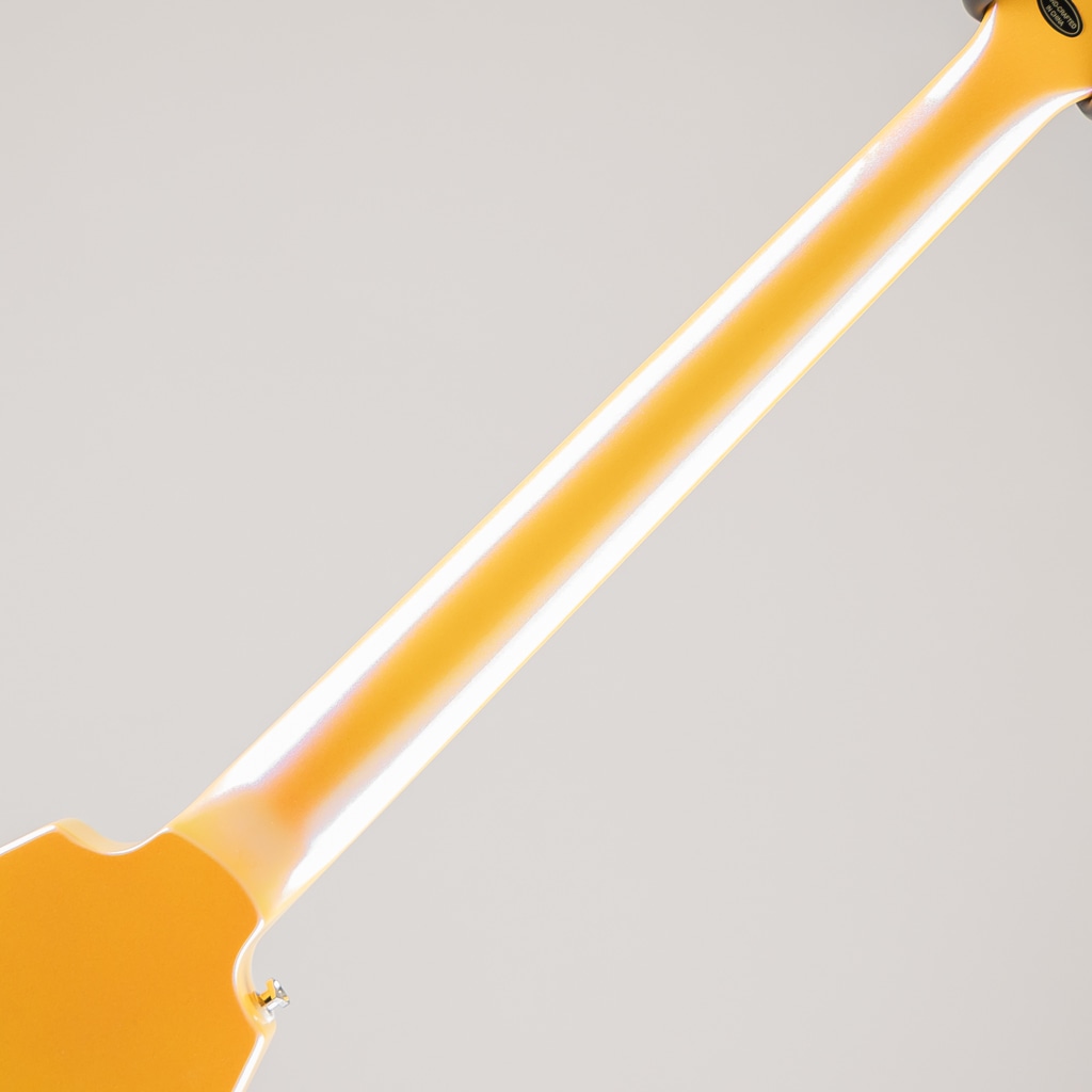 セットネック構造のマホガニー・ネックは、スムーズな演奏性を実現する洗練されたモダンCプロファイルを採用。バインディングが施されたエボニー指板には、22本のステンレス・スチール・ミディアムジャンボ・フレット、洗練されたSuper 400スタイルのパーロイド・スプリットブロック・インレイ、そしてスムーズなコードワークとチョーキングを実現する10~14インチのコンパウンド・ラジアスが採用されています。バインディング仕様のアローヘッド・シェイプ・ヘッドストックには、キドニー・ボタン仕様のロッキングGrover RotomaticチューナーとGraph Techナットを備え、カスタム・スプリットダイヤモンドとエピフォン・ロゴがマザー・オブ・パールで施されています。