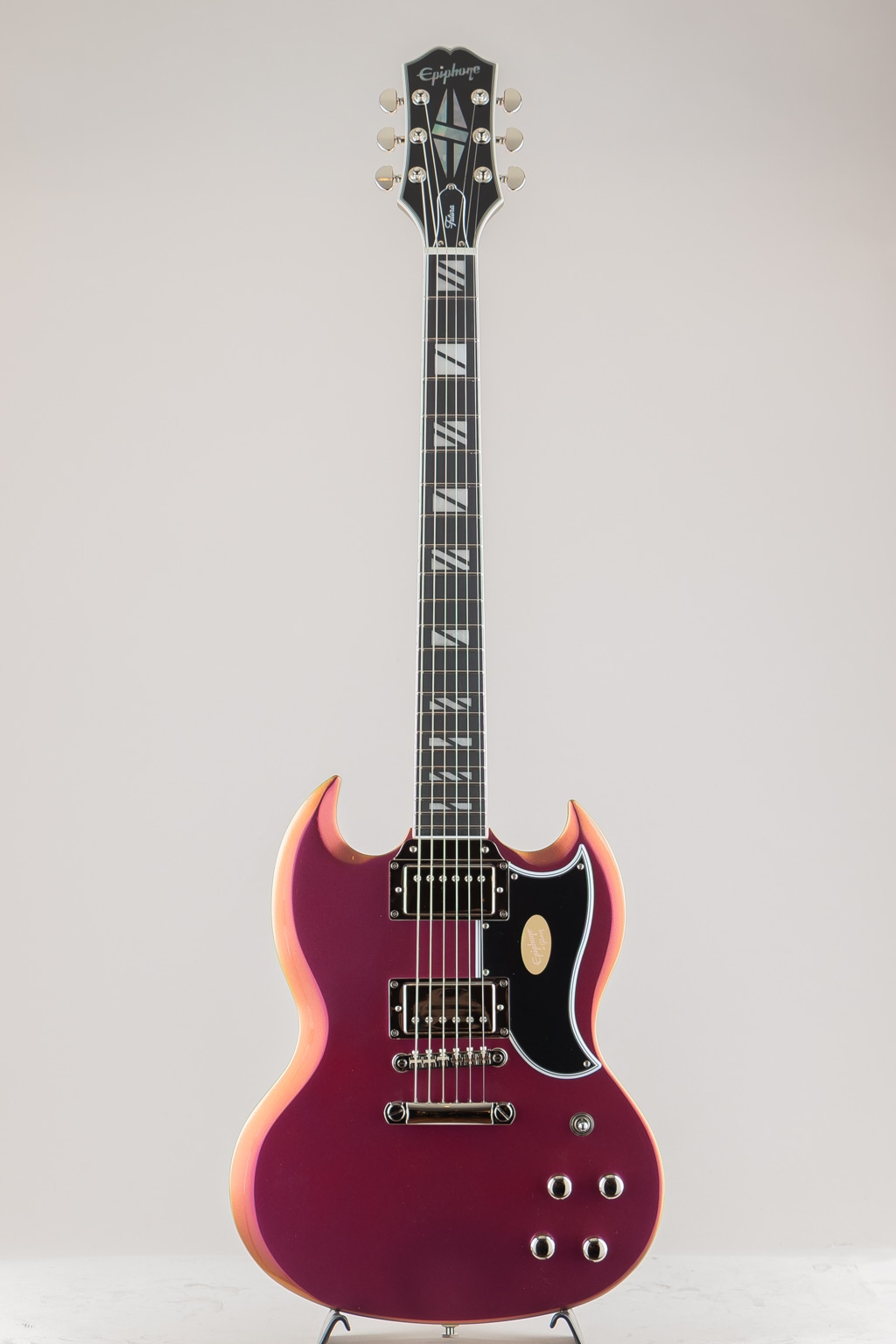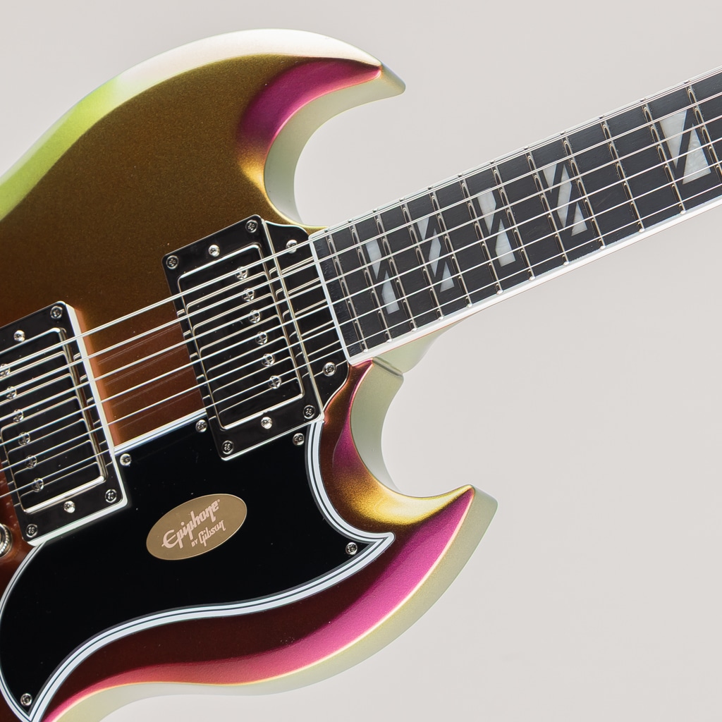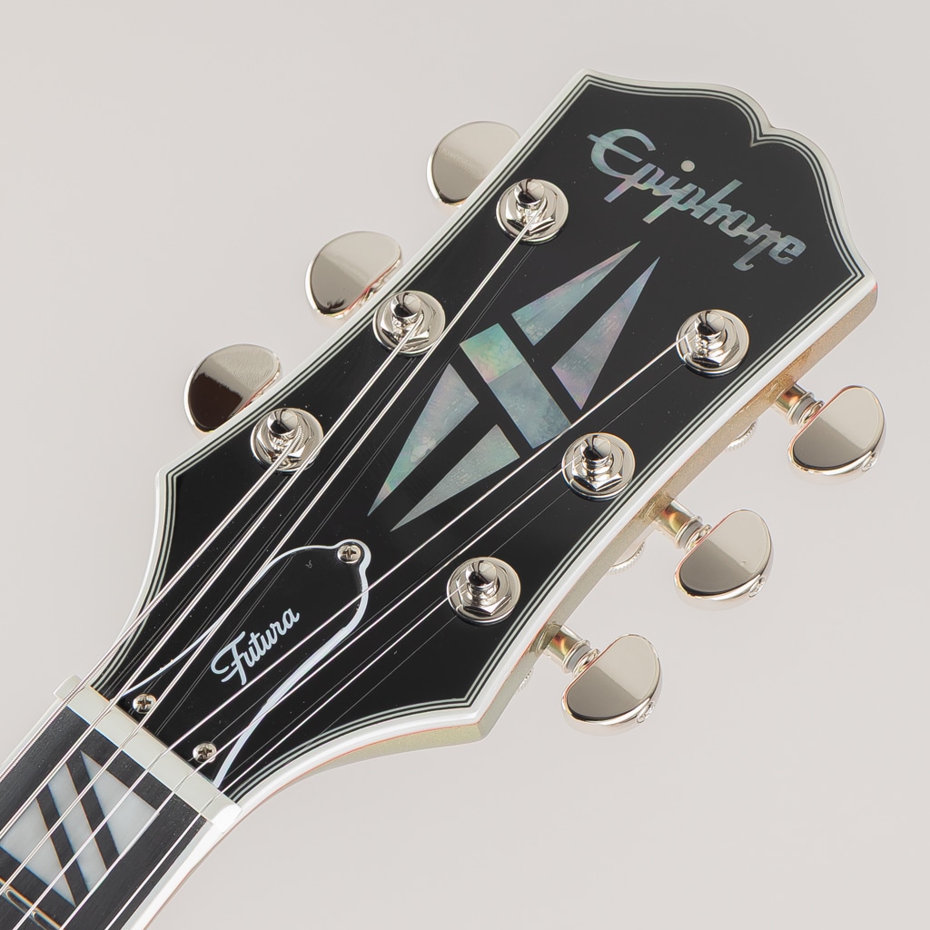 エピフォンの新しいFuturaシリーズは、プロフェッショナルなパフォーマンスと未来的な機能を求める現代のギタリストのために設計されています。これらの「Inspired by Gibson」モデルは、現代におけるライブ、レコーディング、コンテンツ制作に最適なトーンとスタイルを提供します。大胆なカラーシフト・フィニッシュ、完全新設計のピックアップ、そしてコイルタップやフェイズ・スイッチといった汎用性の高い電子回路を備え、現代のプレイヤーが音と視覚の両面で個性を放ち、表現をするために必要なルックスとサウンドを兼ね備えています。さらに、ステンレス・スチール・フレット、コンパウンド・ラジアス指板、快適なネック・プロファイルなどのハイパフォーマンスな仕様により、Futuraシリーズは革新的であり、あらゆるギター・コレクションに加えるべき一本となっています。