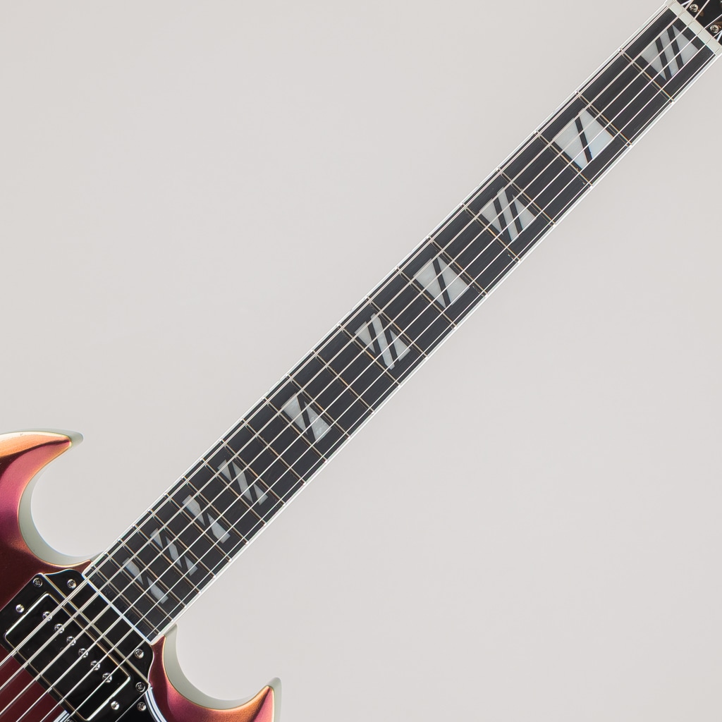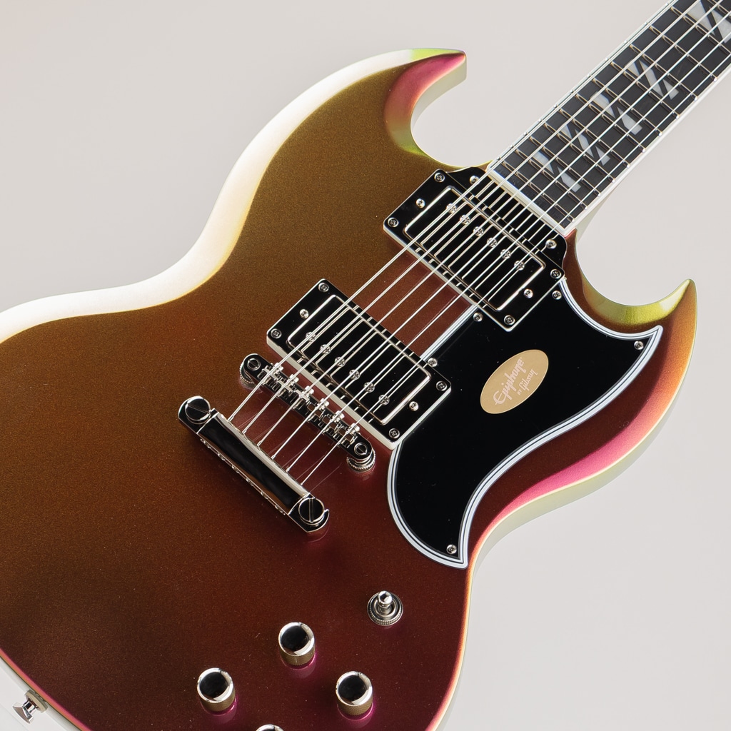 Futura SG Customのエレクトロニクスには、エピフォンの新しいProBucker Igniteハムバッカーを搭載し、明瞭さと解像度を保ちながらパワフルなトーンを放ちます。プッシュ/プル・コントロールにより、コイルタップとフェイズの切り替えが可能で、音の汎用性をさらに広げます。ステージやカメラの前で目を引く3種類の見事なクロマシフト・フィニッシュ(ドラゴンフライ・シフト、ニトロ・シフト、ミッドナイト・エンバー・シフト)をラインナップ。モダンな美学、幅広いトーンバリエーション、あるいは創造性を刺激する楽器を求めるプレイヤーに、Futura SG Customは応えます。プレミアム・ギグバッグが付属します。