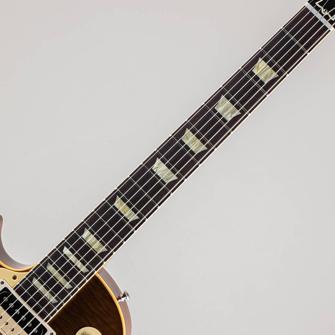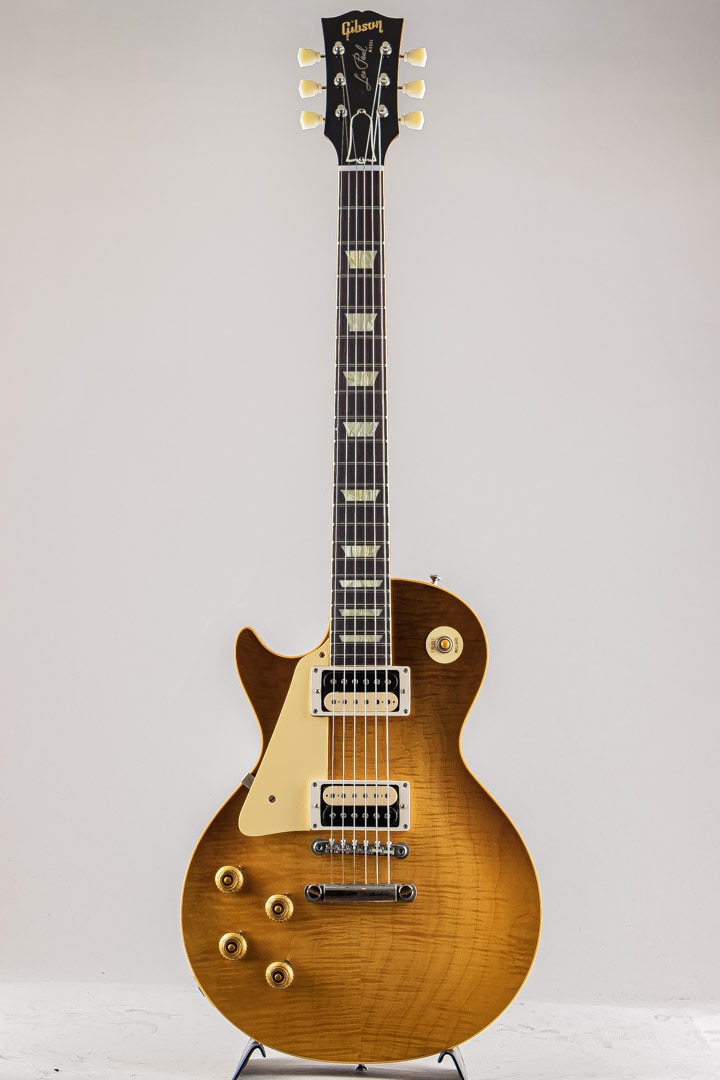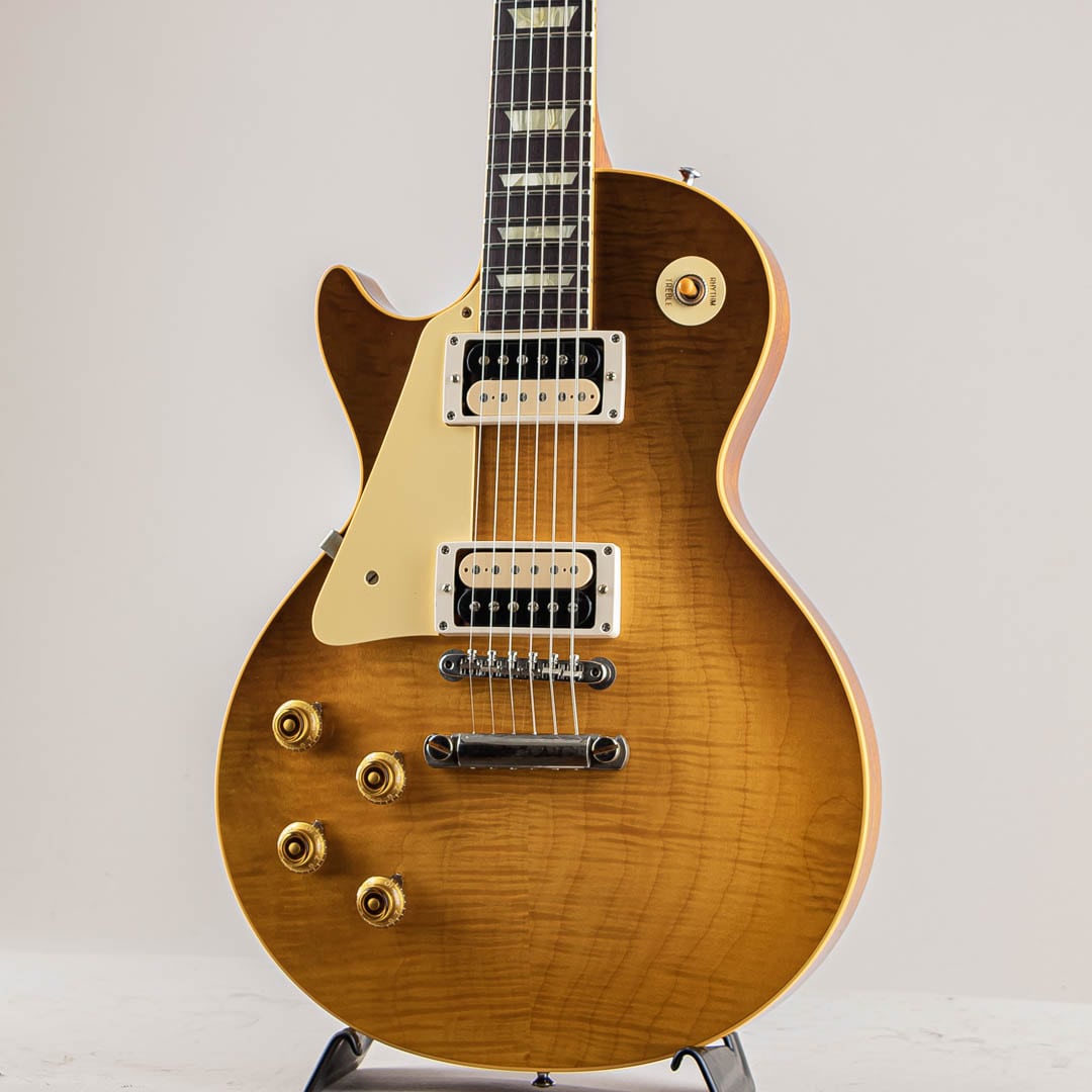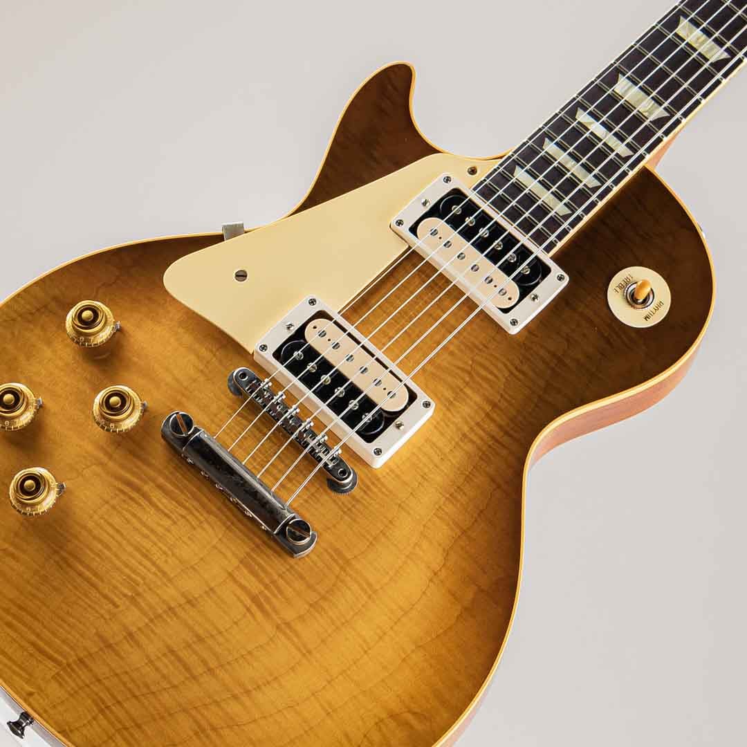 ウッドマテリアルは、ハンドセレクト・フィギュアドメイプル / ソリッド・マホガニーバック / ソリッド・マホガニーネック / ローズウッド指板にて構成。太く力強さを感じさせるフレイムは一眼見た瞬間から息をのむ迫力。さらには、見る角度や光の当て方を変えることで深く立体感のある奥行きを感じさせます。カラーにはグリーンレモン・フェイドを採用し、杢目と織りなすコントラストは非常に美しい佇まい。本機の重量は3.8kgとなり、やや軽量なのも嬉しいポイント。ネックシェイプは人気の59 ミディアムCシェイプを採用しております。その他、近年リファインされたより当時に近いヘッドトップの“Gibson”&“Les Paul”ロゴ、指板のディッシュインレイ素材の色味、サーキット内のポットやバンブルビーコンデンサーもビンテージライクな仕様が採用。オールニカワ接着やトゥルーヒストリックパーツ採用等の基本仕様も、勿論採用されております。