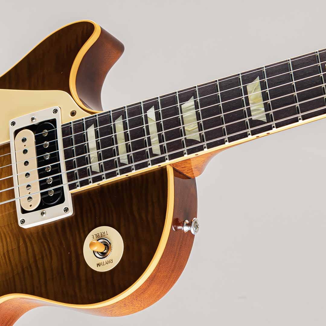 ピックアップには、Custombuckerを2機搭載。ゼブラボビン仕様のオープンスタイルとなります。タッチに対するレスポンスは鋭く、太くウォームでありながらも煌びやか、それでいて何処か荒々しさがあり枯れたニュアンスを感じさせるサウンドクオリティ。クリスピーなクリーンサウンド、往年のロックフレーズを彷彿とさせるドライブサウンドまで、幅広くお楽しみ頂けるグッドサウンドでございます。