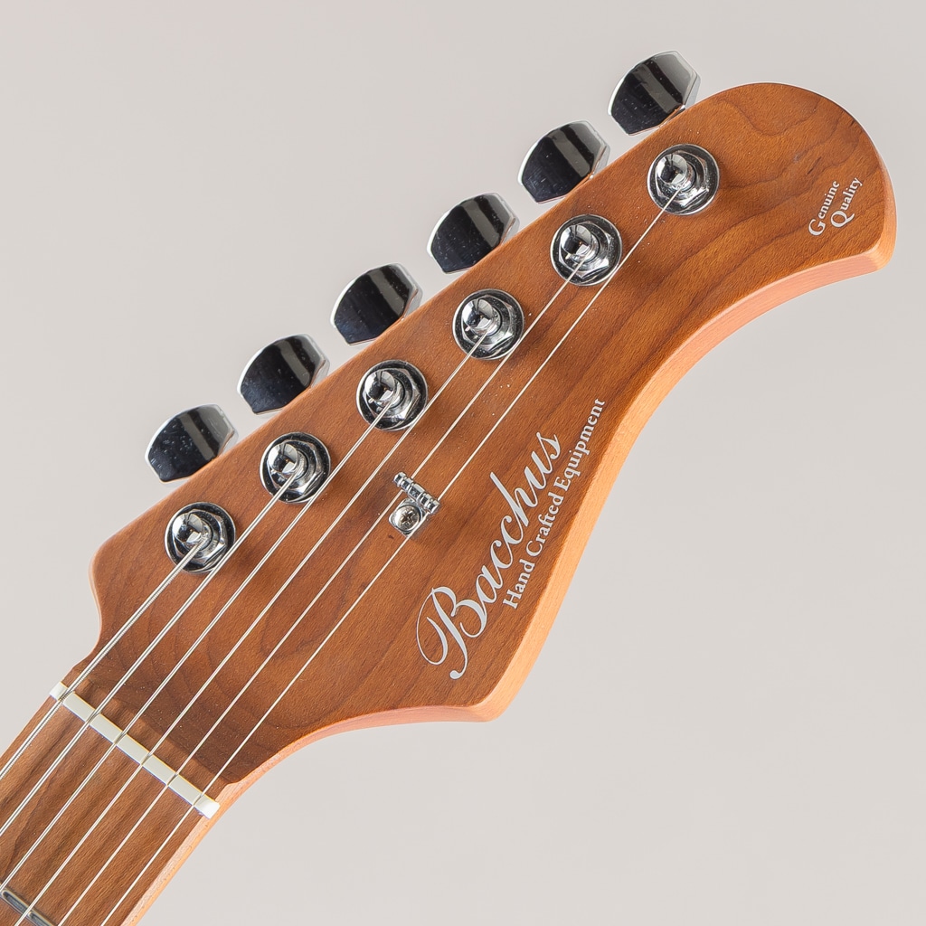 ネックにはBacchusの新機軸でもあるローステッドメイプルを採用。ローストする工程上でゆがみが生じてしまうような木材はその時点で淘汰されるため、ネックとして搭載されている個体は非常にゆがみやねじれに強く、比較的手に取りやすい価格帯ながら長い間ご愛用できる仕様となっております。更にフレットはステンレス製を使用しており摩耗に強くアタックレスポンスにも優れております。