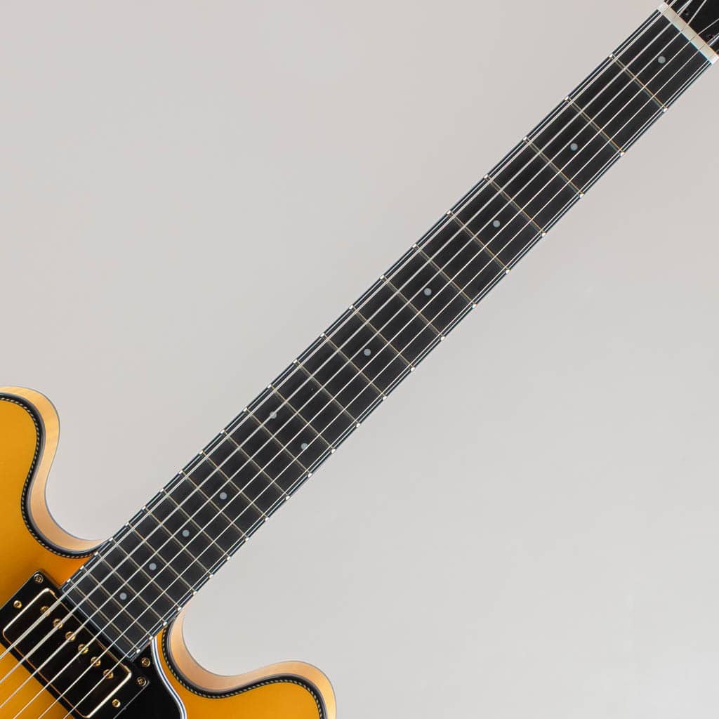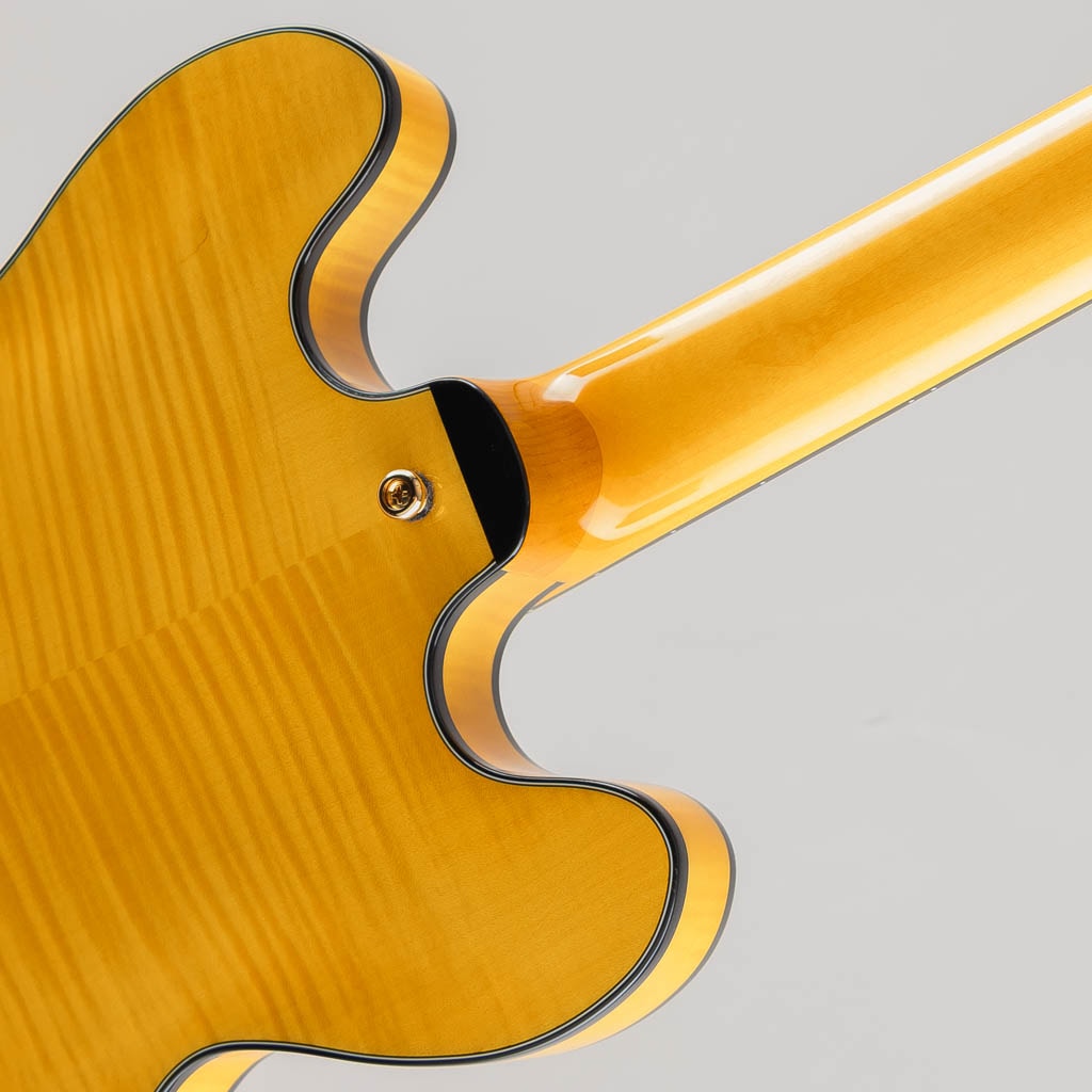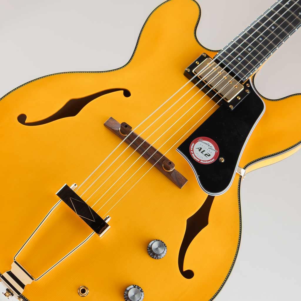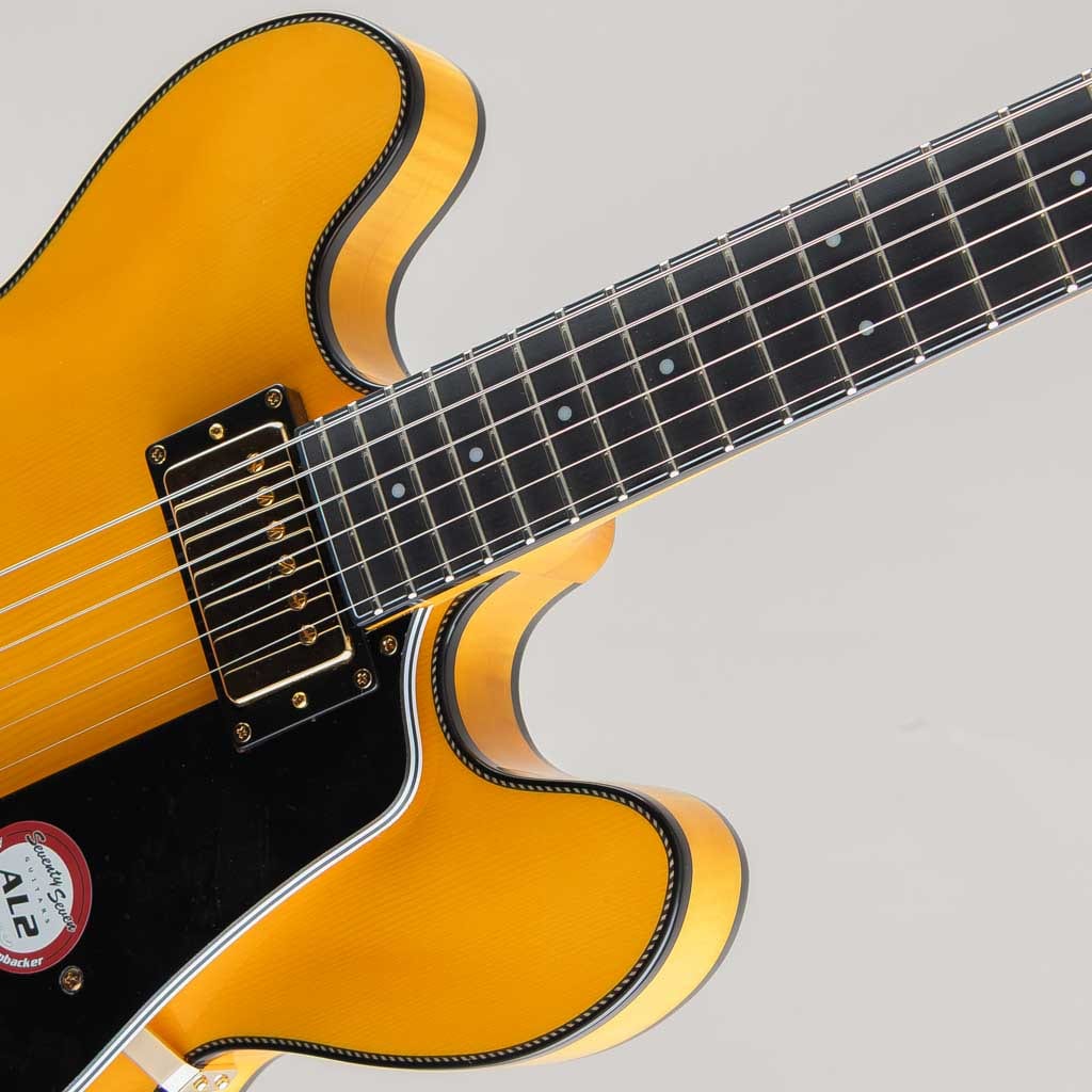 アコースティックギターの材料としてよく知られる、スプルースをボディトップに採用。フルホロウボディとの組み合わせで、薄同タイプでありながら豊かな生鳴りを実現しています。またセンターブロックを廃したことにより、本体重量も非常に軽量に。ボディのサイド&バックには杢目の鮮やかなフレイムメイプルを使用しております。