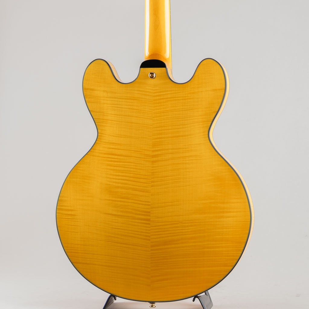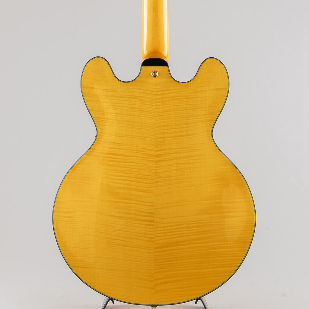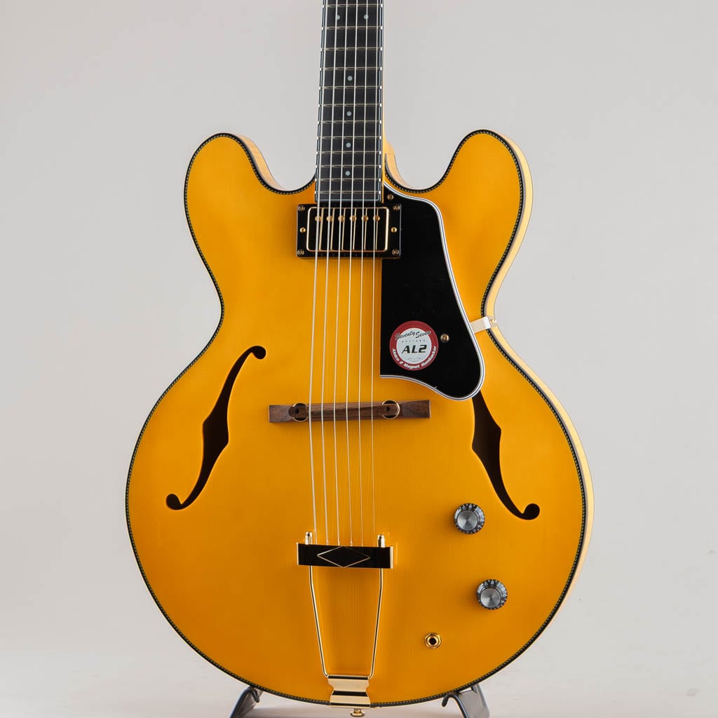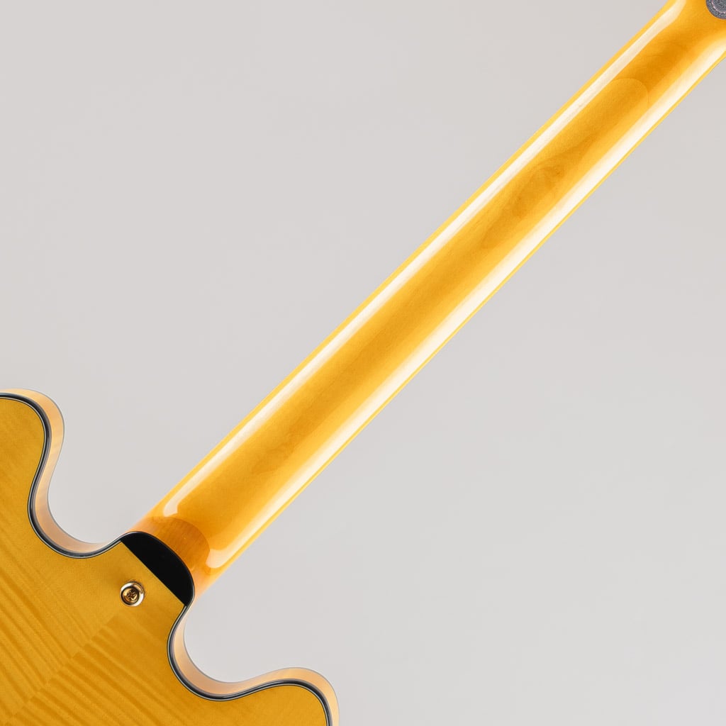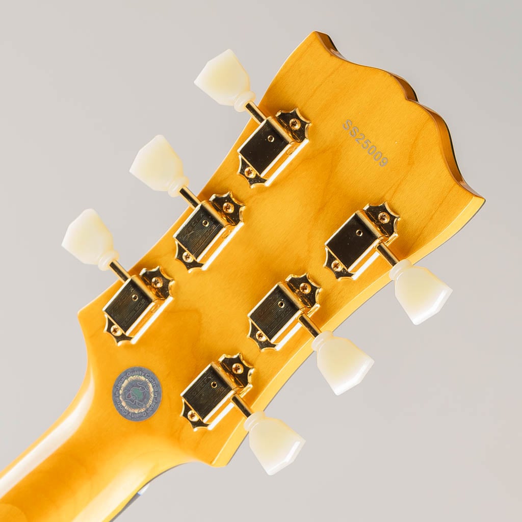 アコースティックギターの材料としてよく知られる、スプルースをボディトップに採用。フルホロウボディとの組み合わせで、薄同タイプでありながら豊かな生鳴りを実現しています。またセンターブロックを廃したことにより、本体重量も非常に軽量に。ボディのサイド&バックには杢目の鮮やかなフレイムメイプルを使用しております。