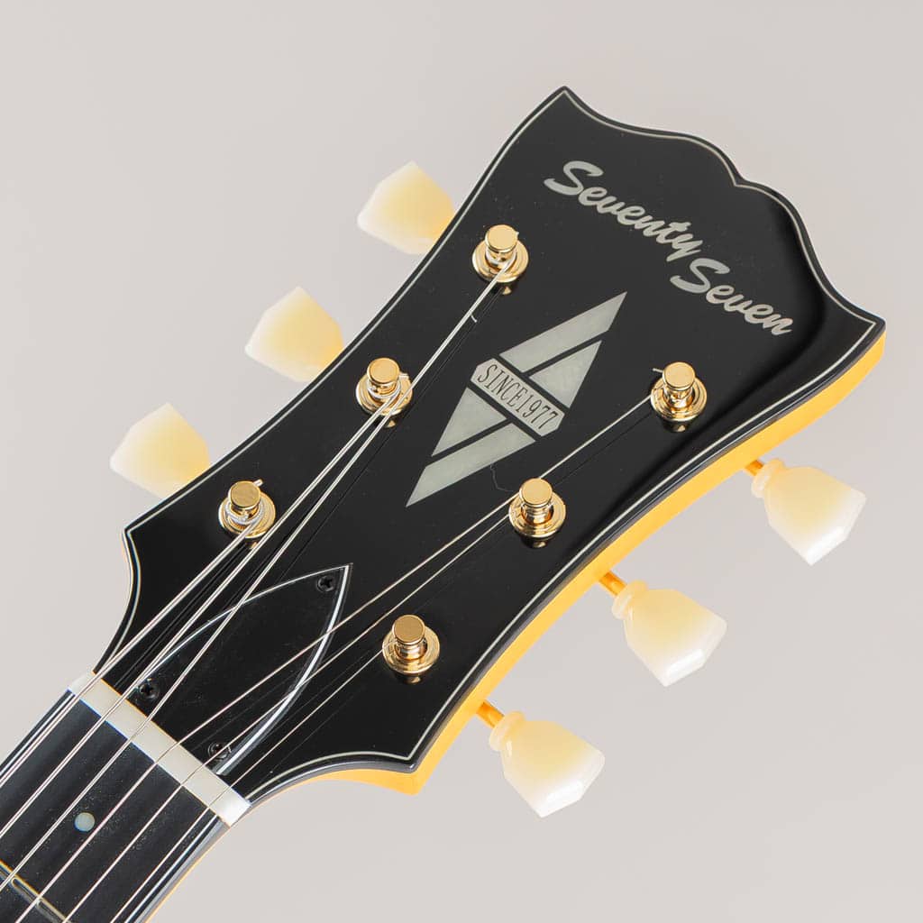 ボディにはアコースティックギターを思わせるヘリンボーンのパーフリングを装飾。ヘッドにはSeventy Sevenのトレードマークである”77″を模ったインレイが施されています。
