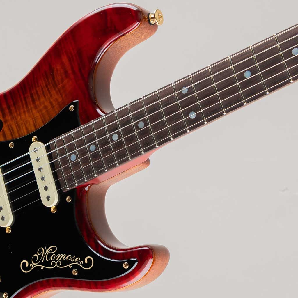 ピックアップにはmomoseオリジナルVS-1とBEANOを搭載したSSHレイアウト。様々な音楽ジャンルに対応する歯切れの良さとPAFを彷彿とさせる枯れたヴィンテージトーンを出力します。飛鳥工場秘蔵の貴重な木材を余すことなく使用した極上の1本。この機会に是非ご検討くださいませ。