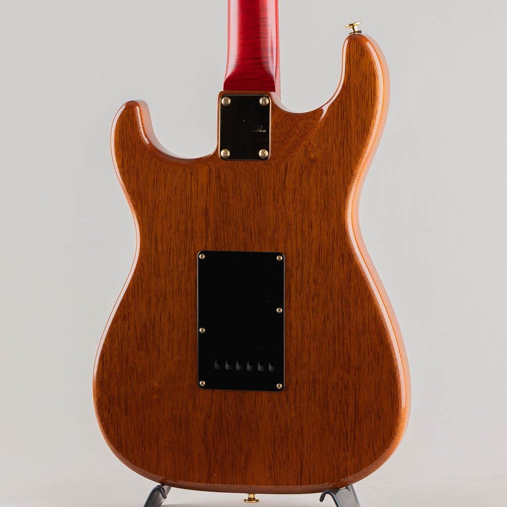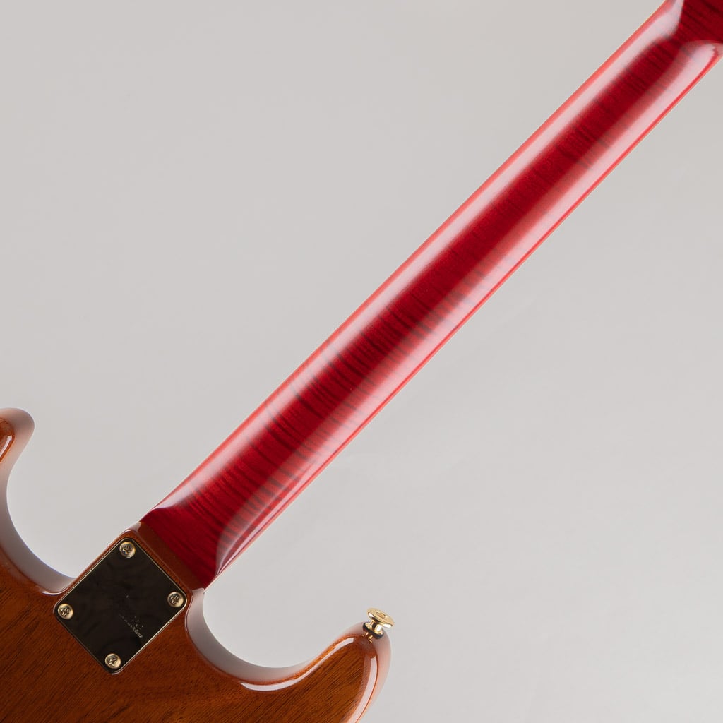 今回入荷しました1本は華やかな杢目のフレイムトチをボディトップ、バックにはワンピースマホガニーを使用した限定モデルの入荷です。ネックには鮮やかなフレイムメイプル、指板にはハカランダを採用したセミホロウ構造のストラトキャスター。軽量かつ心地良い箱鳴り感、外観サウンド面ともに特別なモデルに仕上がっております。