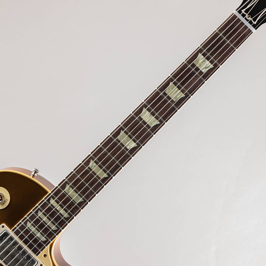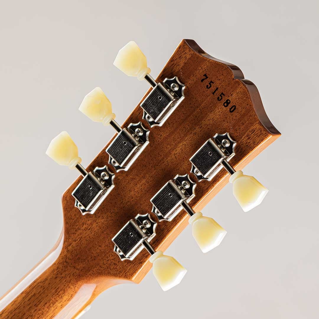 ウッドマテリアルは、メイプルトップ / マホガニーバック / マホガニーネック / ローズウッド指板にて構成。ネックシェイプは厚みを感じさせるAuthentic '50s Rounded Medium C。オールニカワ接着、ABR-1 ブリッジ、コントロールノブ等のトゥルーヒストリックパーツも勿論採用されております。トップのアーチとダブルゴールドカラーとのコントラストは非常に美しく、気品を併せ持った豪華さが演出された抜群のルックス。また、VOSフィニッシュ故のくすみ感が加わることにより、渋い一面を併せ持っているのも特徴的でございます。
